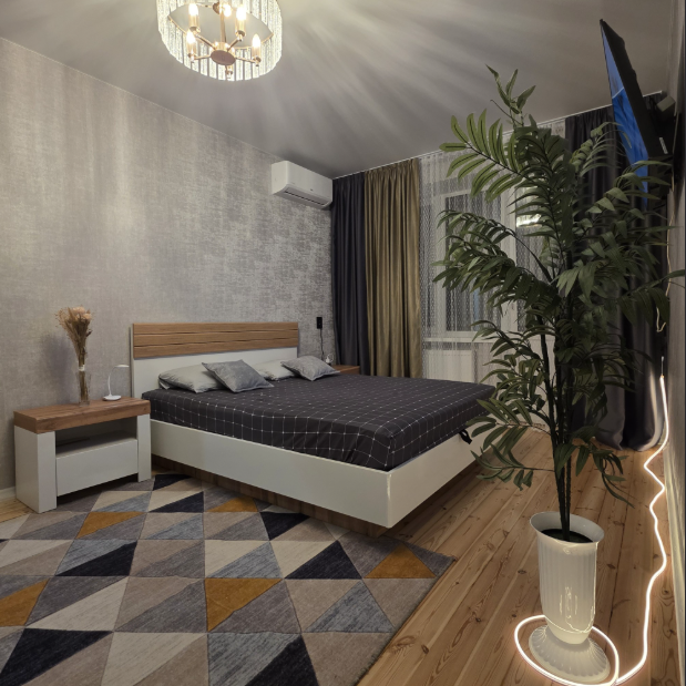 В квартире есть всё необходимое для комфортного проживания: кондиционер,Wi-Fi, стиральная машина,утюг, чайник,умная станция Алиса,умный свет, телевизор со смарт TV,посуда, столовые приборы.