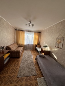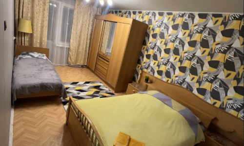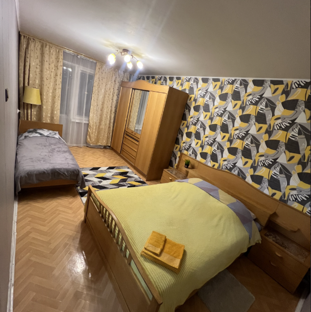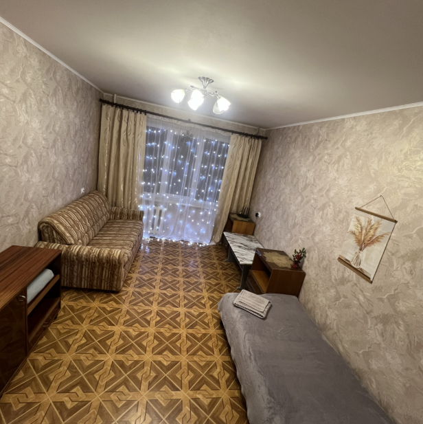 Можно снимать как комнату, для уедененного досуга, так и всю квартиру. В квартире имеются две двухспальные кровати, и одна односпальная + диван. На кухне есть все необходимое, чайник, микроволновая печь, плита, духовка, холодильник, столовые прибора, чашки, тарелки, сковорода и кастрюли.