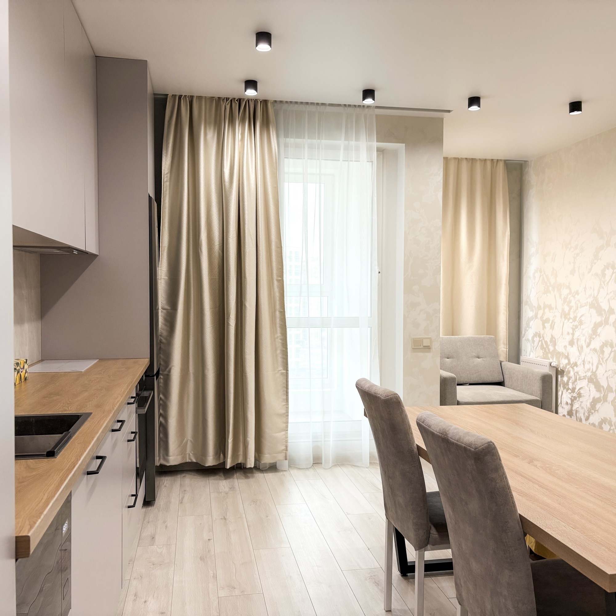 Свежий ремонт, абсолютно новая мебель. Студия рассчитана до троих человек.