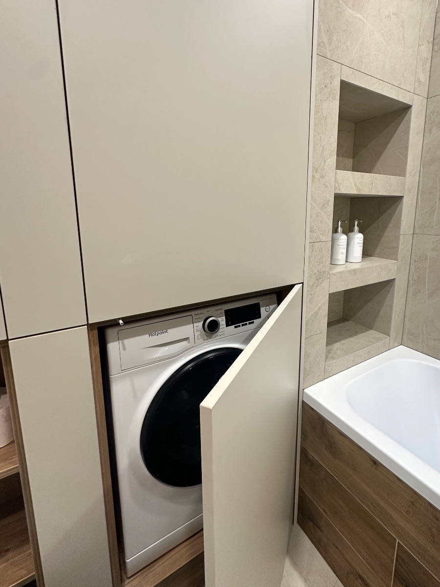 Из техники в вашем распоряжении посудомоечная машина, стиральная машина, чайник с поддержанием температуры, холодильник, свч, духовой шкаф, электроплита, кондиционер, смарт-тв, утюг, фен.