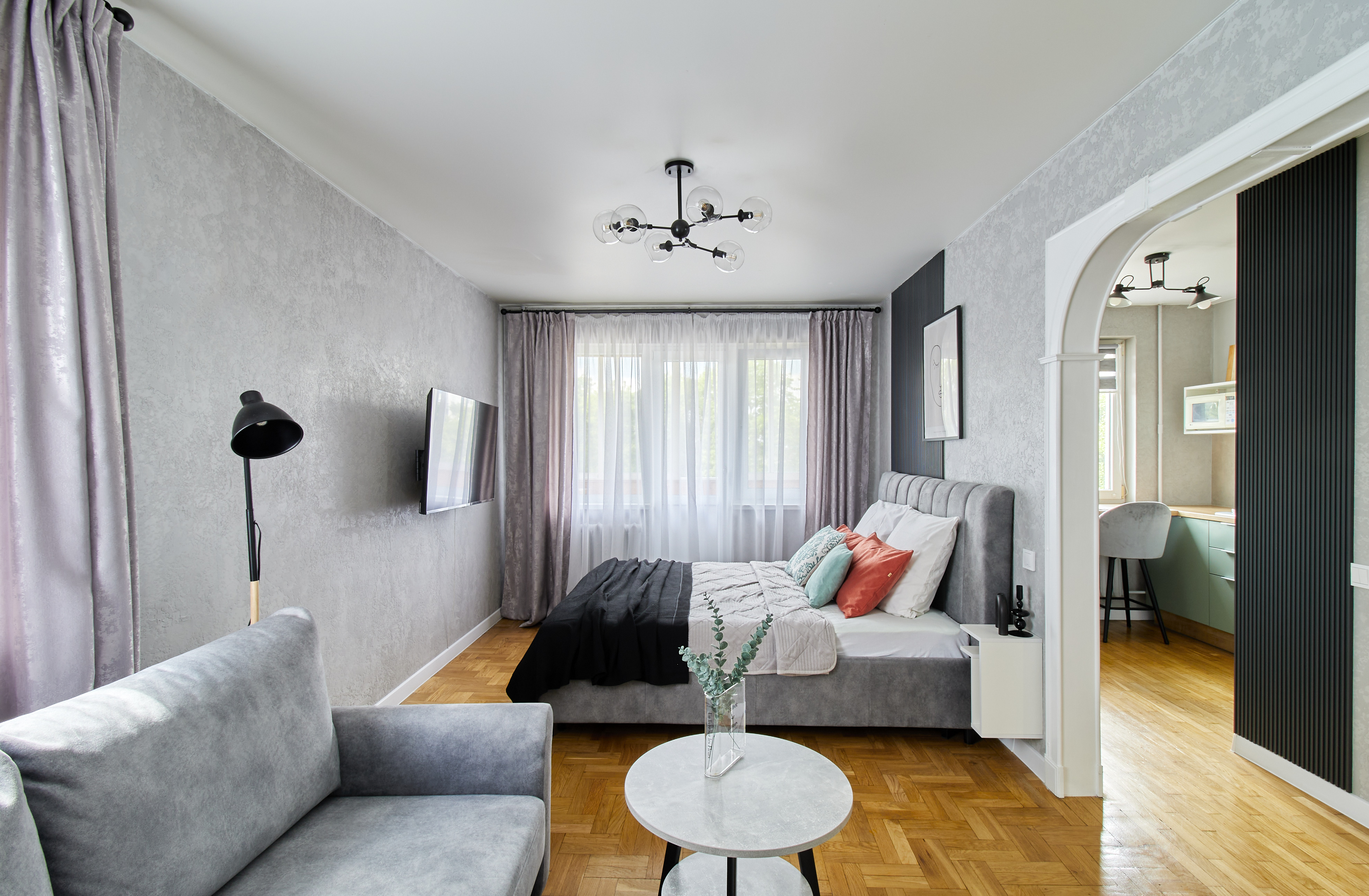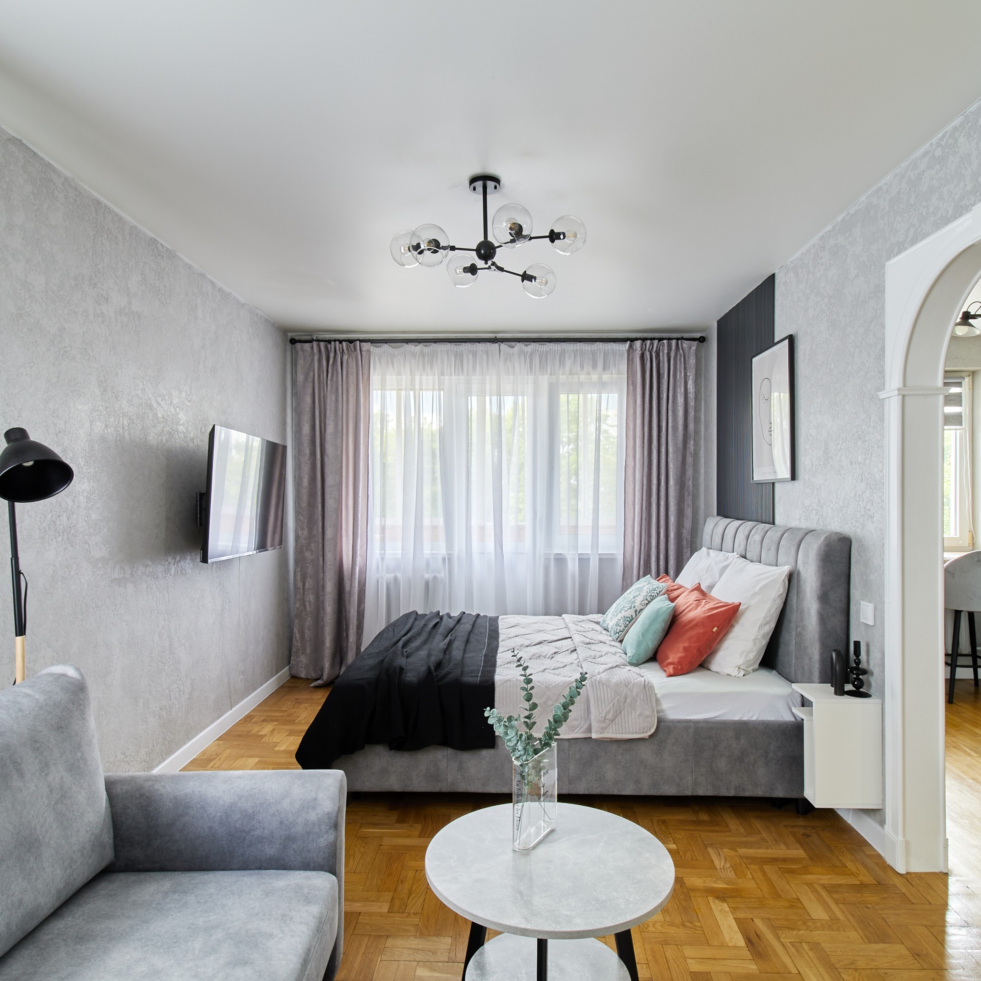 Квартира оборудована всем необходимым для комфортного проживания: высокоскоростной wi-fi для работы и отдыха, комплекты свежего постельного белья и полотенец, полный набор средств личной гигиены (гель для душа, шампунь, зубная паста). Кухня полностью укомплектована современной техникой (холодильник, микроволновая печь, электрочайник) и всей необходимой посудой. Дополнительно имеются утюг с гладильной доской и стиральная машина.