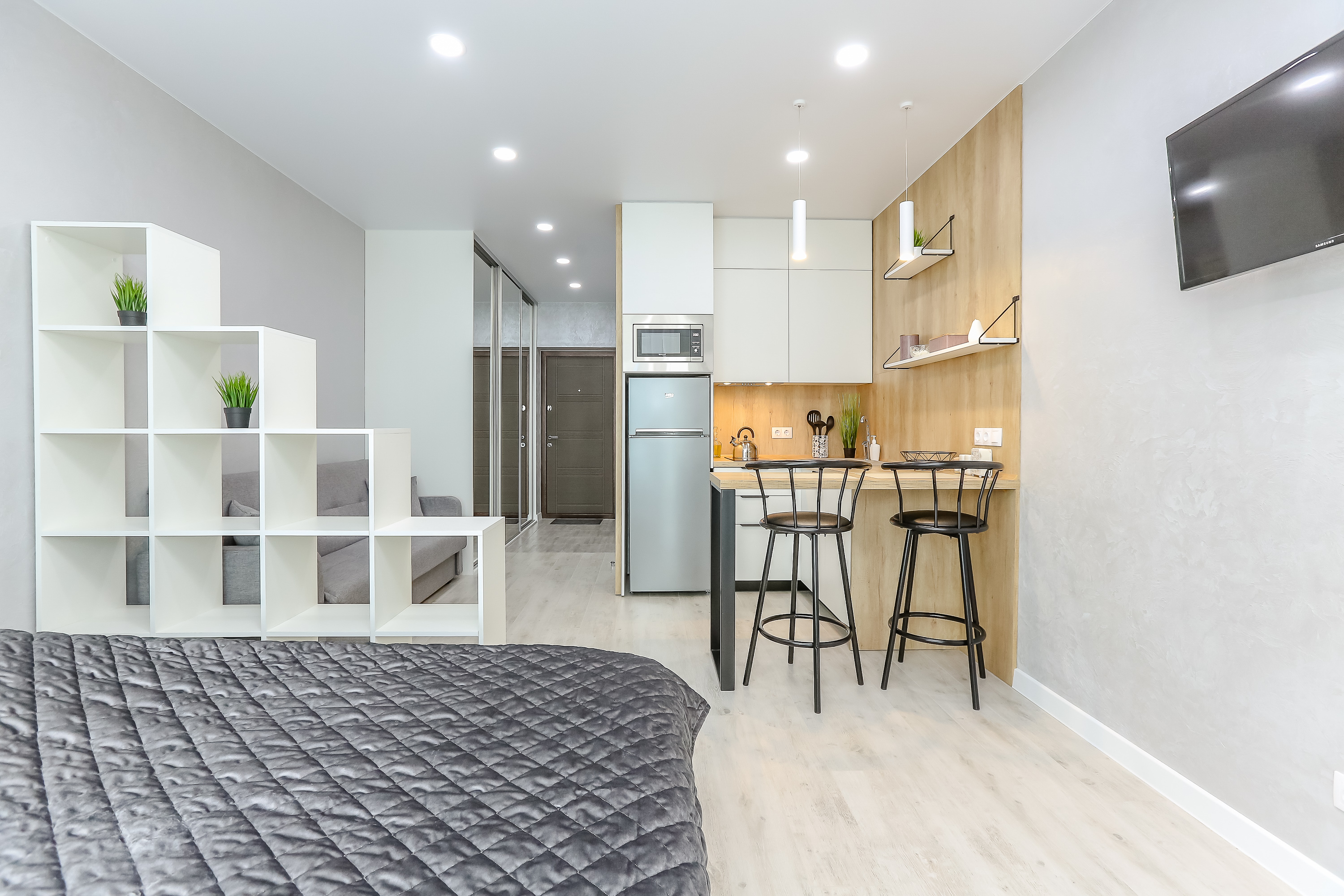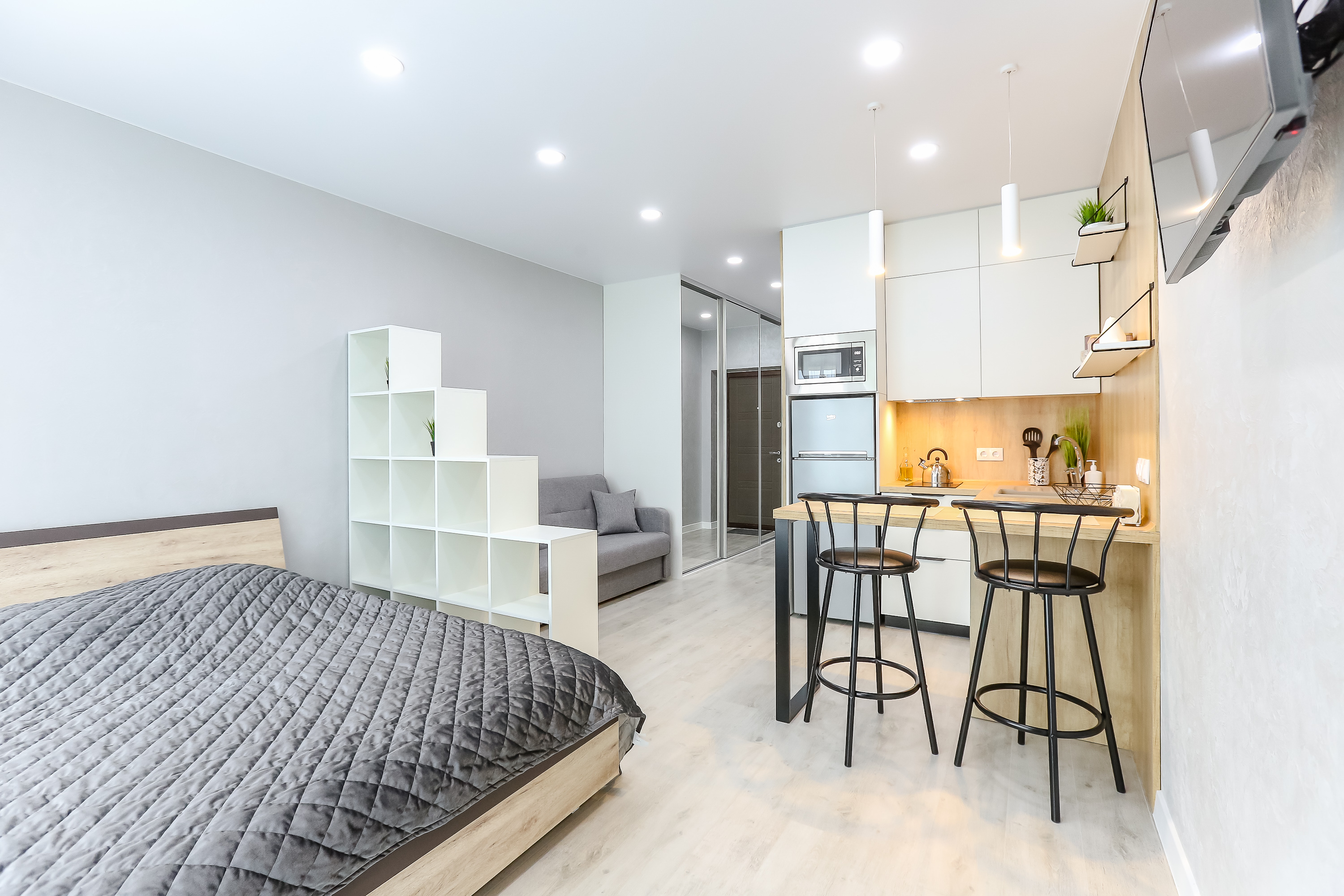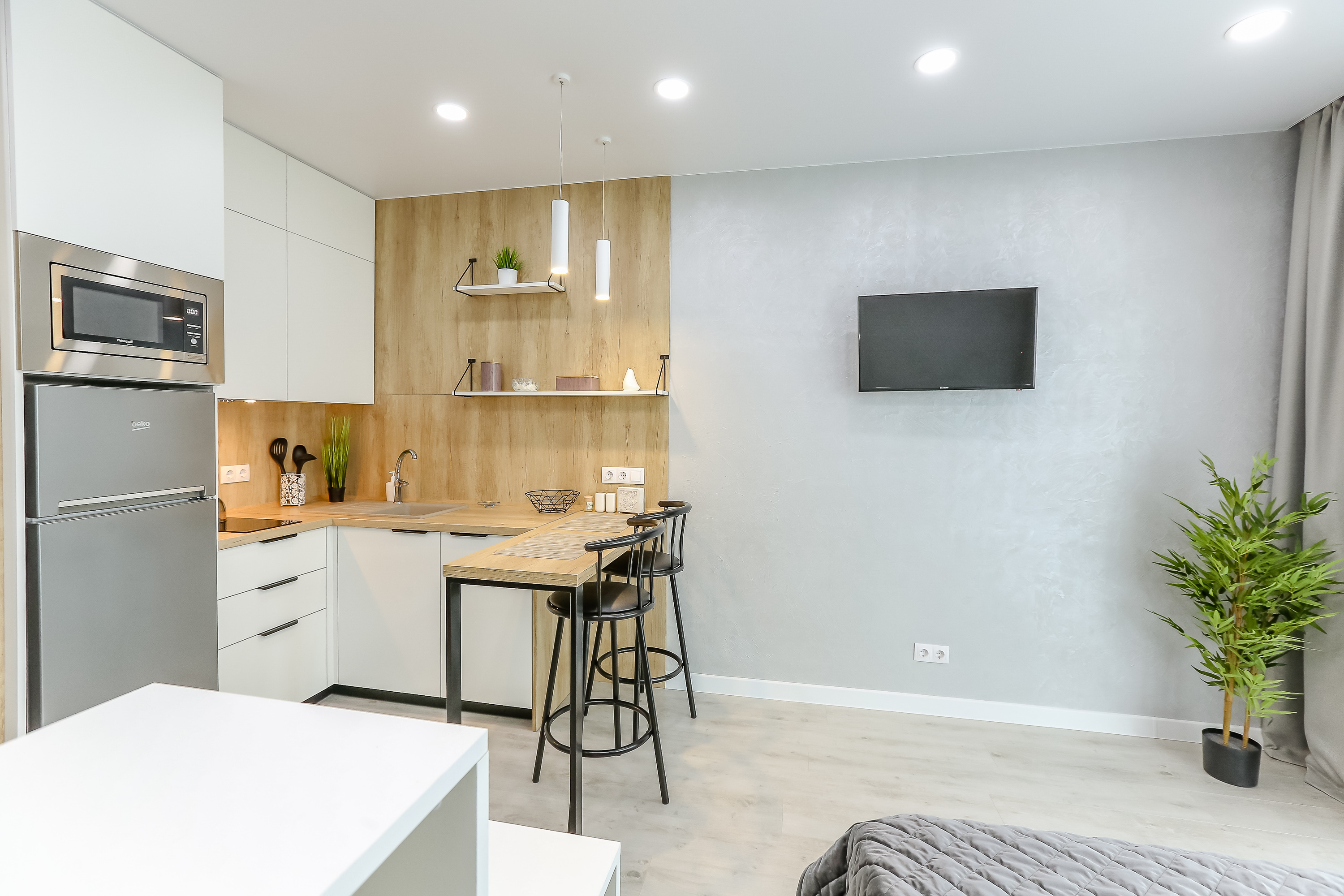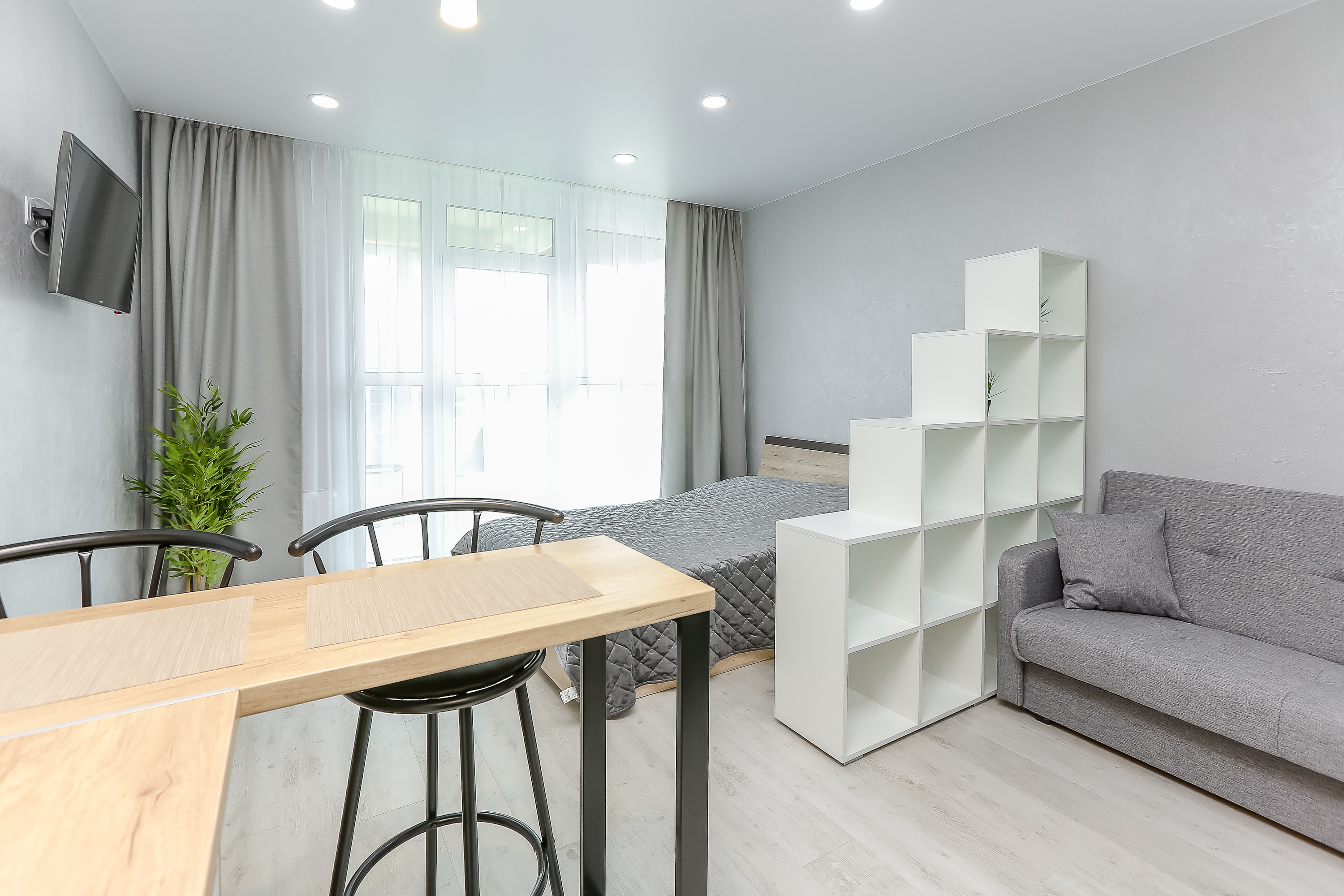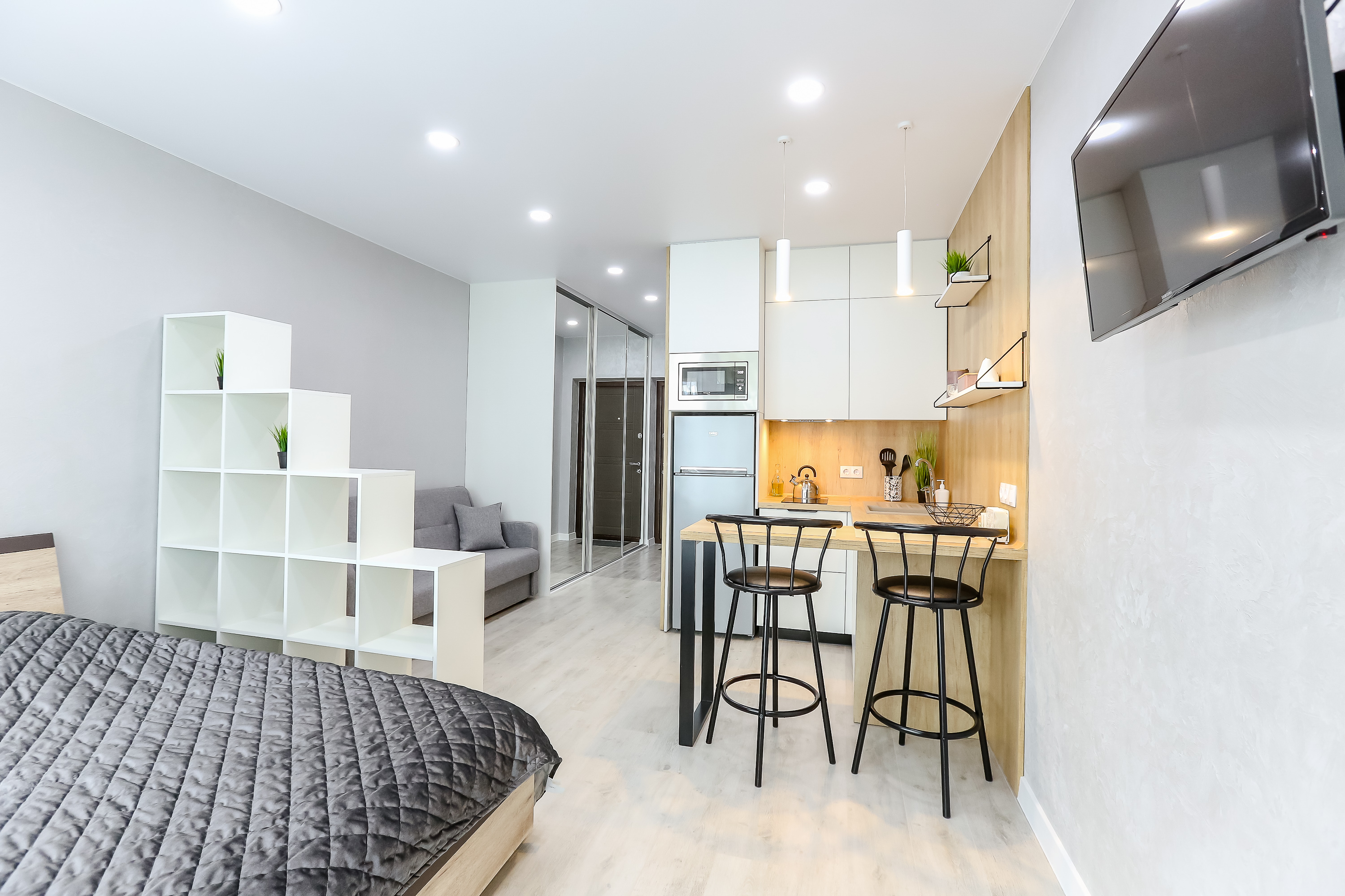 Сдается уютная квартира-студия в современном жилом комплексе Minsk World, расположенная на 21 этаже. Из панорамных окон и просторной лоджии открывается восхитительный вид на город, особенно прекрасный вечером, когда зажигаются огни иллюминации - идеальное место, чтобы насладиться чашкой ароматного кофе или чая. Квартира комфортно вмещает до 4 человек, прекрасно подходя как для пары или семьи, так и для небольшой компании друзей или коллег. Мы тщательно продумали все детали и оснастили квартиру всем необходимым для вашего удобства, чтобы вы могли сосредоточиться на отдыхе или работе.