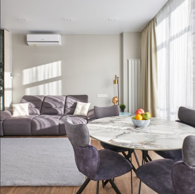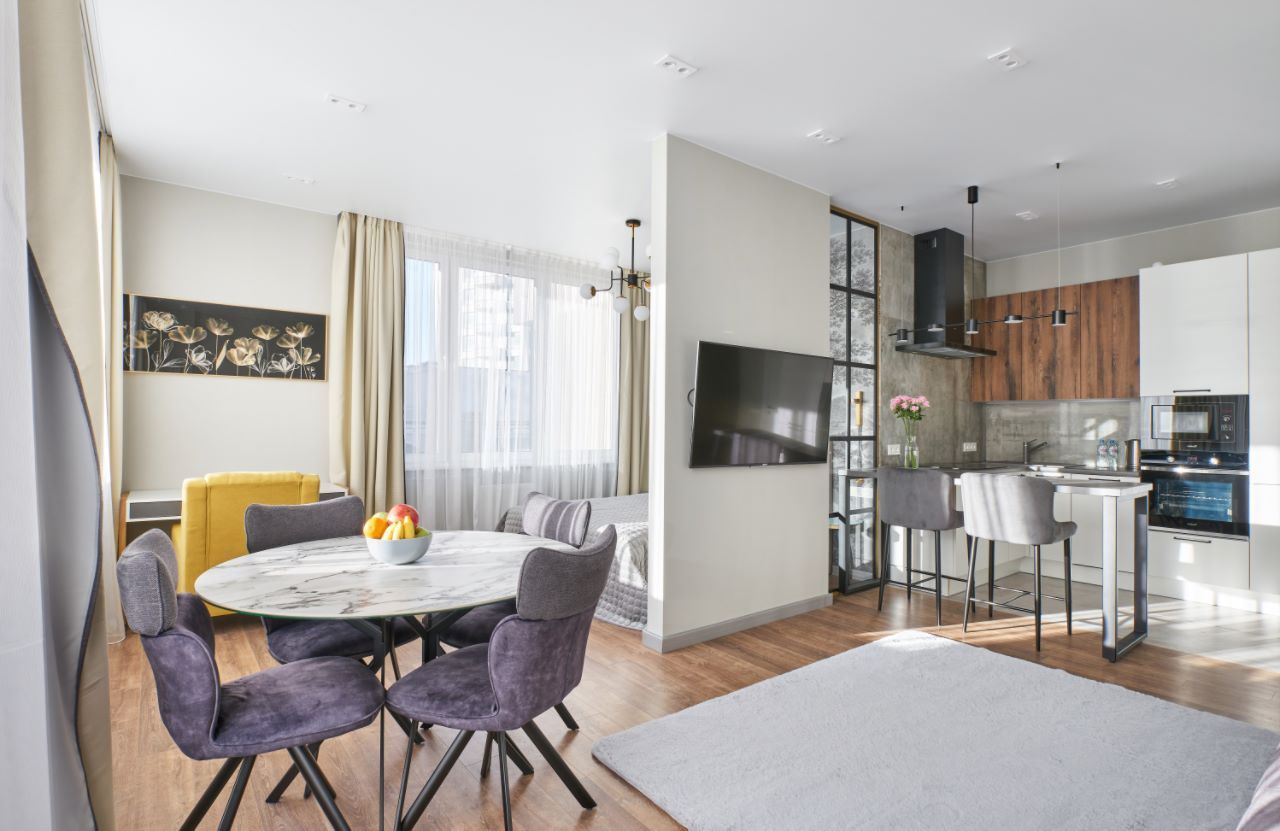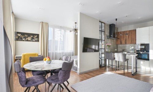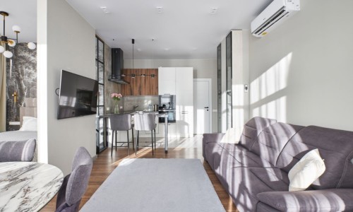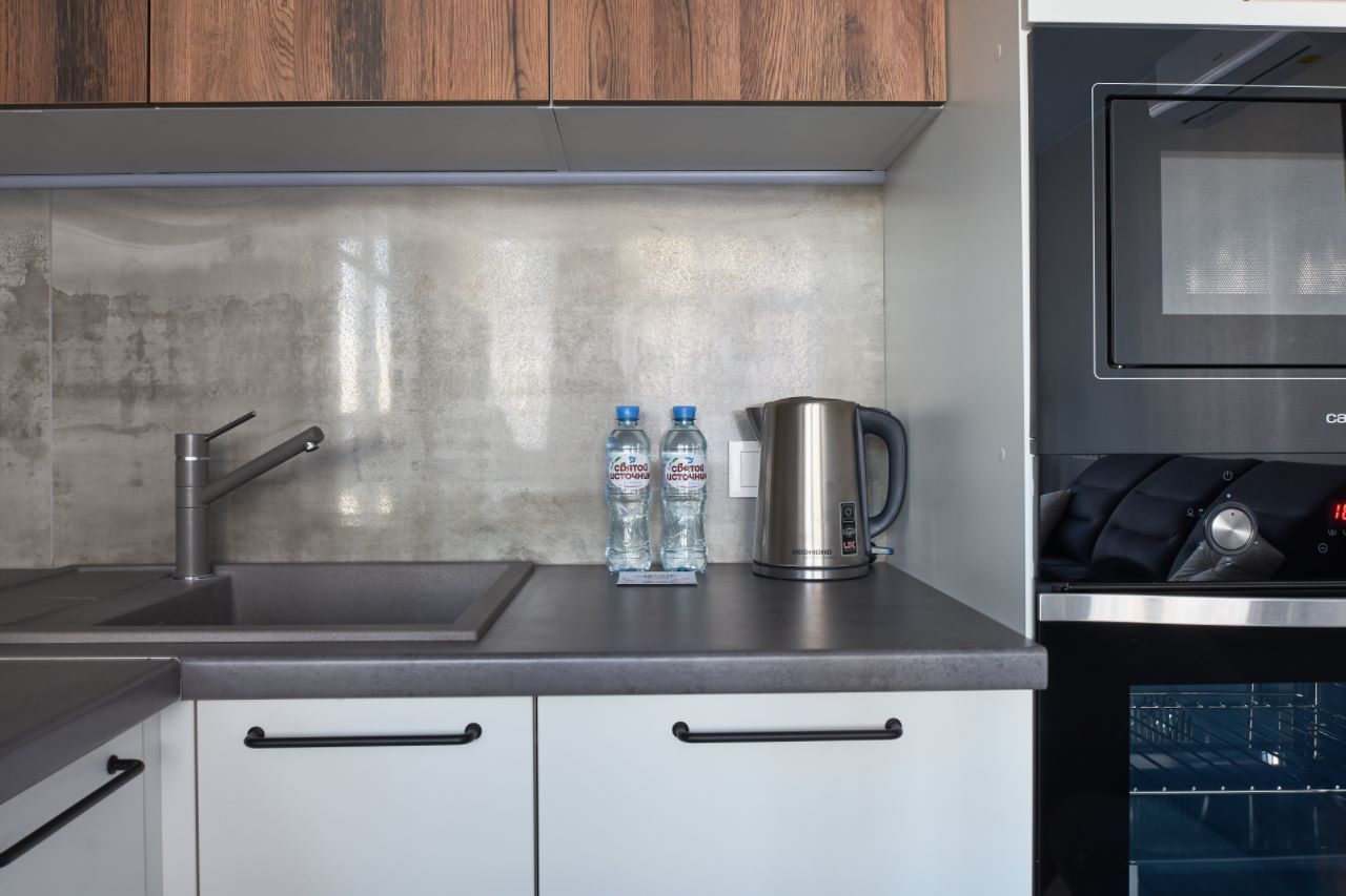 Квартира полностью оборудована для комфортного проживания. В вашем распоряжении будет вся необходимая бытовая техника: кондиционер, стиральная и посудомоечная машины, микроволновая печь, духовой шкаф, электрочайник, утюг и фен. Для вашего удобства предоставляется сейф для хранения ценностей, комплекты постельного белья и полотенец, базовые средства гигиены, а также чай и кофе.