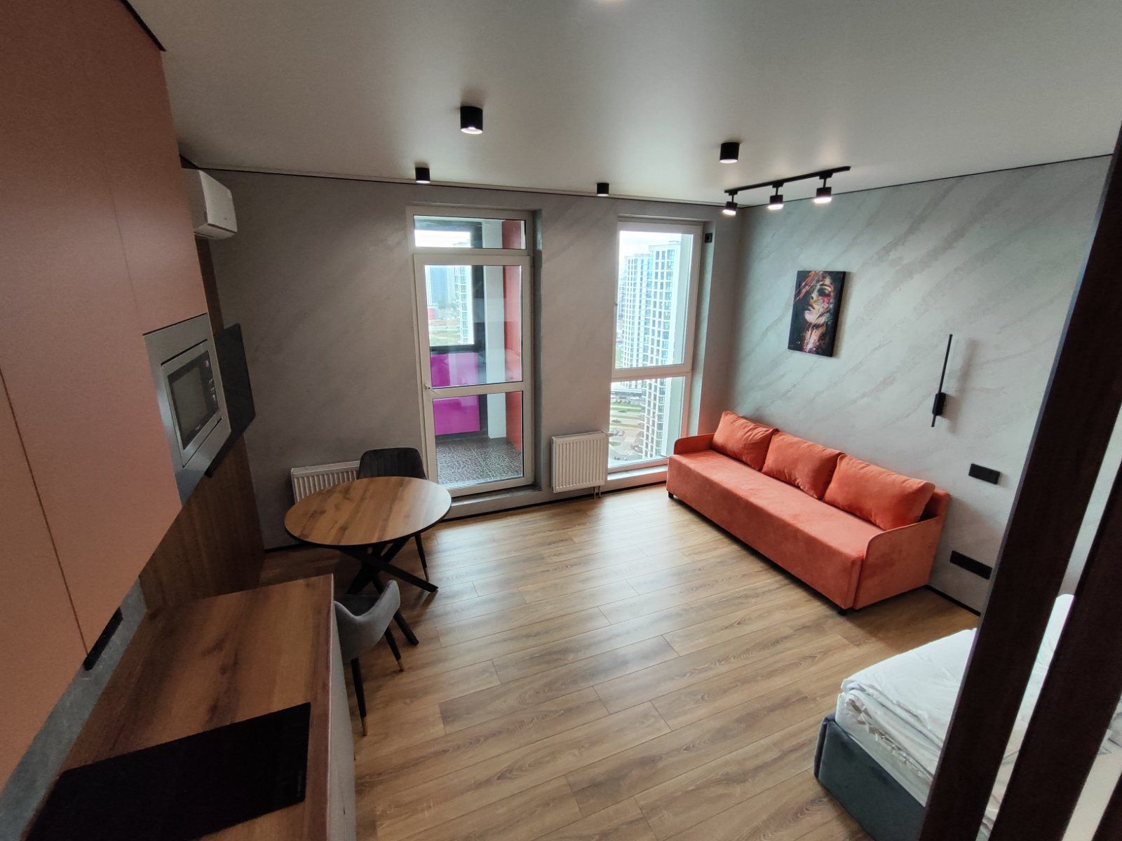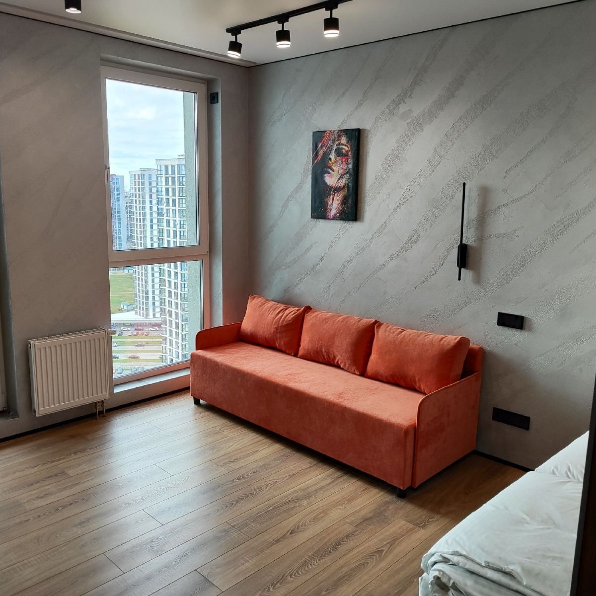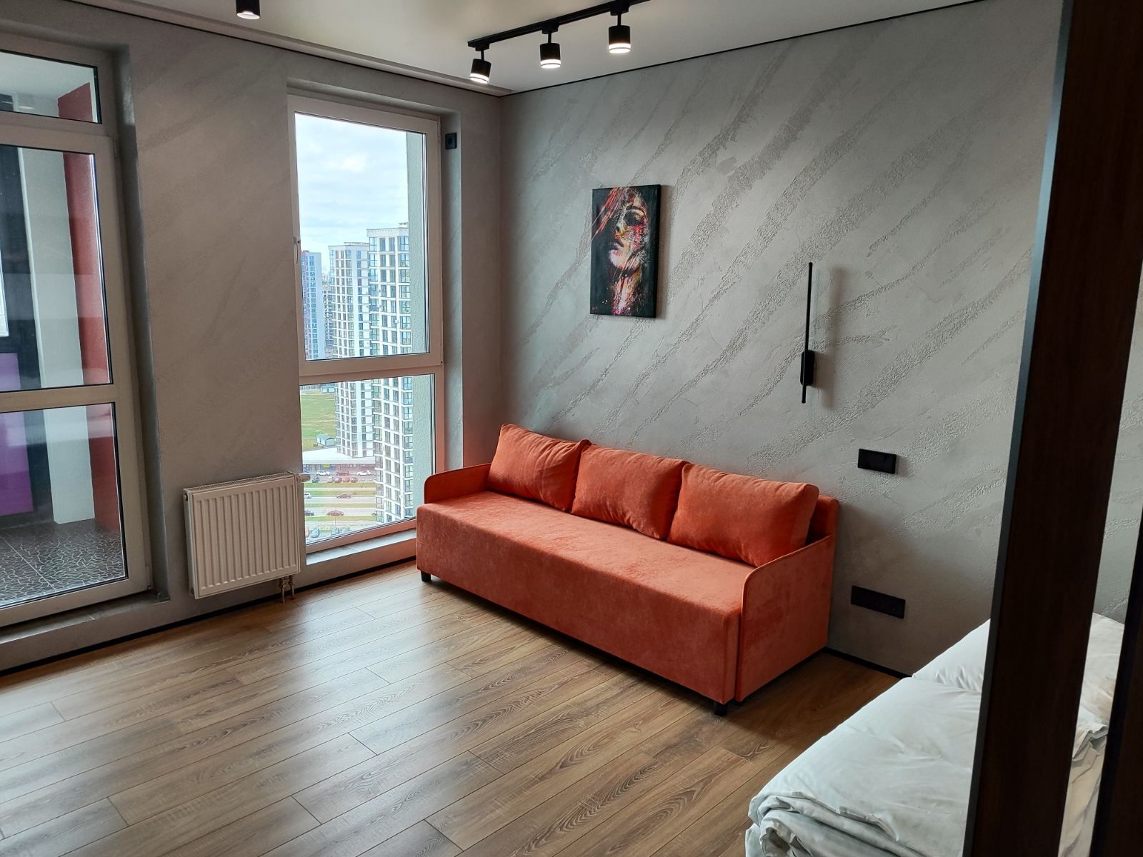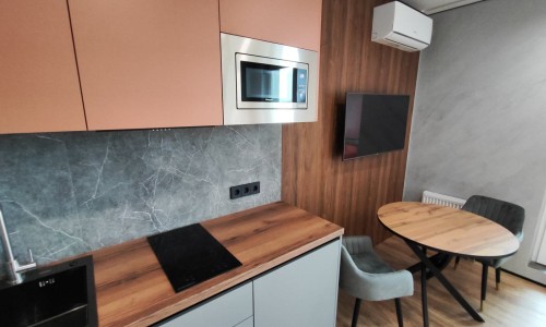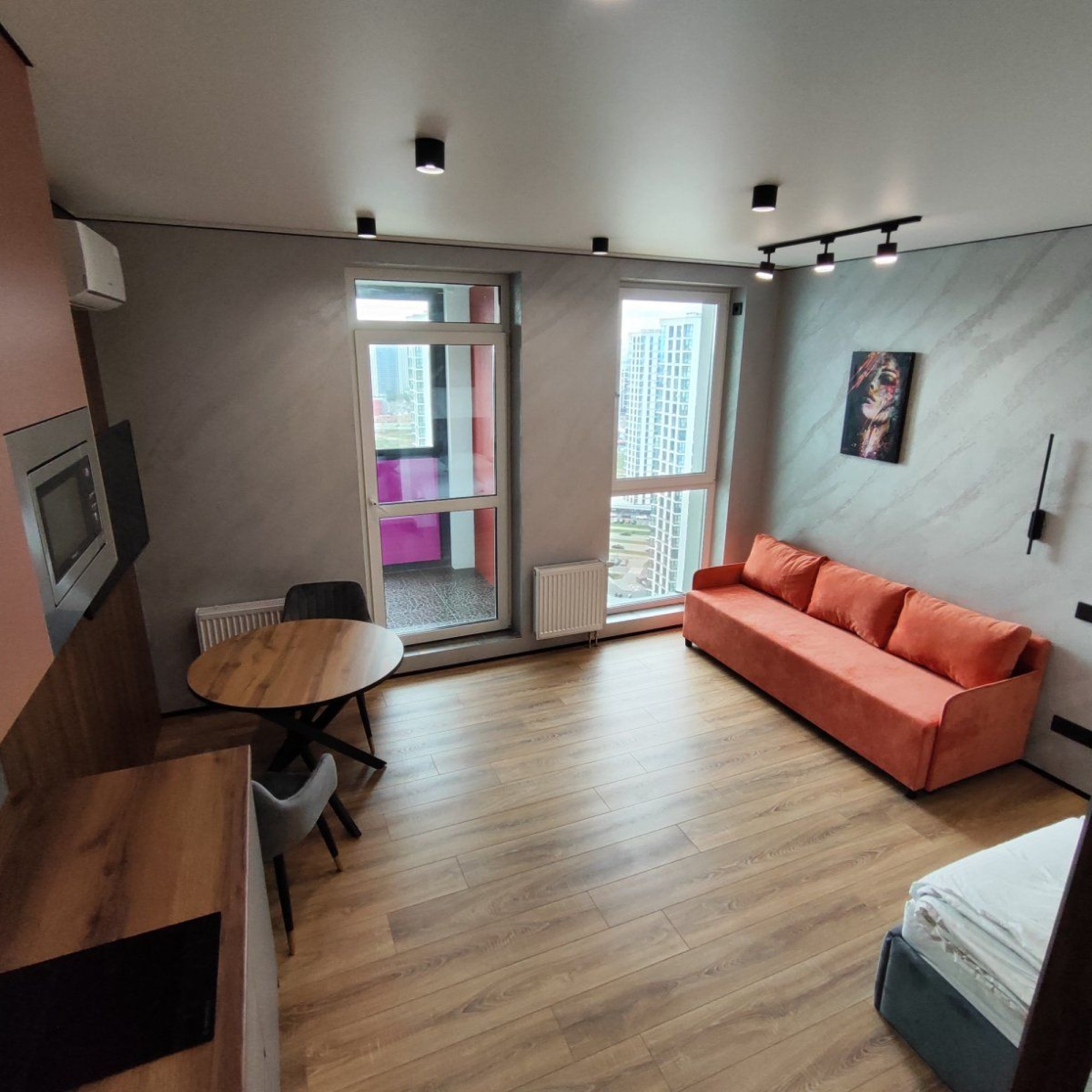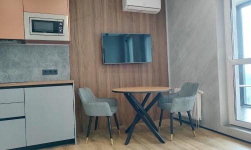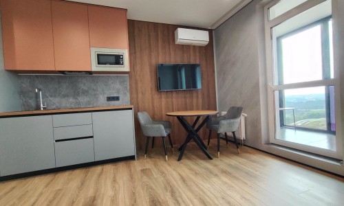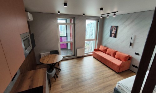 Сдается уютная квартира-студия в современном жилом комплексе Minsk World, расположенная на 23 этаже. Из панорамных окон и просторной лоджии открывается восхитительный вид на город, особенно прекрасный вечером, когда зажигаются огни иллюминации - идеальное место, чтобы насладиться чашкой ароматного кофе или чая. Квартира комфортно вмещает до 4 человек, прекрасно подходя как для пары или семьи, так и для небольшой компании друзей или коллег. Мы тщательно продумали все детали и оснастили квартиру всем необходимым для вашего удобства, чтобы вы могли сосредоточиться на отдыхе или работе.