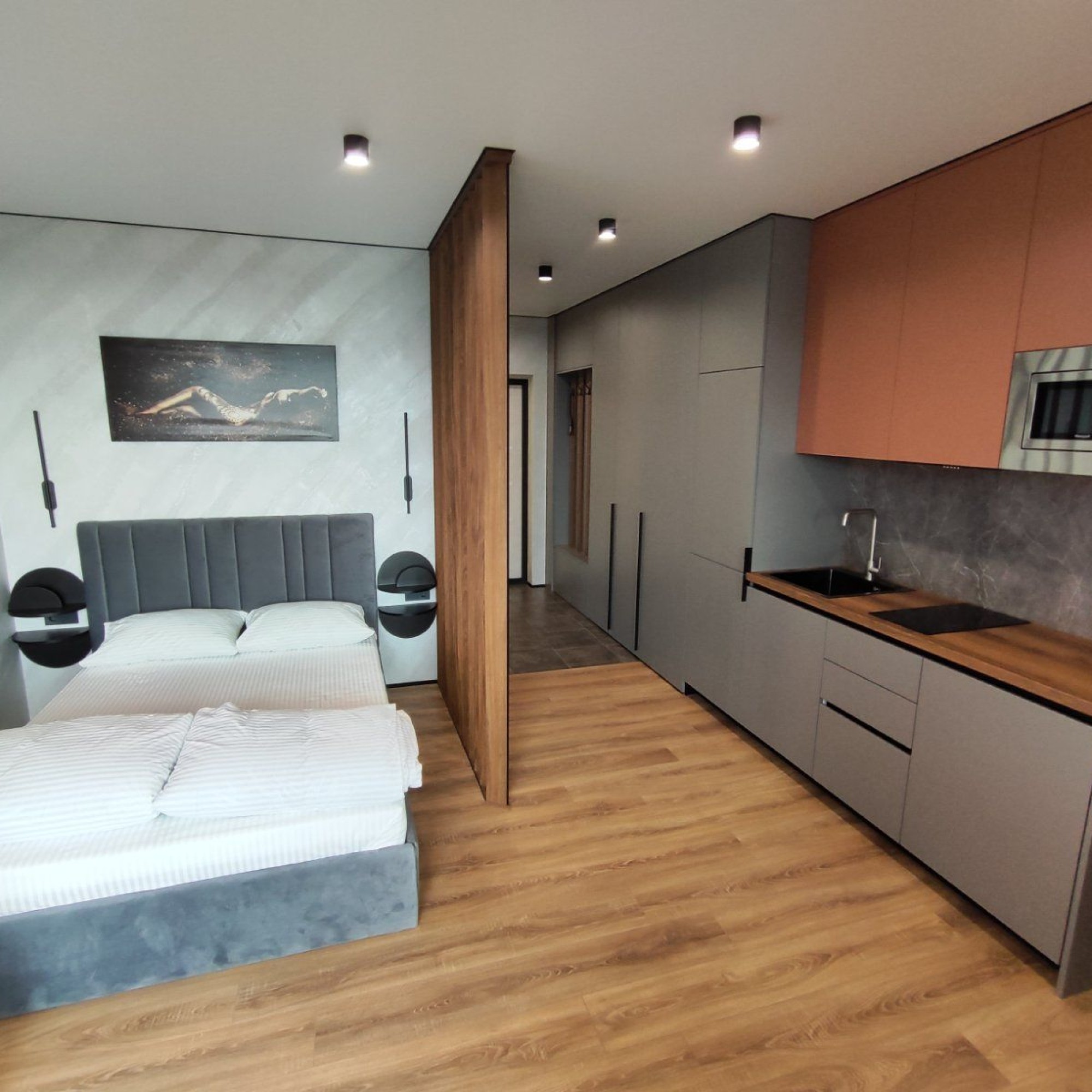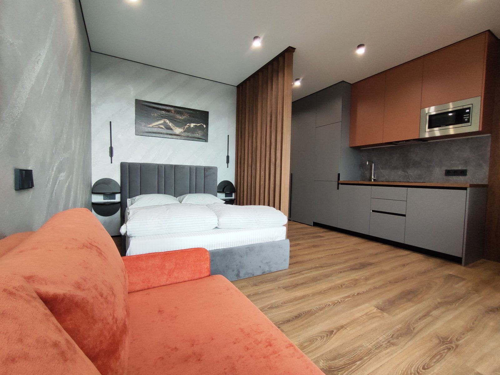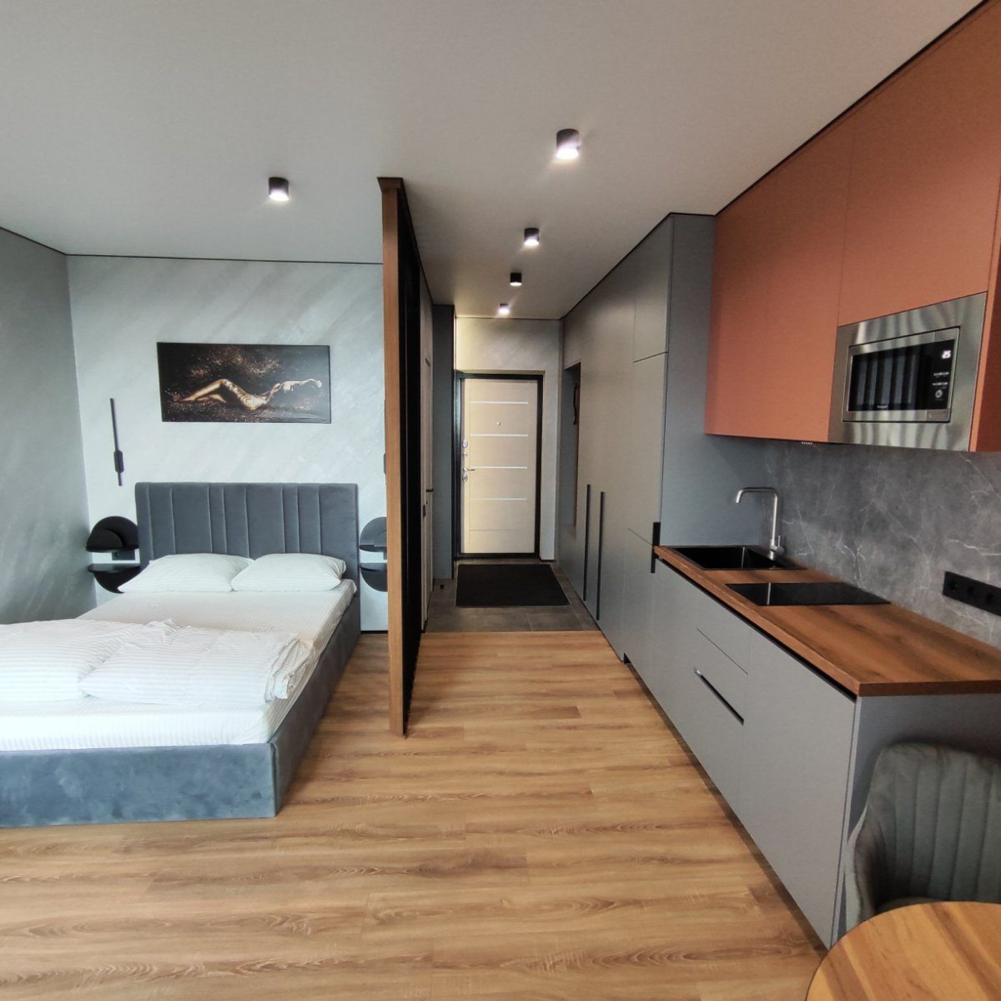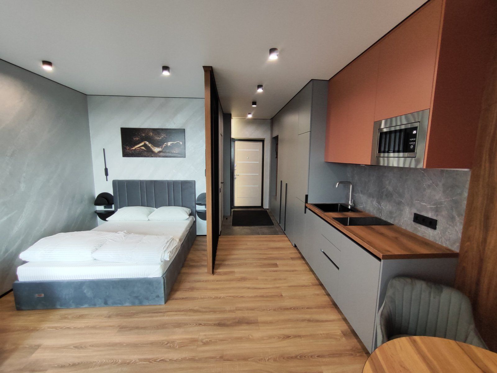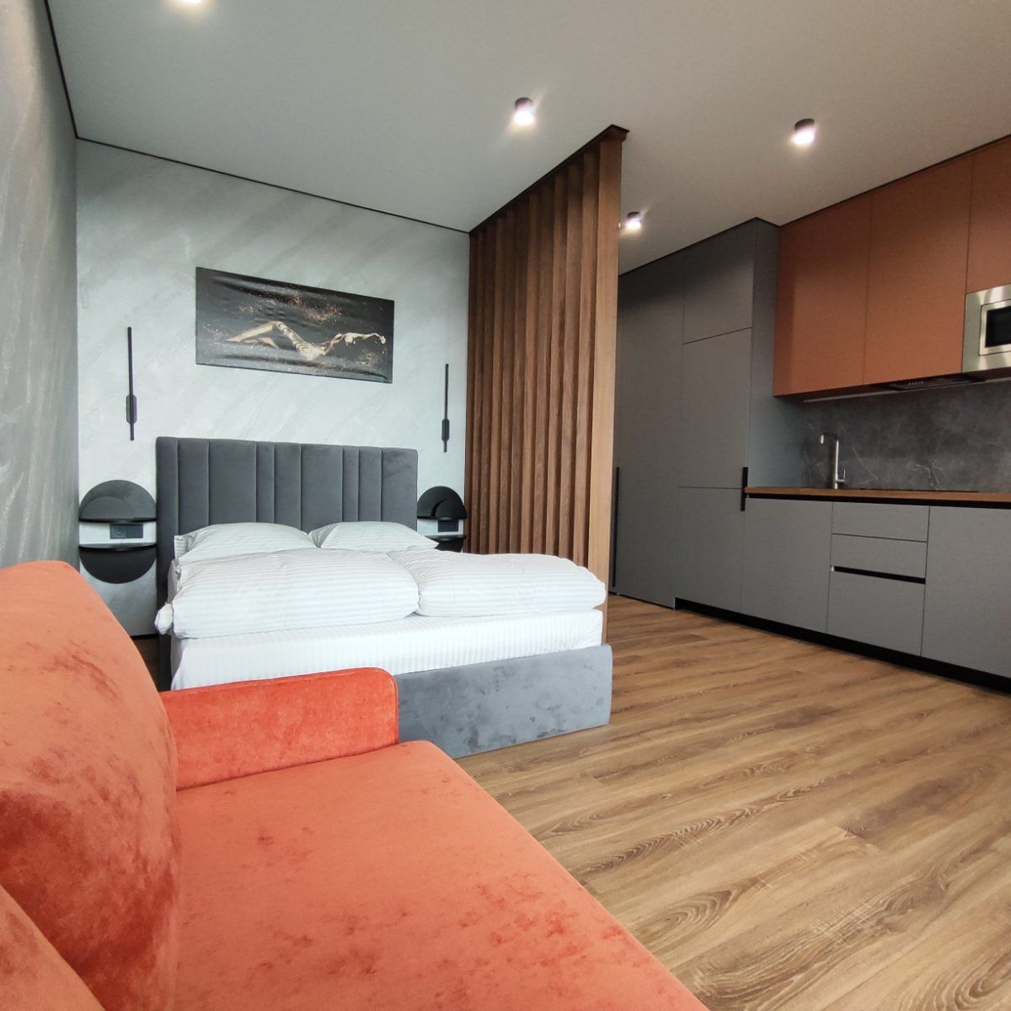 Сдается уютная квартира-студия в современном жилом комплексе Minsk World, расположенная на 23 этаже. Из панорамных окон и просторной лоджии открывается восхитительный вид на город, особенно прекрасный вечером, когда зажигаются огни иллюминации - идеальное место, чтобы насладиться чашкой ароматного кофе или чая. Квартира комфортно вмещает до 4 человек, прекрасно подходя как для пары или семьи, так и для небольшой компании друзей или коллег. Мы тщательно продумали все детали и оснастили квартиру всем необходимым для вашего удобства, чтобы вы могли сосредоточиться на отдыхе или работе.