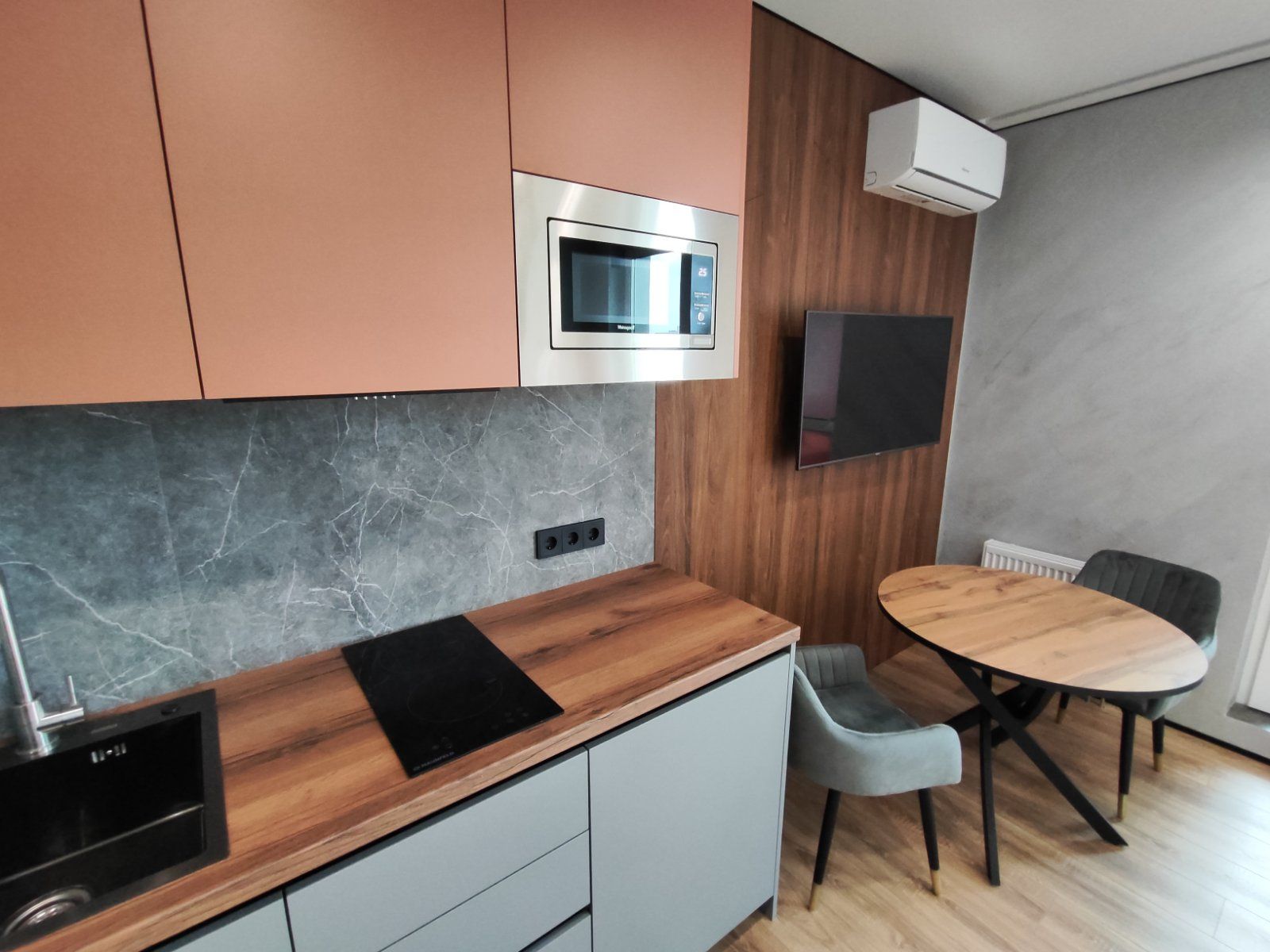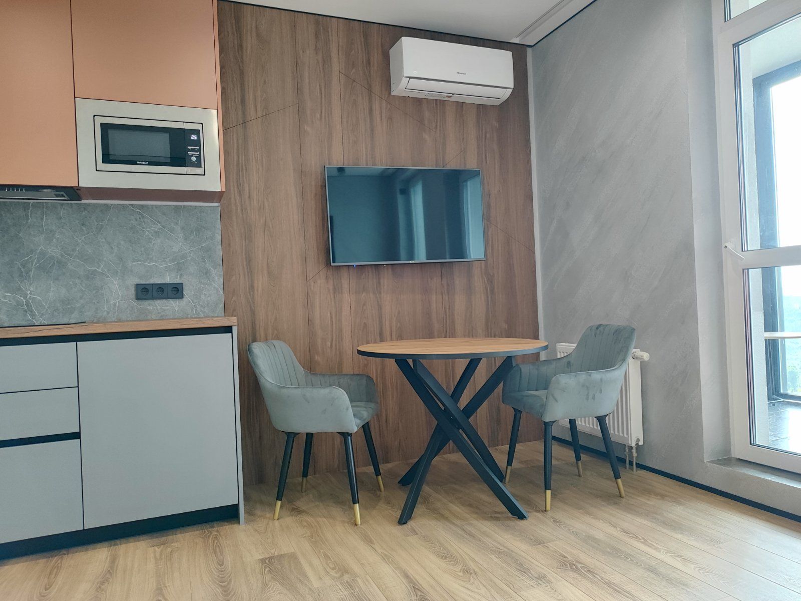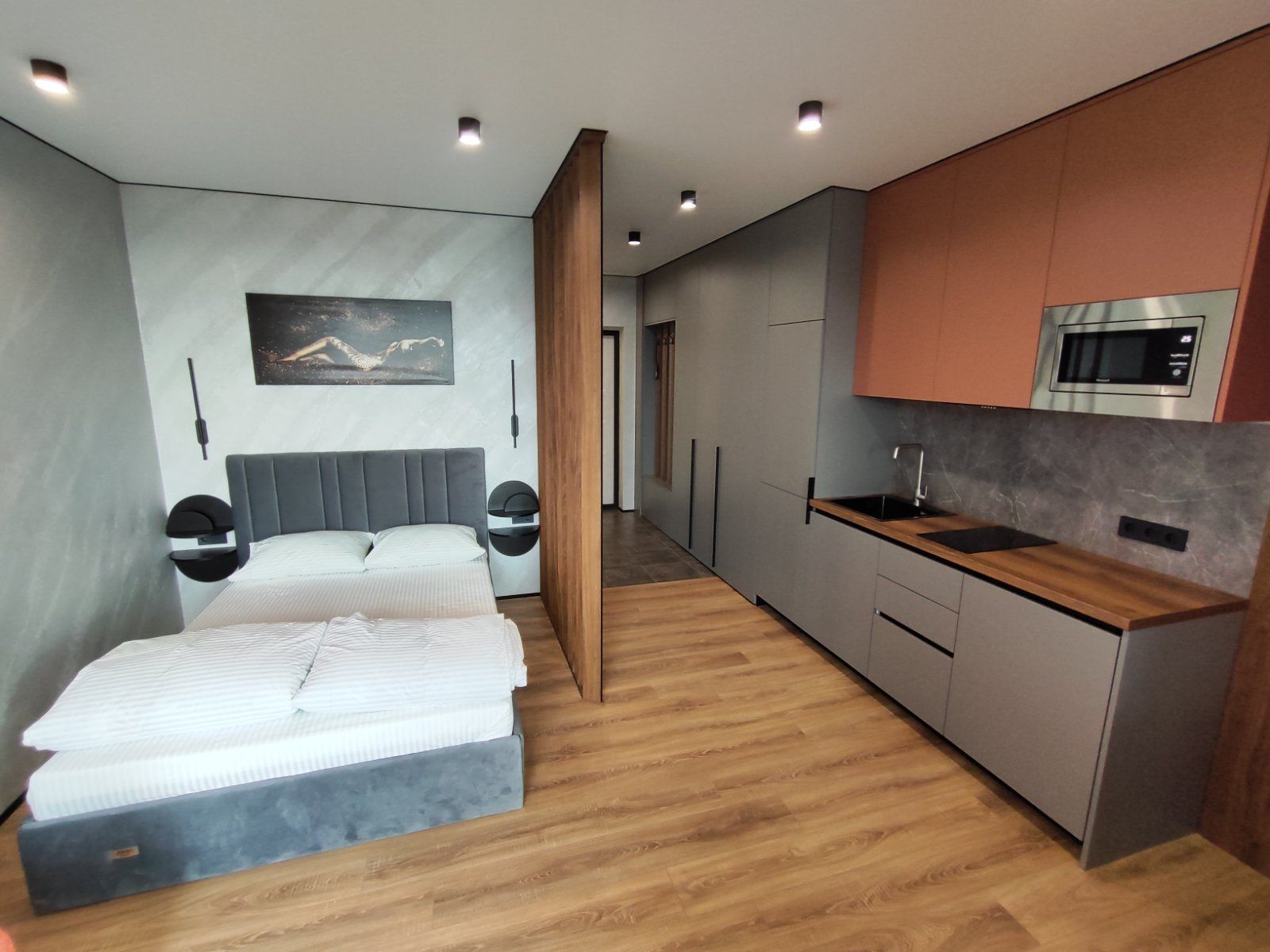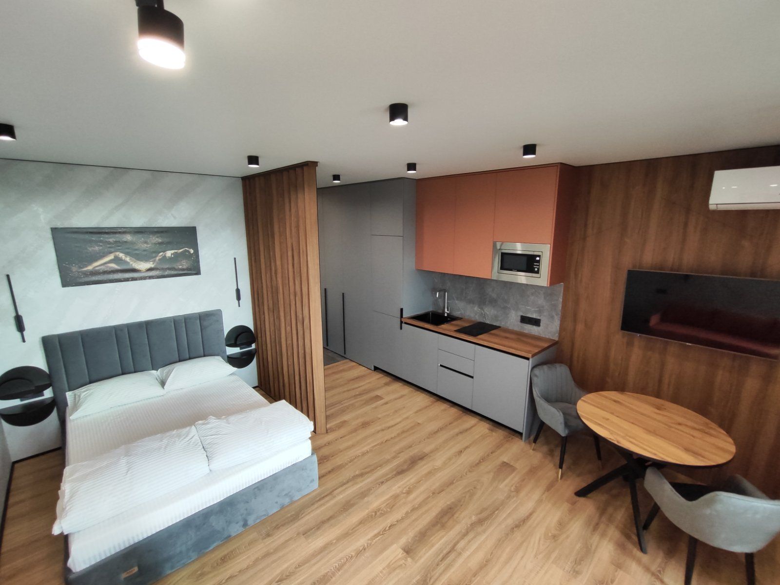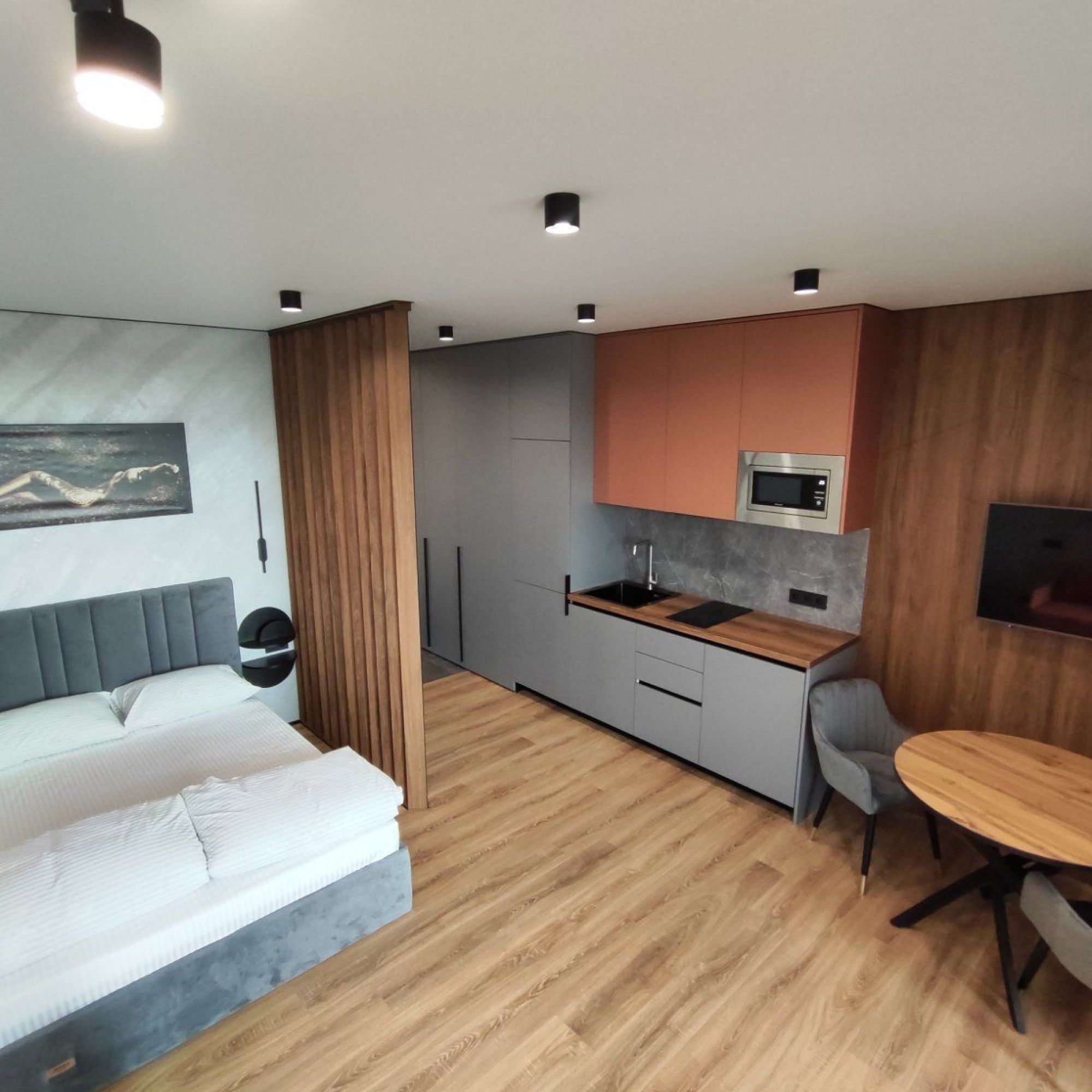 Сдается уютная квартира-студия в современном жилом комплексе Minsk World, расположенная на 23 этаже. Из панорамных окон и просторной лоджии открывается восхитительный вид на город, особенно прекрасный вечером, когда зажигаются огни иллюминации - идеальное место, чтобы насладиться чашкой ароматного кофе или чая. Квартира комфортно вмещает до 4 человек, прекрасно подходя как для пары или семьи, так и для небольшой компании друзей или коллег. Мы тщательно продумали все детали и оснастили квартиру всем необходимым для вашего удобства, чтобы вы могли сосредоточиться на отдыхе или работе.