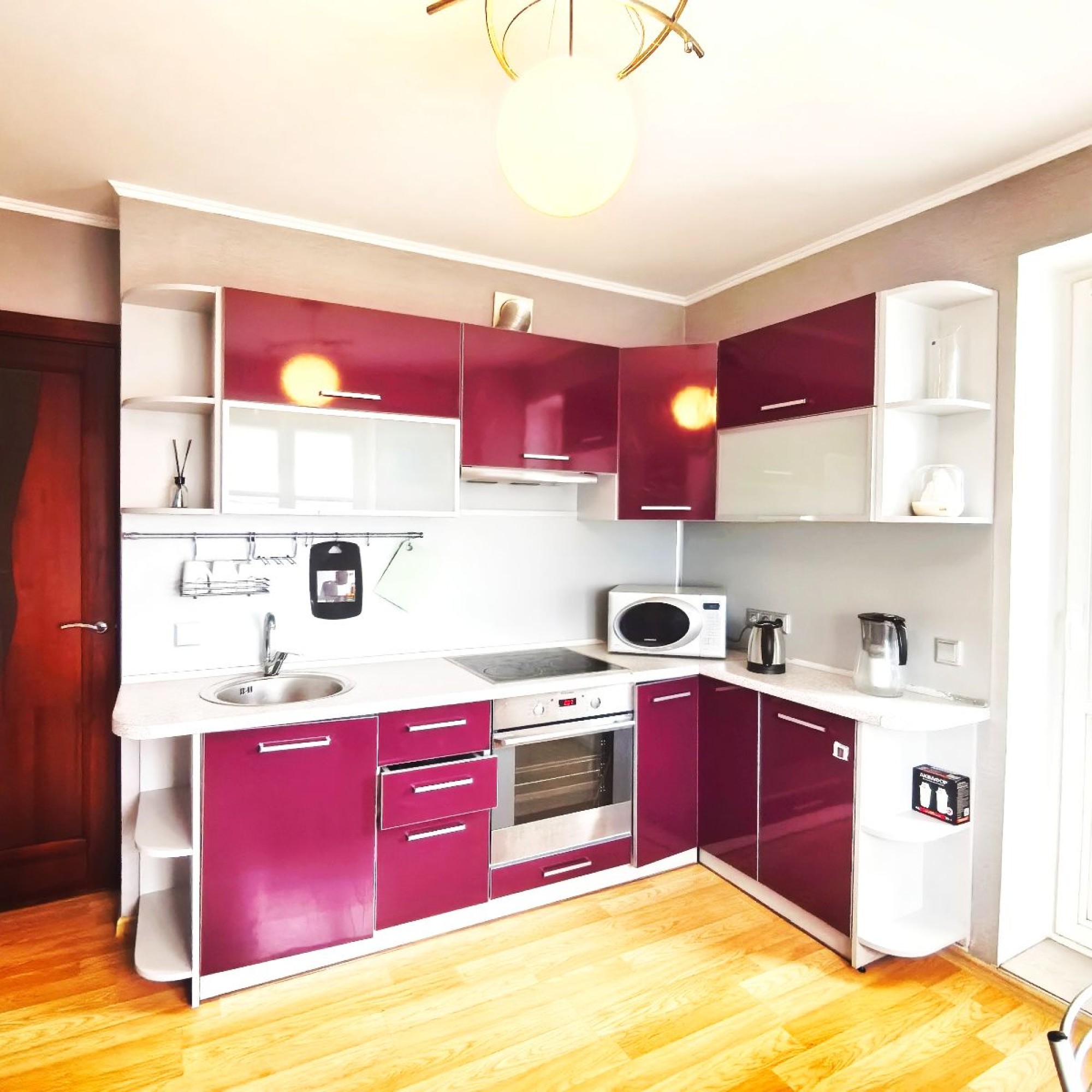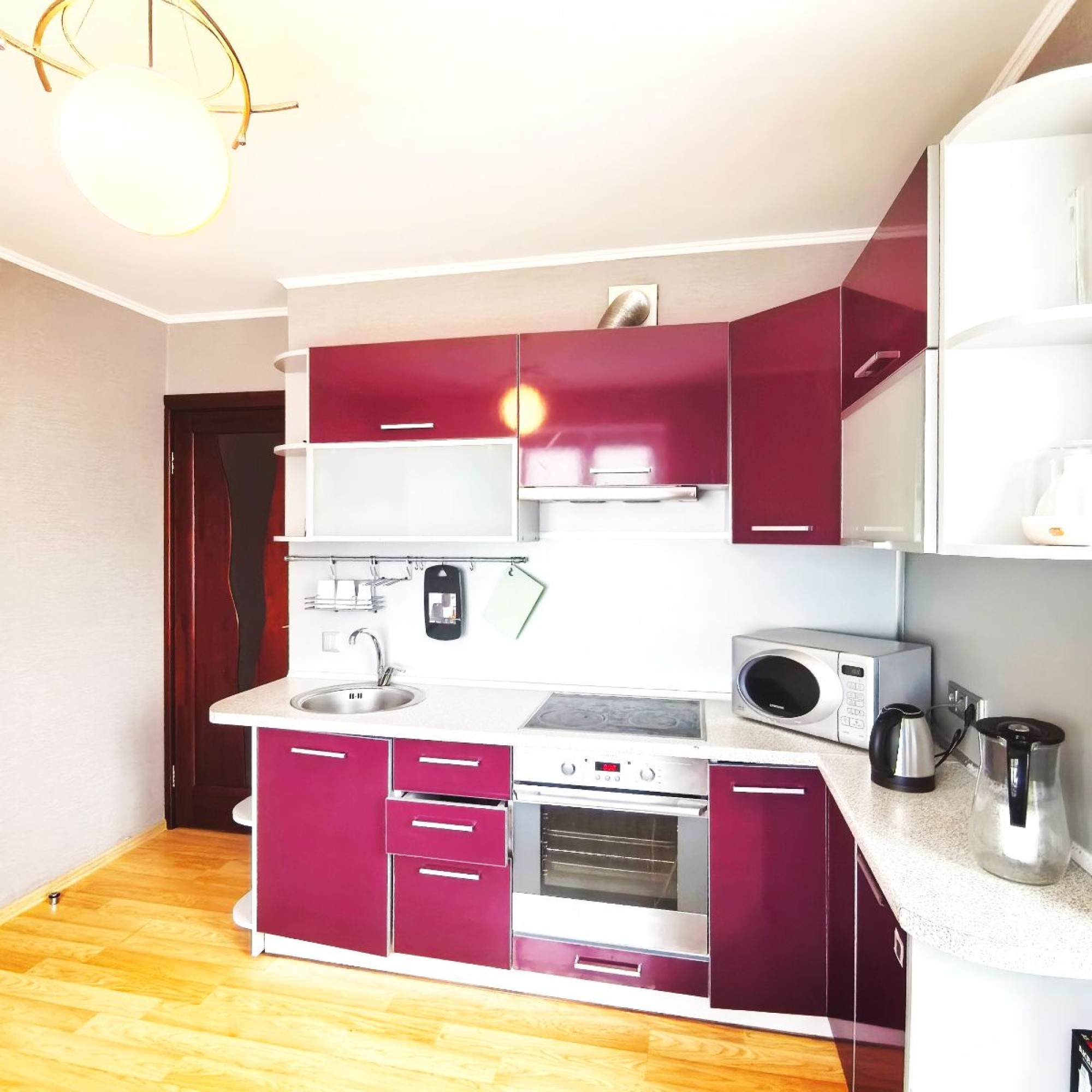 Для удобства гостей две двухспальных кровати, смарт тв, вай-фай, холодильник, СВЧ, стиральная машина, утюг, фен, столовые приборы, посуда, чай, кофе, сахар, соль, постельное белье и полотенца, согласно количеству гостей, и тд.