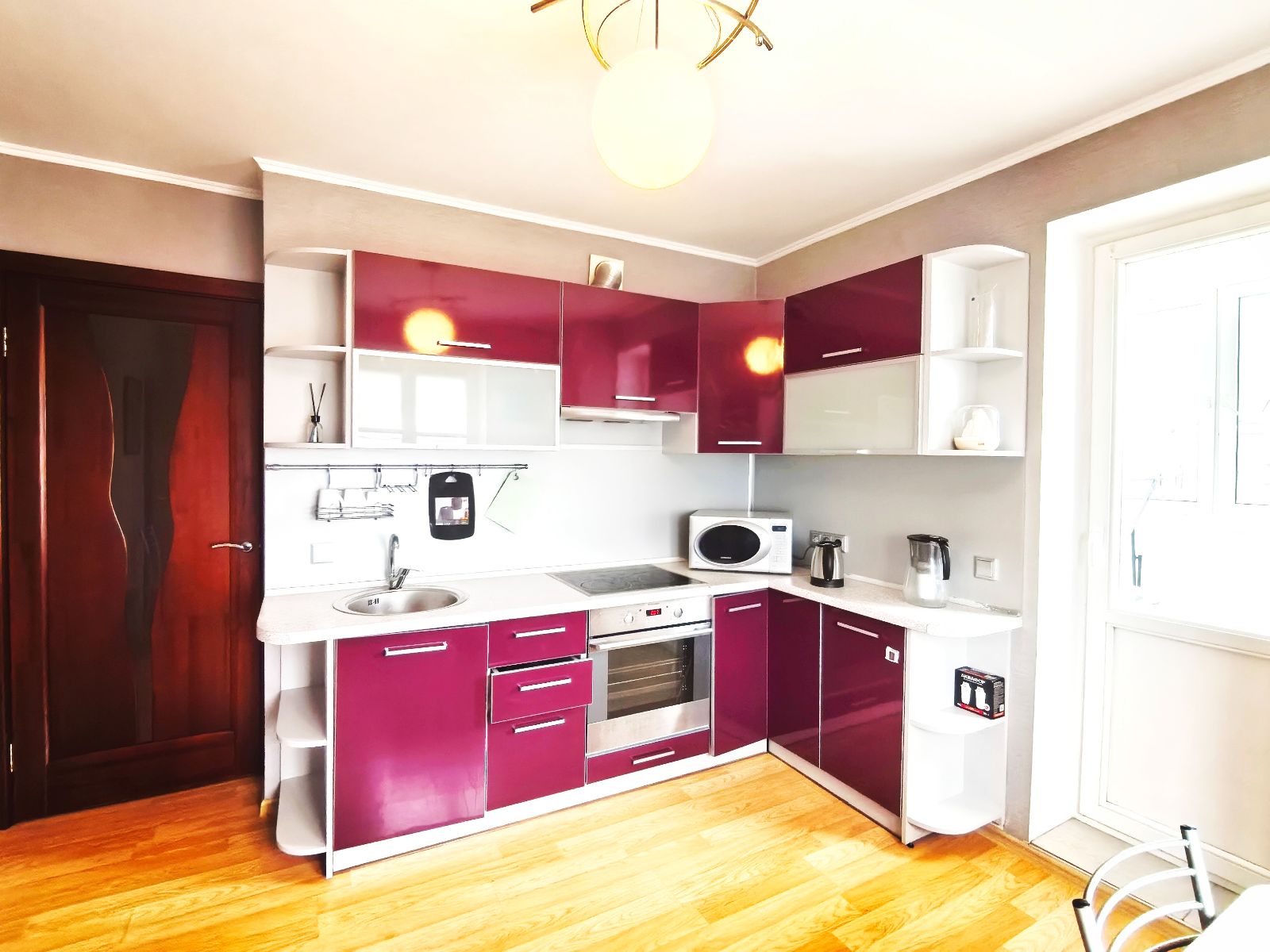 2 отдельные комнаты, разделенные между собой кухней с большой лоджией.
