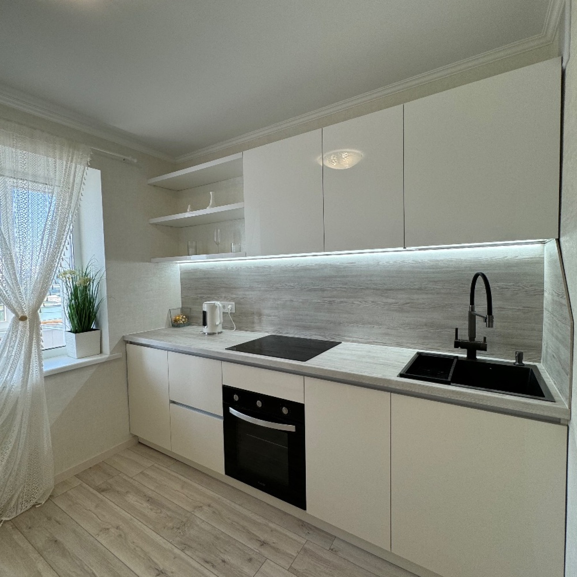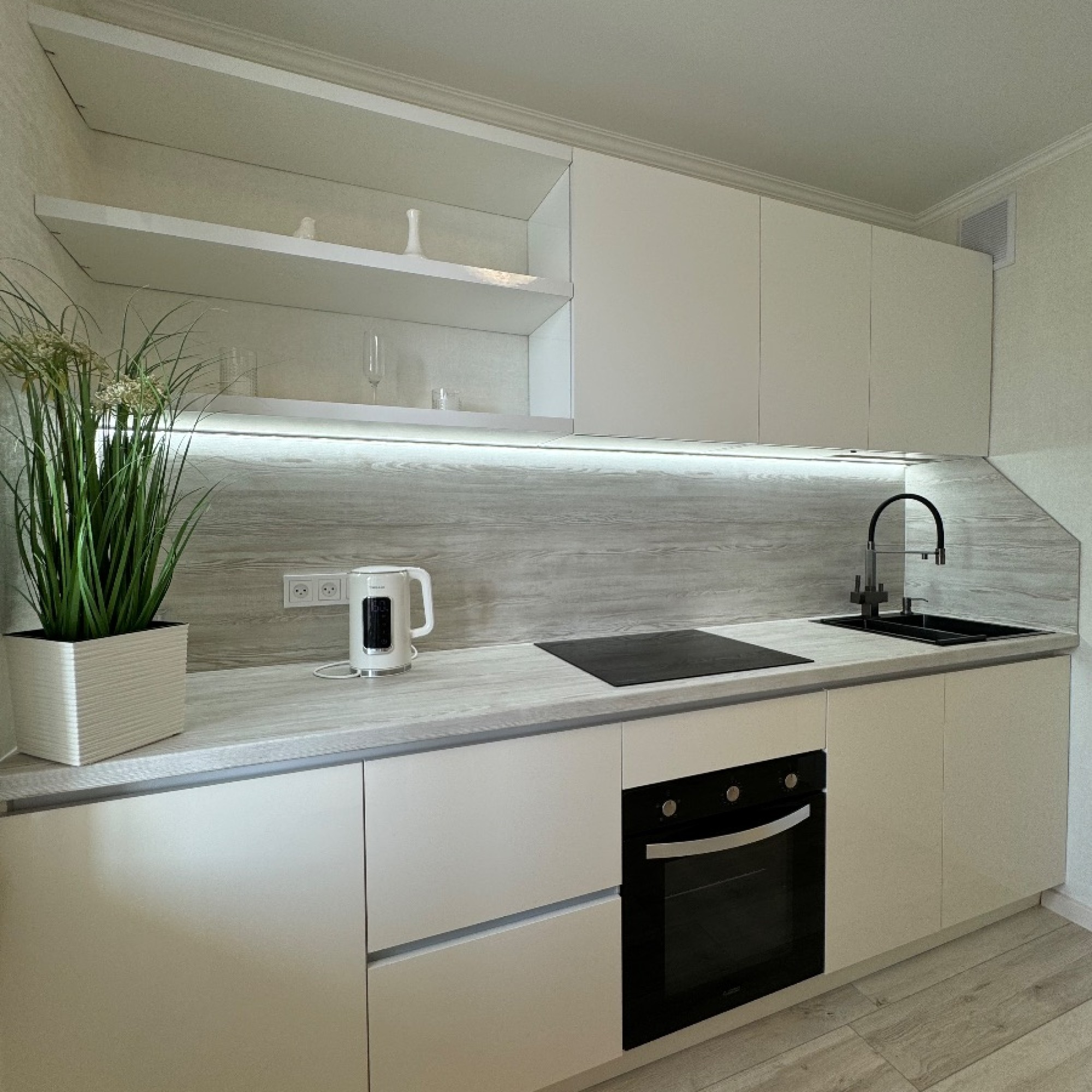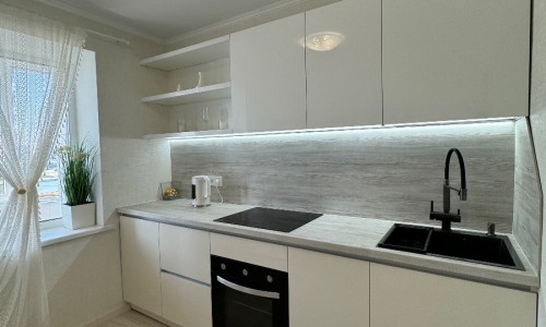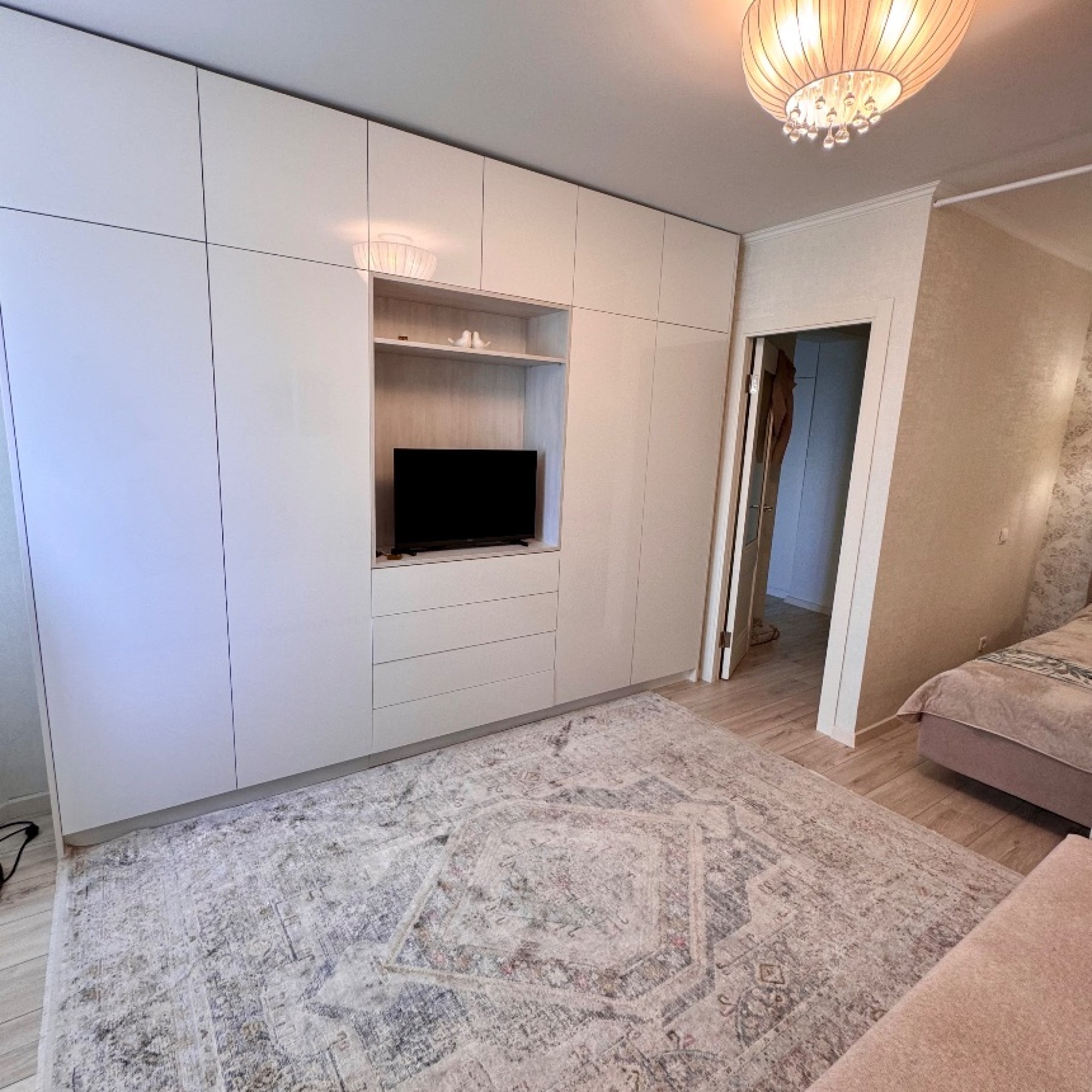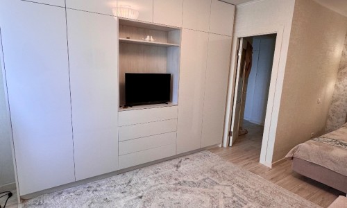 Так же есть встроенная система хранения. Smart TV, WI-FI, посудомоечная машина, духовой шкаф, стиральная машина, фен, утюг.