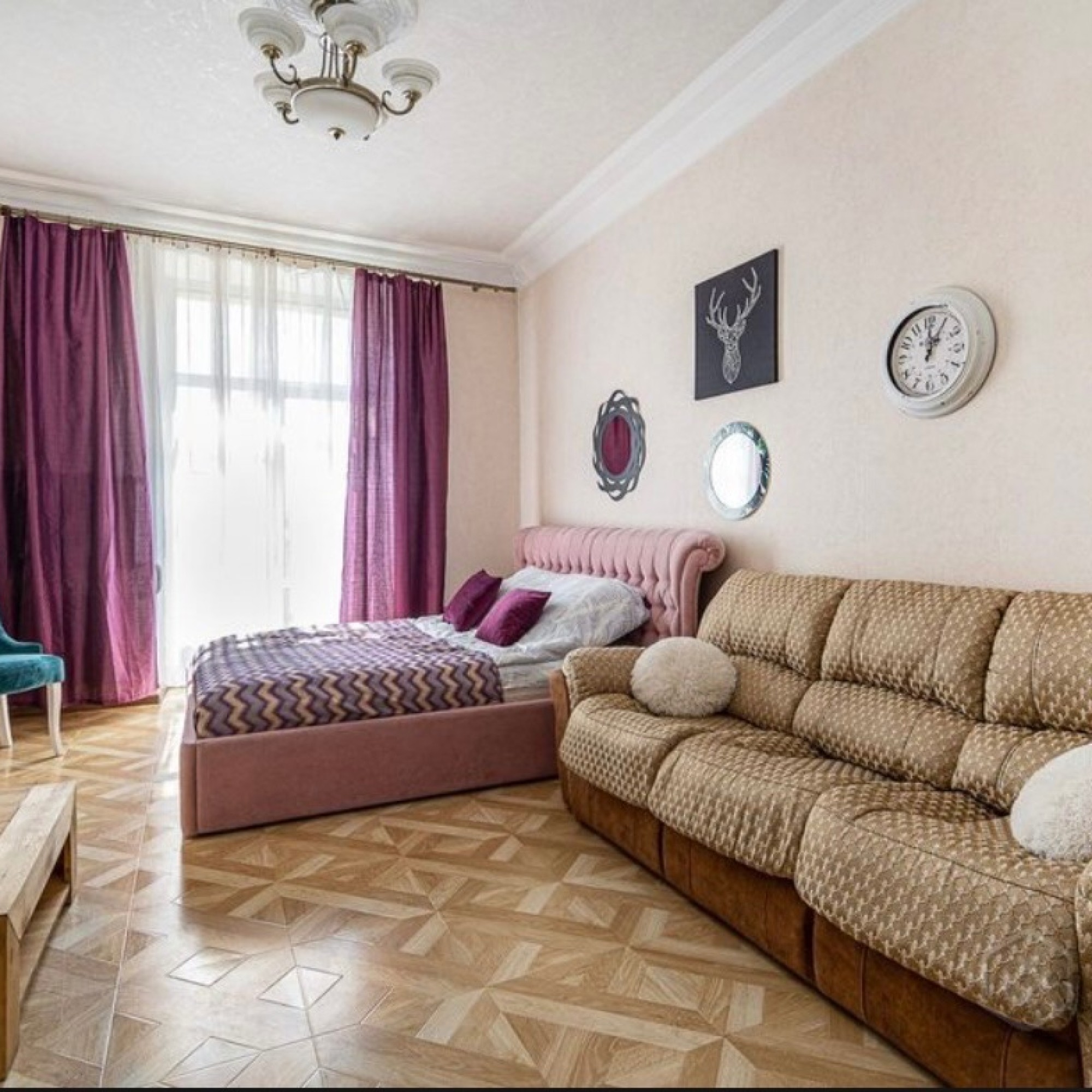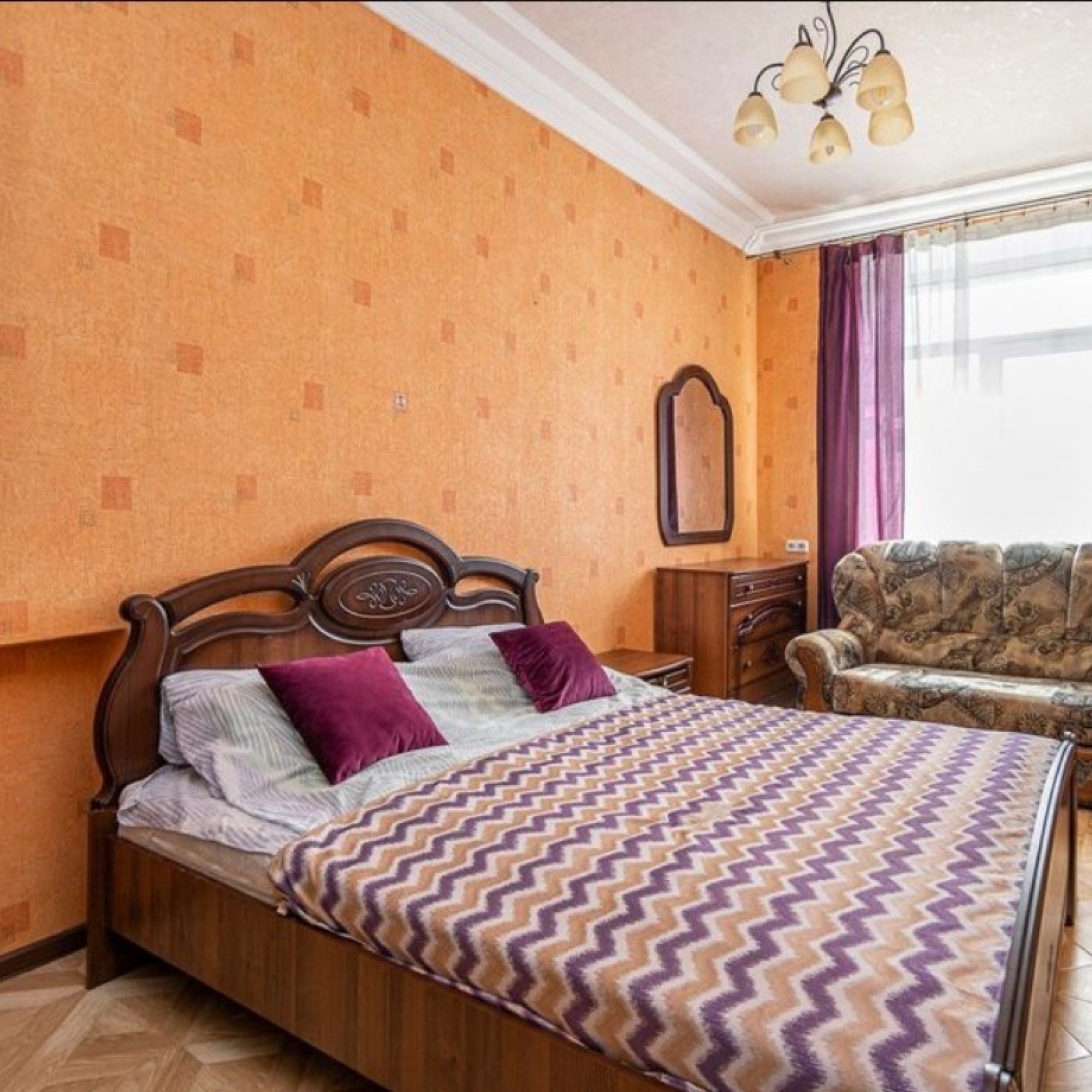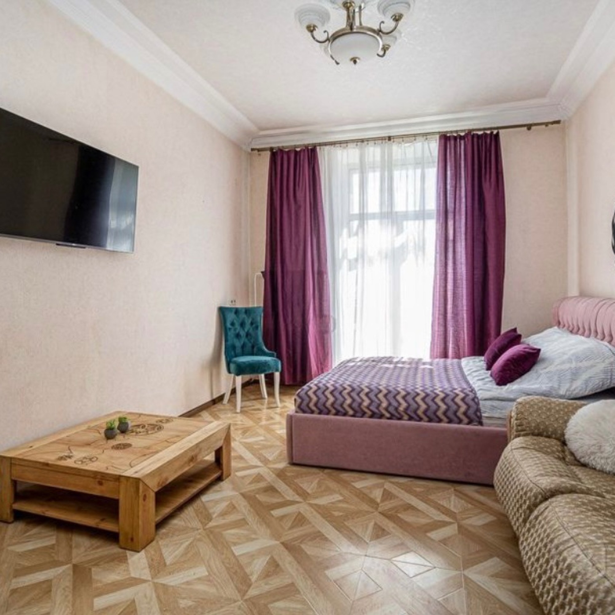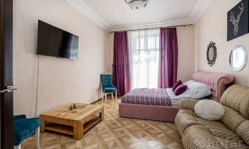 Апартаменты будут рады приветствовать Вас в «золотом квадрате» Минска! Это квартира в классическом стиле с высокими потолками и видом на проспект Независимости из кухни и на на прекрасный костел из спальни и зала.