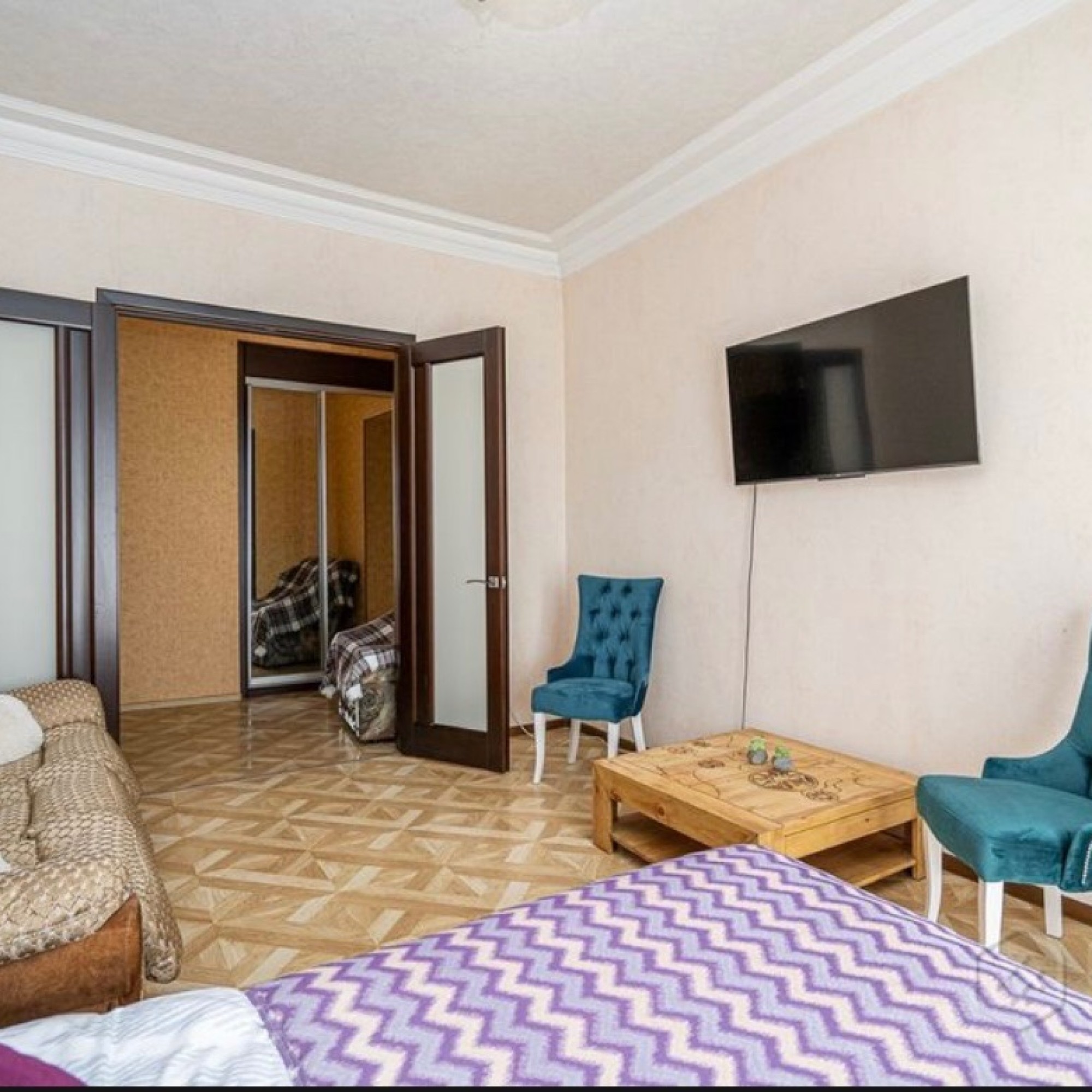 Просторная квартира с большой кухней и уютной спальней, а также меблированная гостиная оснащенная всем необходимым для вашего комфортного отдыха.