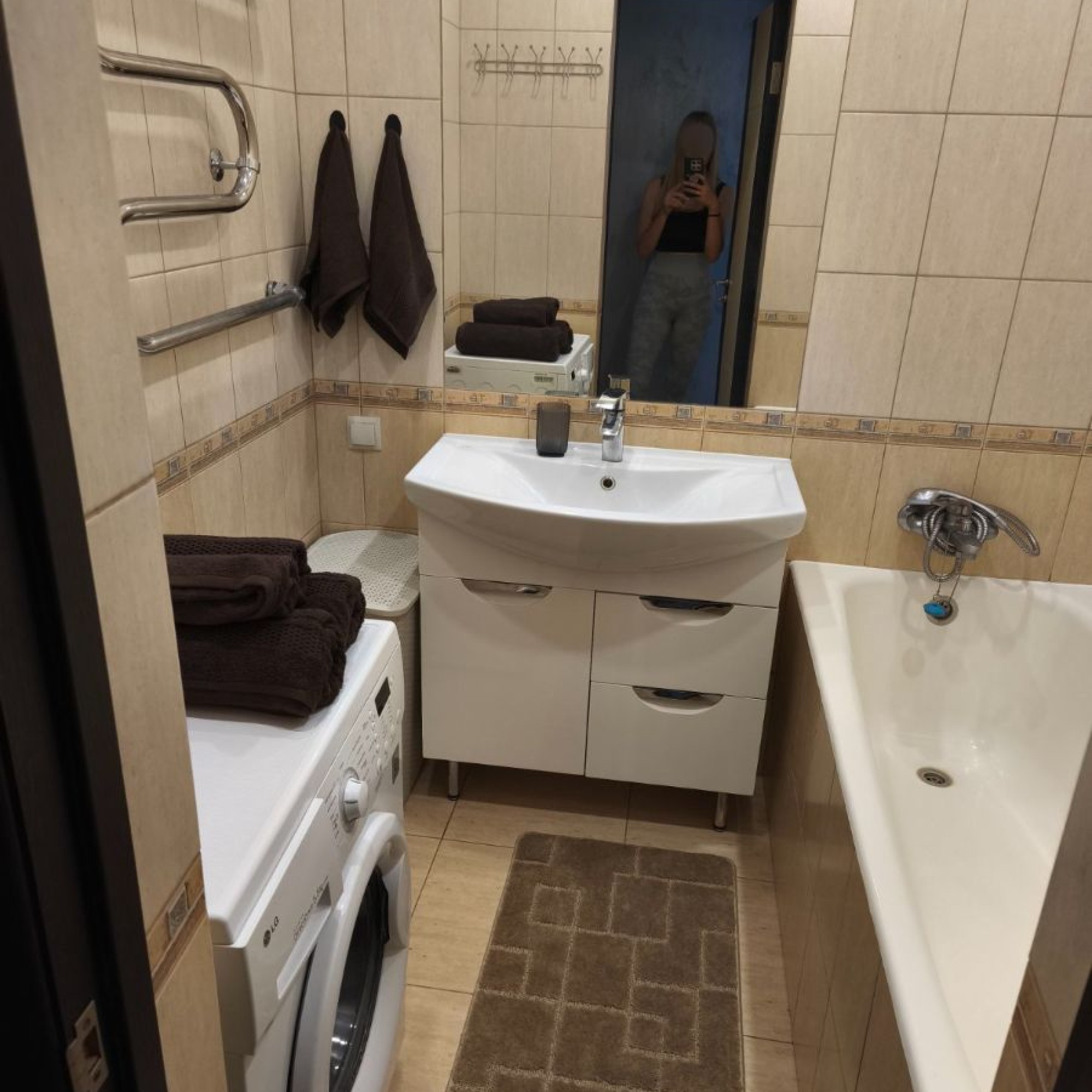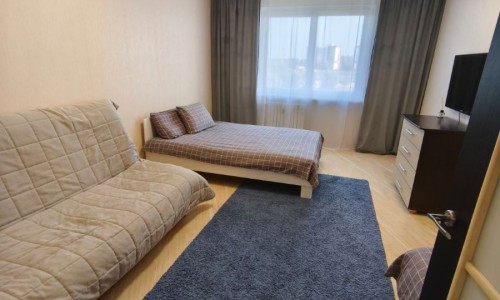 Симпатичная, уютная квартира. Новая двухспальная кровать с ортопедическим матрасом. Есть диван (раскладывается) и тахта 140х70 (подойдет для ребенка). Так же есть микроволновка, чайник, холодильник, стиральная машина, телевизор (170 каналов), Wi Fi, комлект полотенец, постельное белье, посуда. Во дворе небольшой парк. Рядом есть магазины, заправка.