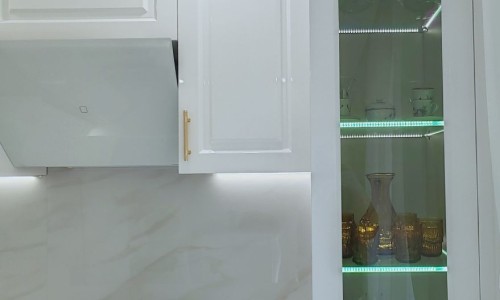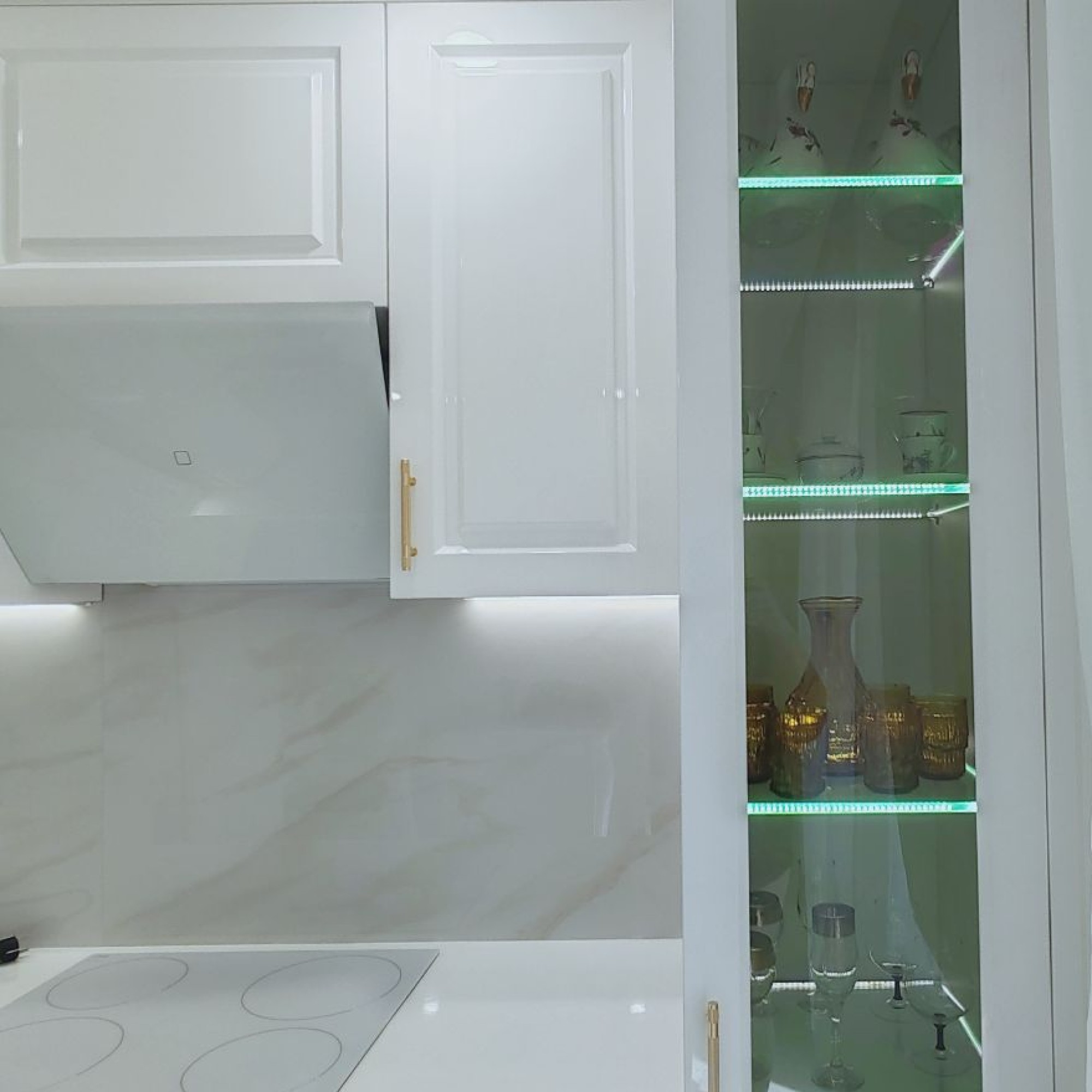 Белоснежные полы, искрящиеся как снег под лучами солнца, в коридоре и на кухне.