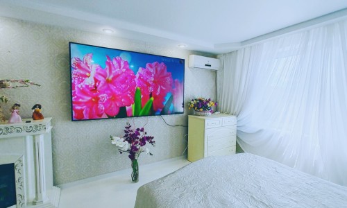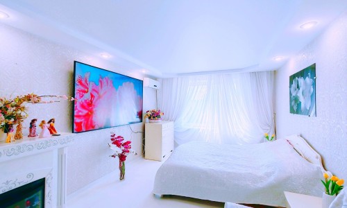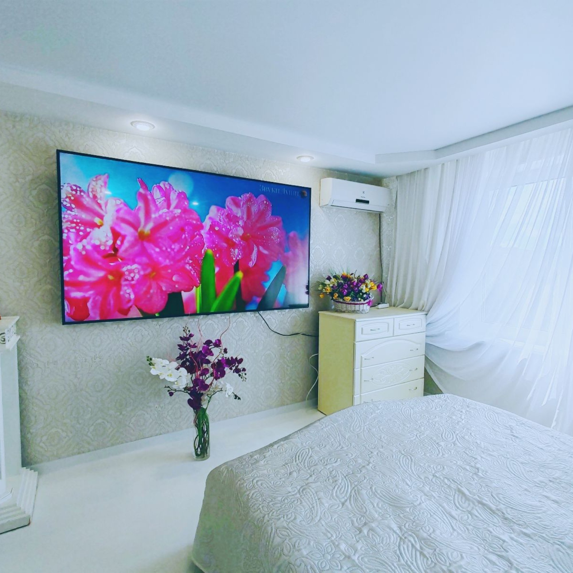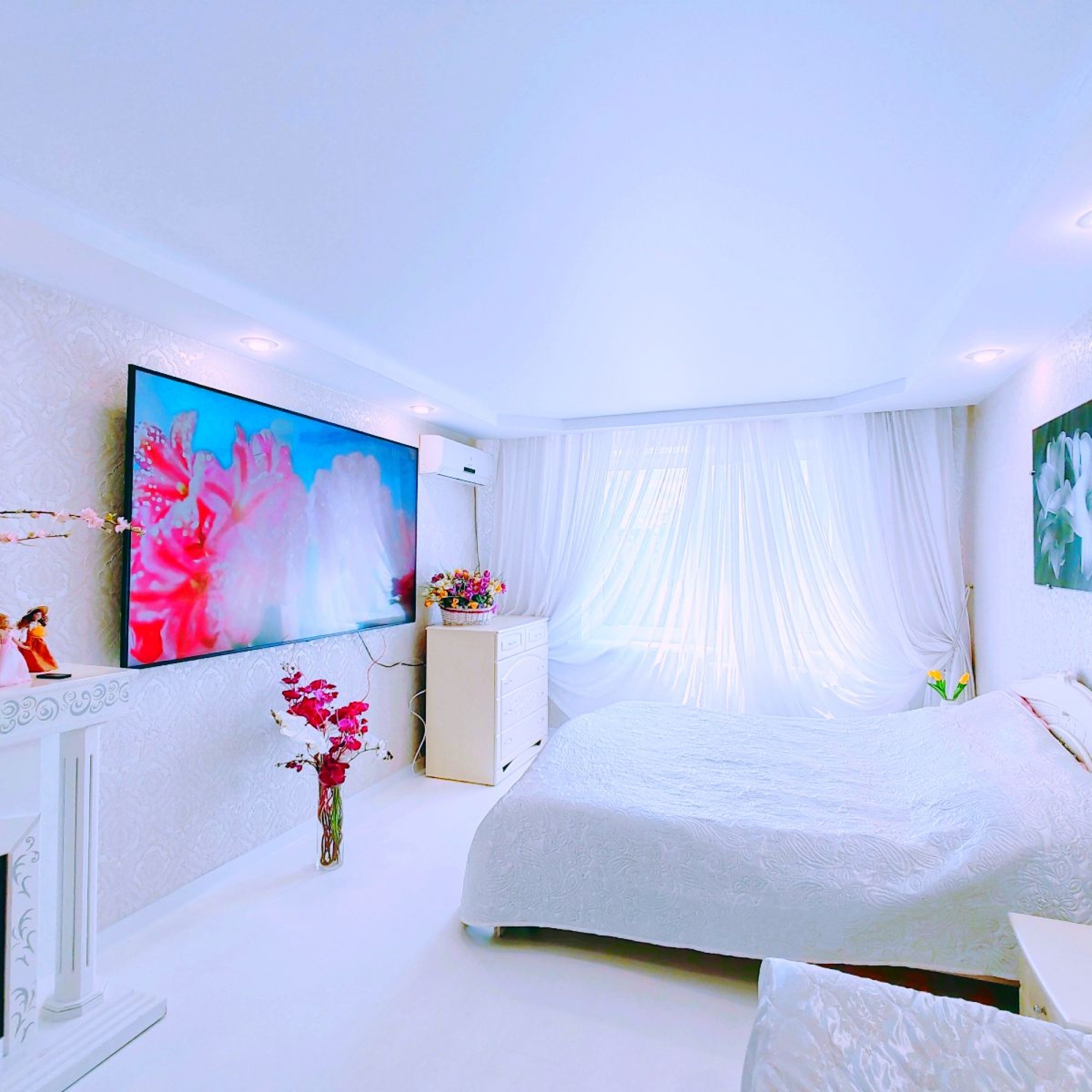 Шикарная светлая, просторная квартира в белых тонах с САМЫМ большим TB (86 дм и smart tv) в 7-ми минутах от метро "Каменная горка"