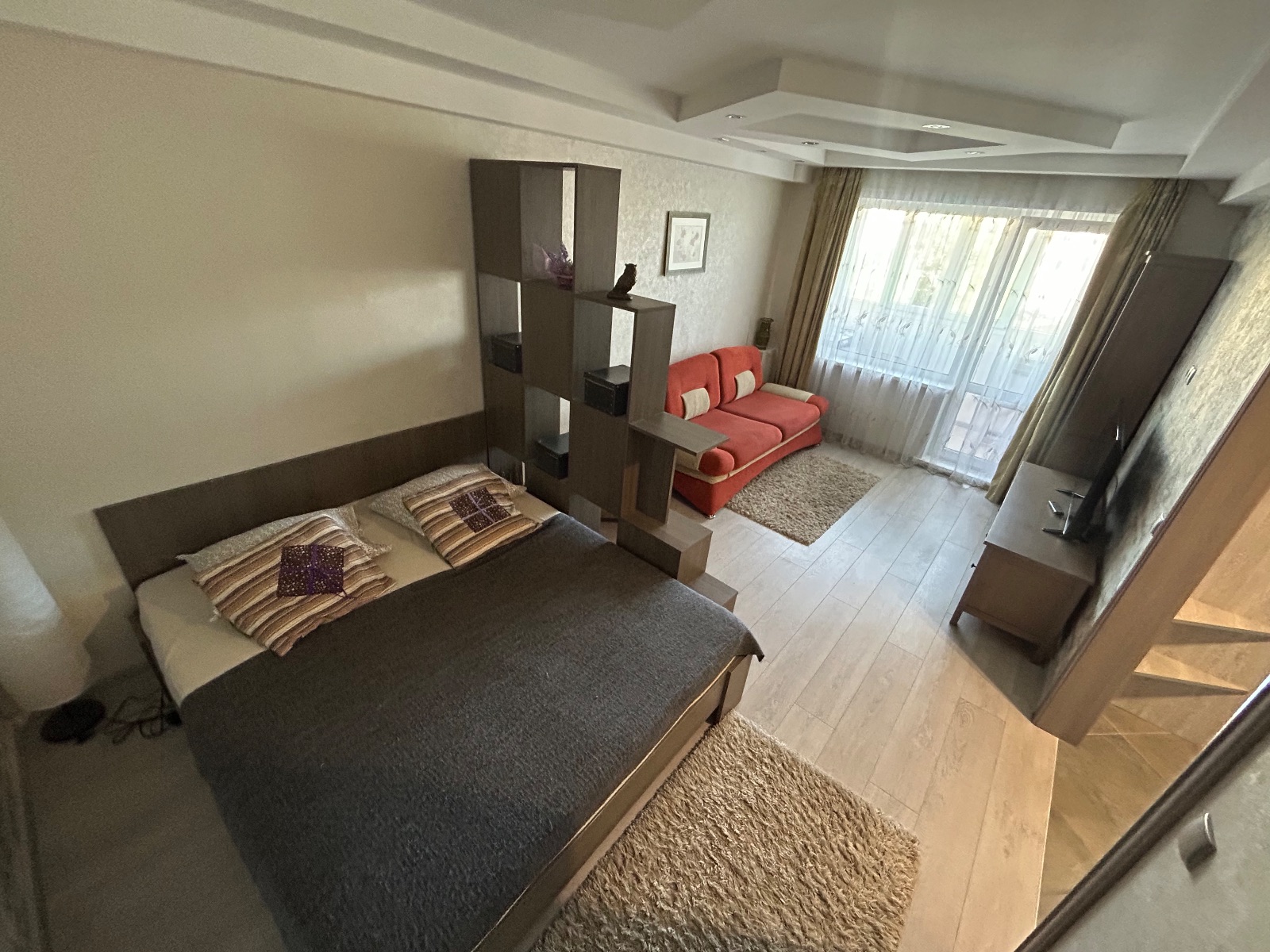1-2 гостей. Есть все необходимое для кратковременного проживания. Отсутствует плита для приготовления пищи, есть свч-духовка и мультиварка. Парковка во дворе, прямой автобус с жд вокзала (туристический маршрут).