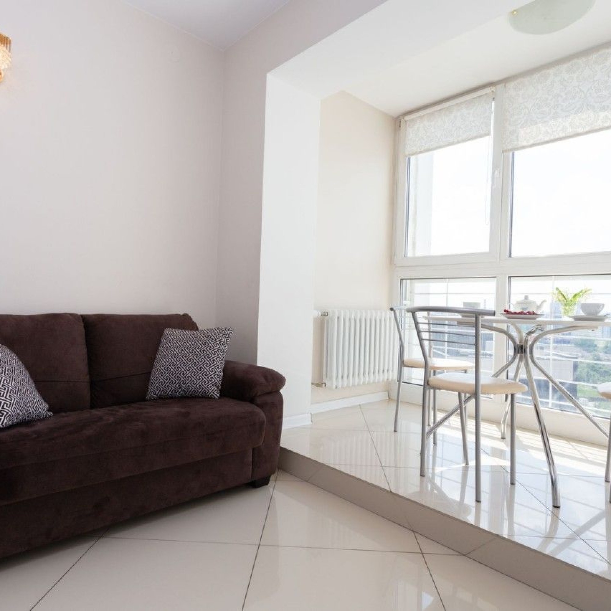 Уютная евродвушка в новом доме в центре Минска, панорамное окно в пол, 15 й этаж.