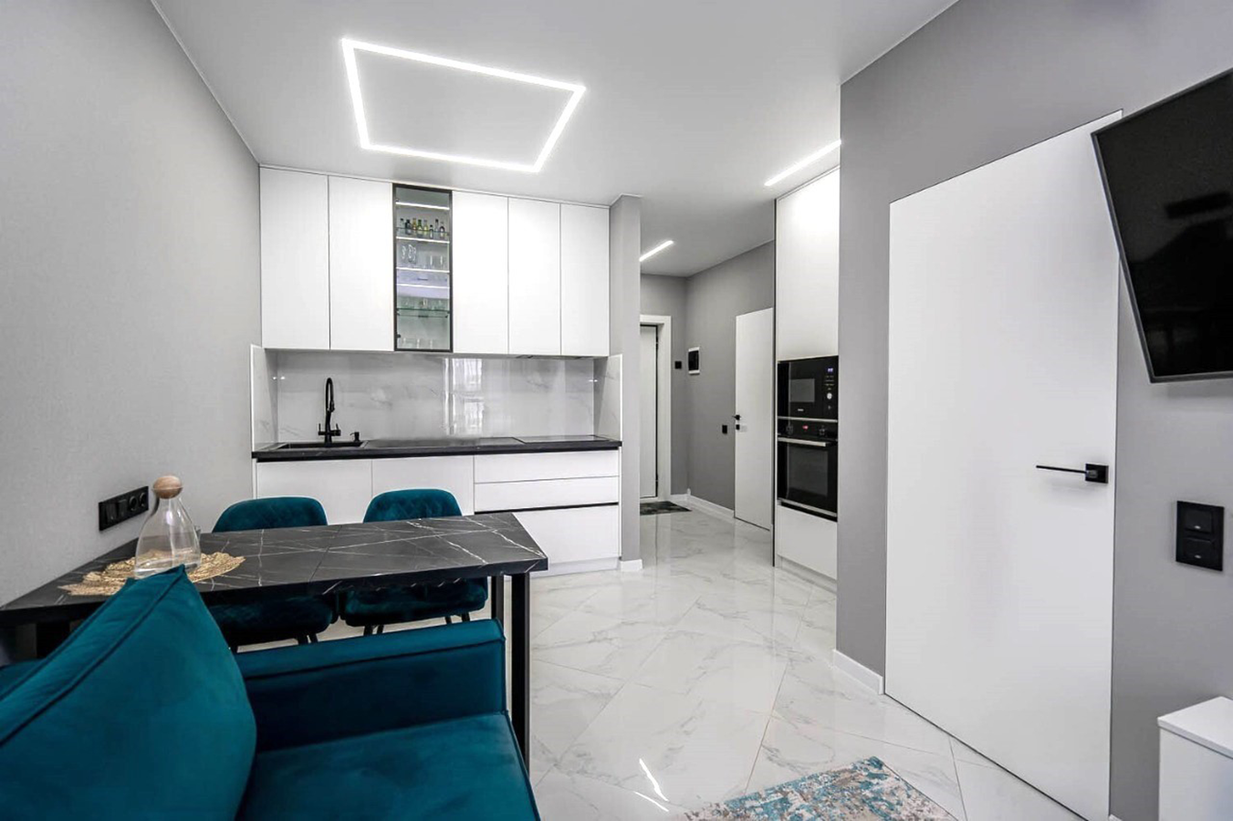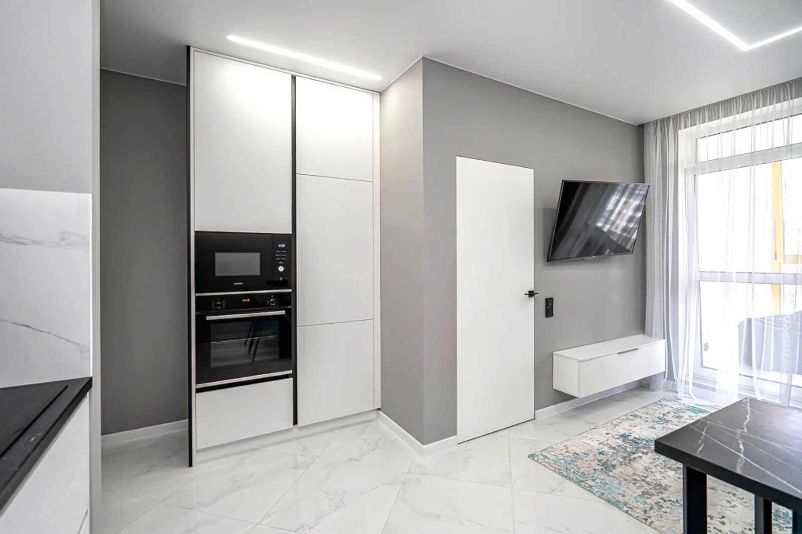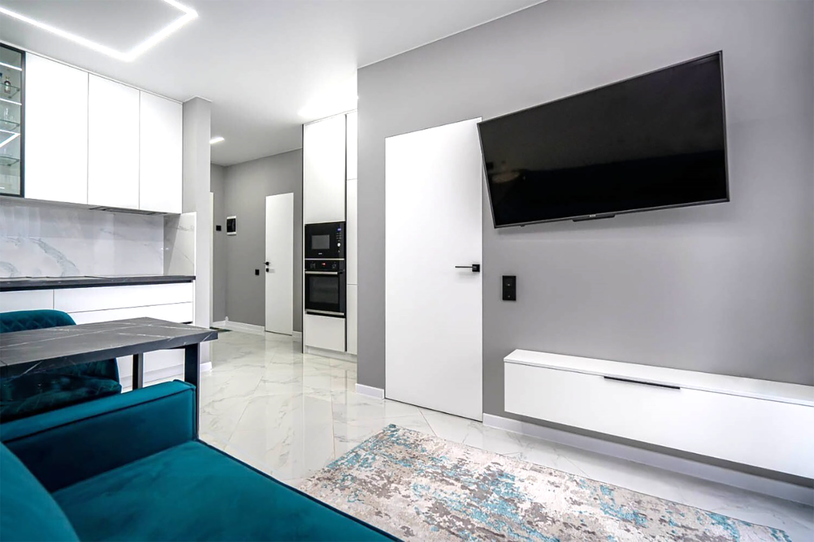 Апартаменты Теслы 23 будут не просто местом, где вы остановитесь во время посещения Минска. Они станут частью ваших воспоминаний о Минске, тем, о чём захочется рассказать. В апартаментах выполнен современный дизайнерский ремонт в соответствии с последними модными тенденциями. К вашим услугам предоставляется уютная гостиная с мягкой мебелью и ЖК-телевизором, объединенная с функциональной кухней. Светлая спальня с панорамными окнами и двуспальной кроватью подарит вам тепло и уют домашнего очага. Имеется вся необходимая мебель, микроволновка, холодильник, посудомойка, электрочайник, посуда для приготовления пищи. Для вашего комфорта предусмотрено наличие некоторых приятных мелочей: безлимитный интернет wi-fi, водонагреватель, средства личной гигиены, полотенца, фен, утюг, гладильная доска, кофе-чай.