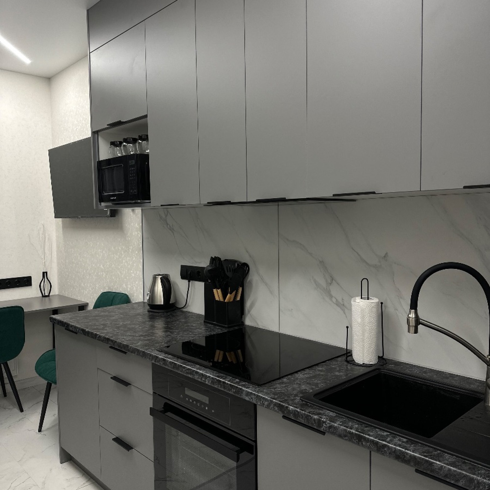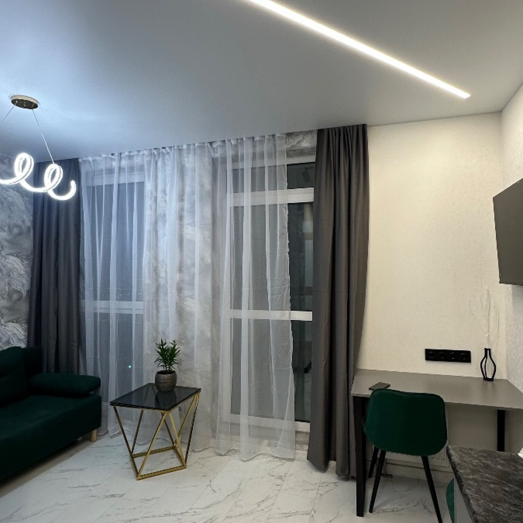 Современная новая квартира в новом ЖК ,панорамные окна, все необходимое для комфортного проживания , отдельная комната с двух спальной кроватью, в гостиной двух спальный диван