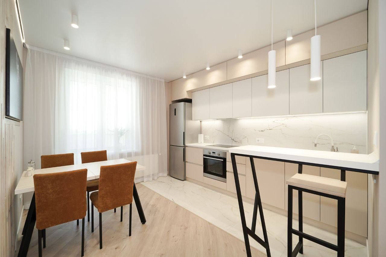 Уютная квартира с современным ремонтом. Квартира полностью оборудована всем необходимым для вашего удобства: современная кухня с бытовой техникой (холодильник, варочная панель, духовой шкаф, микроволновая печь), уютная гостиная с удобным диваном и телевизором, а также спальня, оформленная с заботой о вашем комфорте. Санузел раздельный.