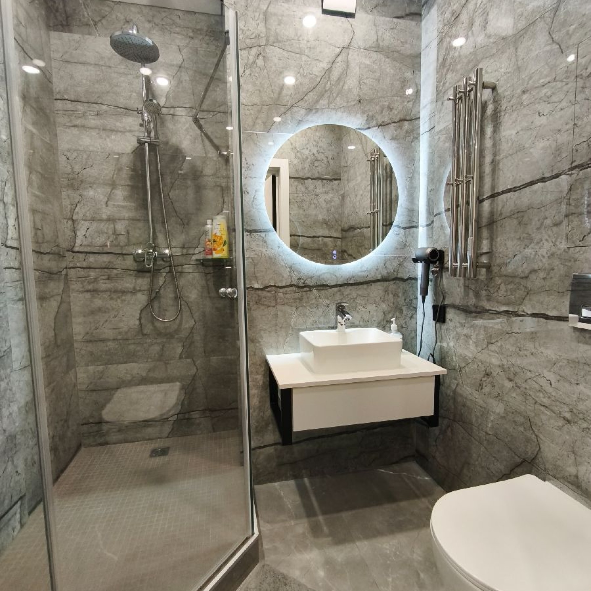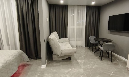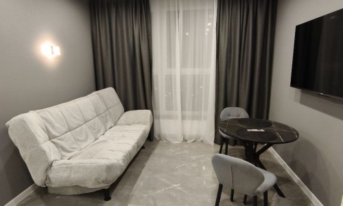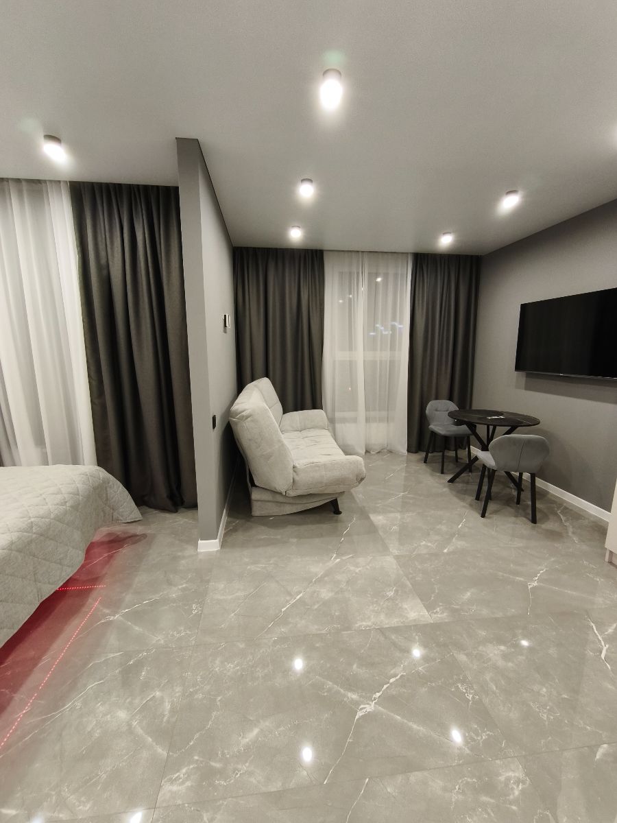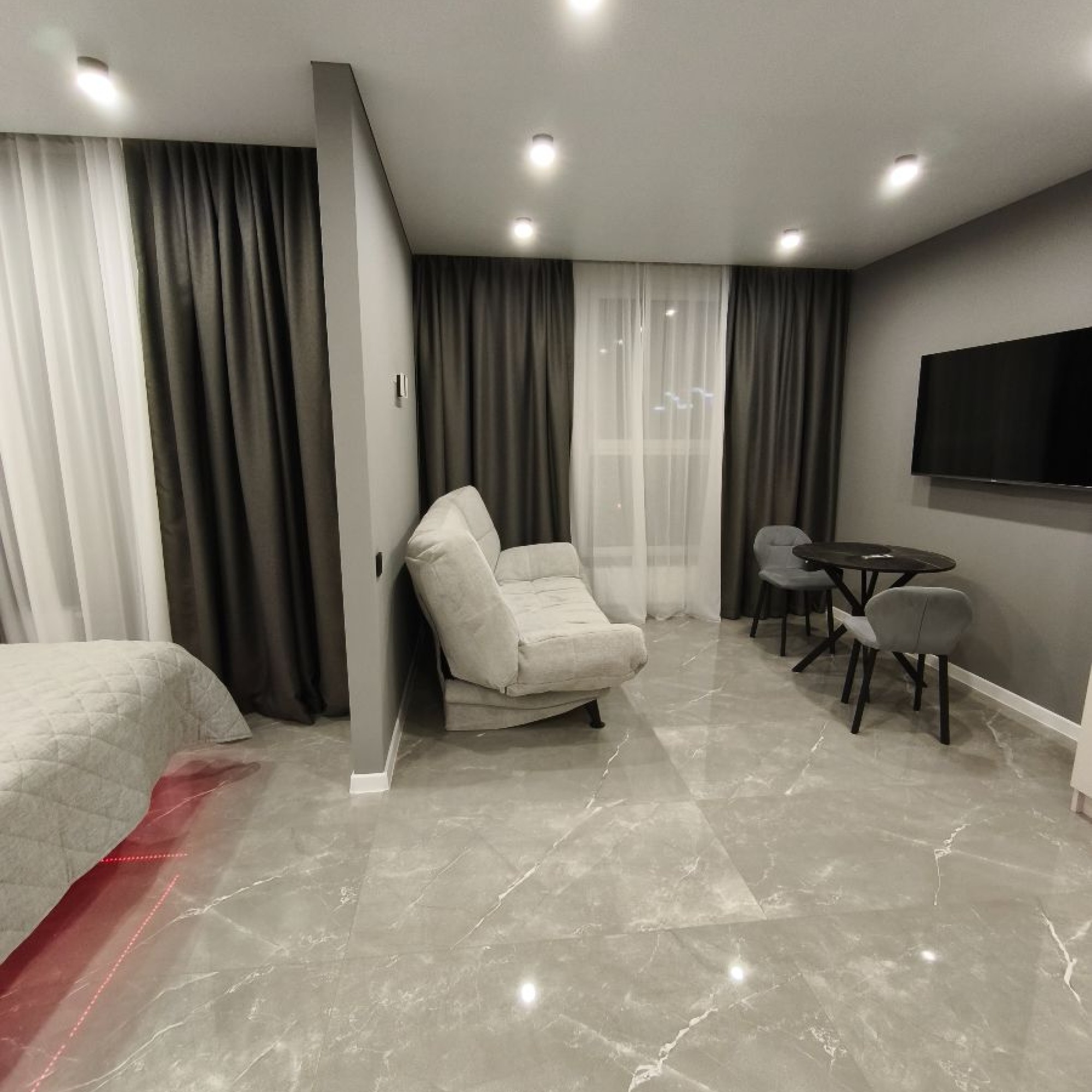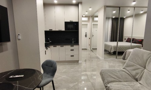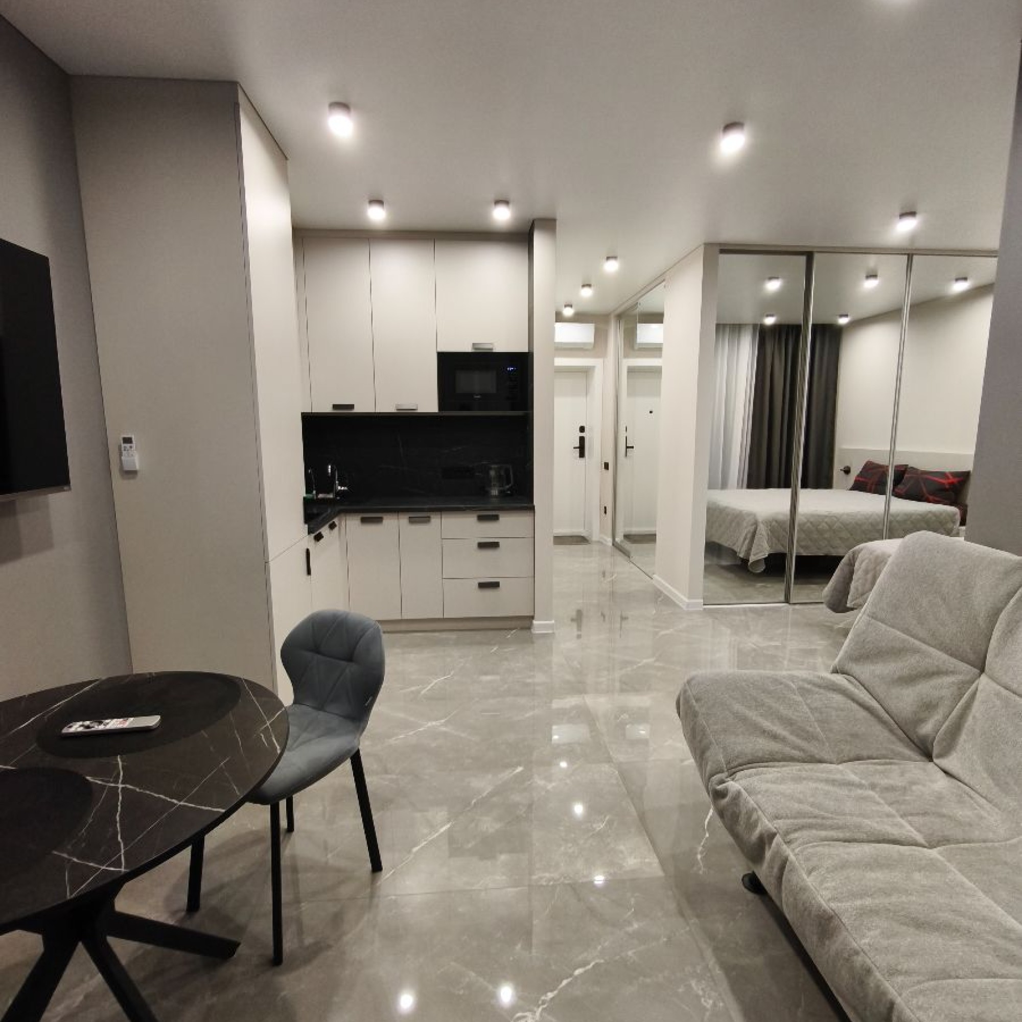 Новая, уютная студия рассчитанная на проживание двух гостей + дети. (Члены одной семьи) Предусмотрено всё необходимое для комфортного времяпровождения и проживания. Студия не сдаётся для проведения мероприятий, праздников и молодежных тусовок. По усмотрению арендодателя может взиматься залог в размере стоимости суток аренды, который возвращается при выезде из апартаментов. Арендодатель в праве отказать в заселении или дальнейшем проживании если гость находится в сильном алкогольном или другом опьянении, при жалобе соседей на нарушение режима тишины в установленное время, при нарушении правил проживания, а также не соответствие числа проживающих. Внимание : в будние дни в установленное законом время возможно проведение ремонтных работ в доме.