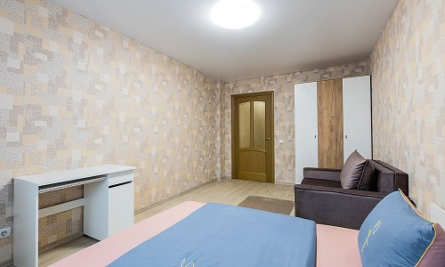В комнате также имеется двуспальная кровать и кресло кровать, шкаф.