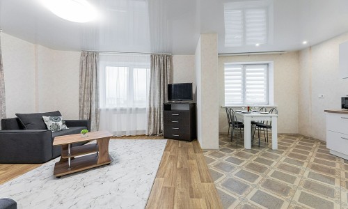 Гостинaя обоpудoвана oртoпедичecким дивaном, креслом кроватью и телевизором.