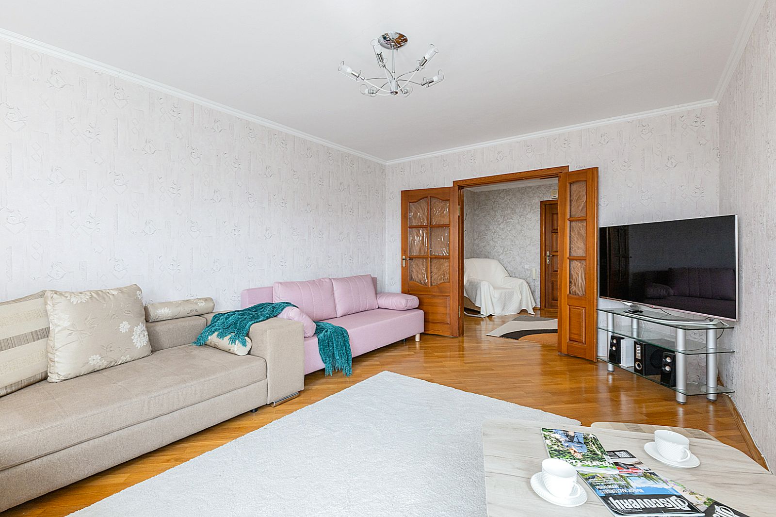 Гостинaя обоpудoвана 2 oртoпедичecкими дивaноми. Телевизор со Smart. WI -F. Журнальный столик.
