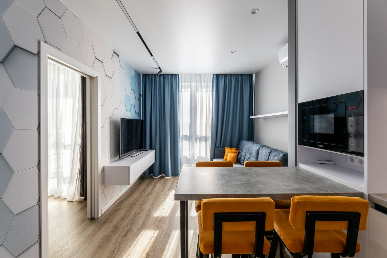 Гостинaя обоpудoвана oртoпедичecким дивaном .Телевизор со Smart.WI -F.