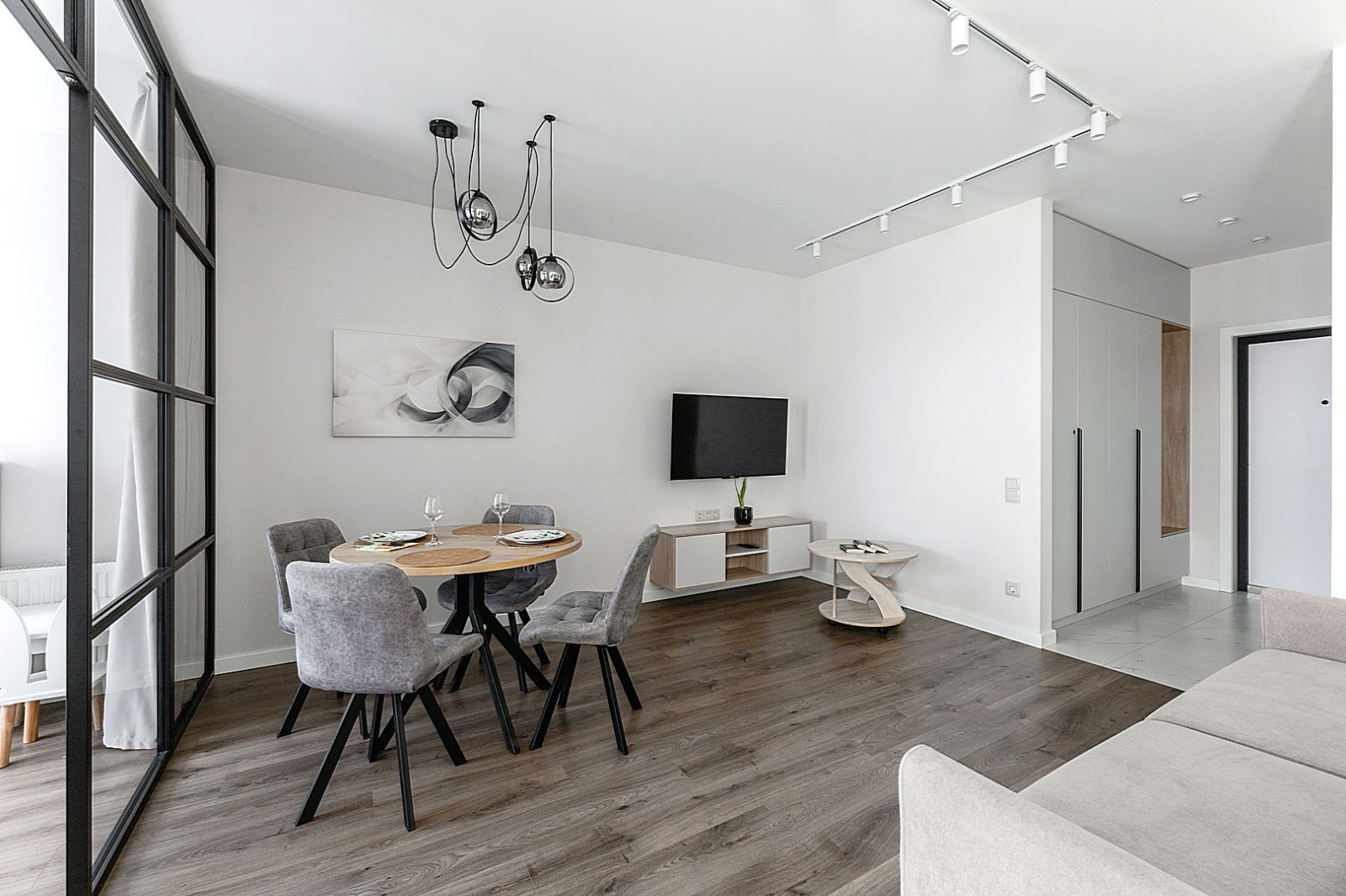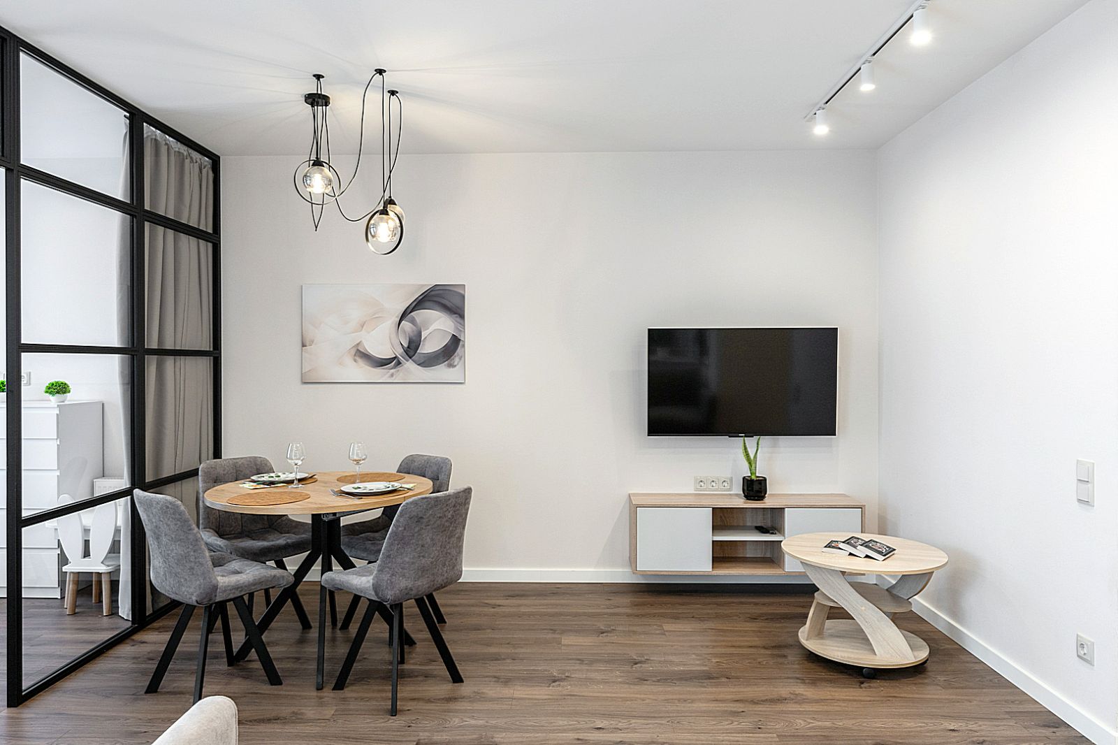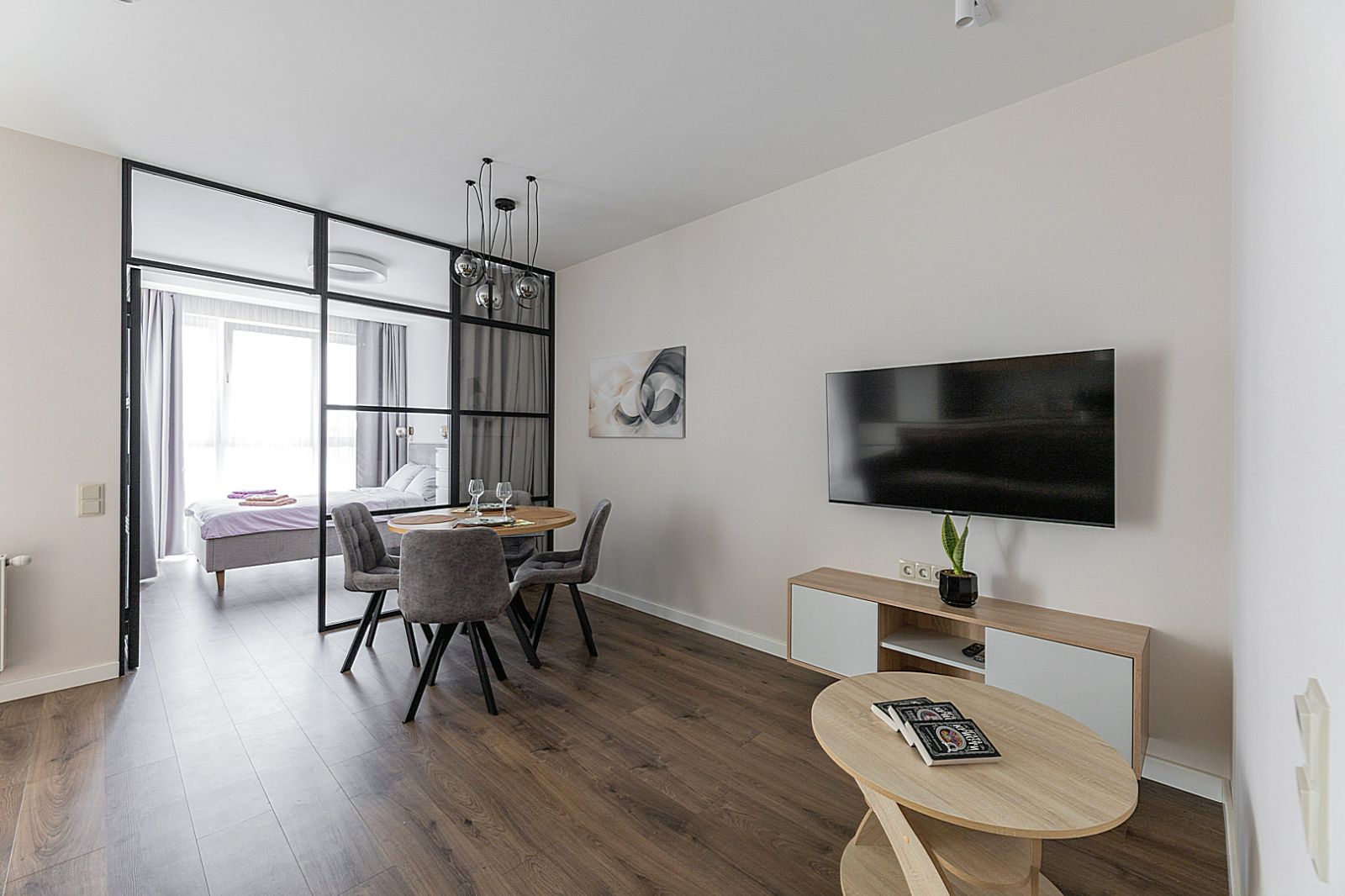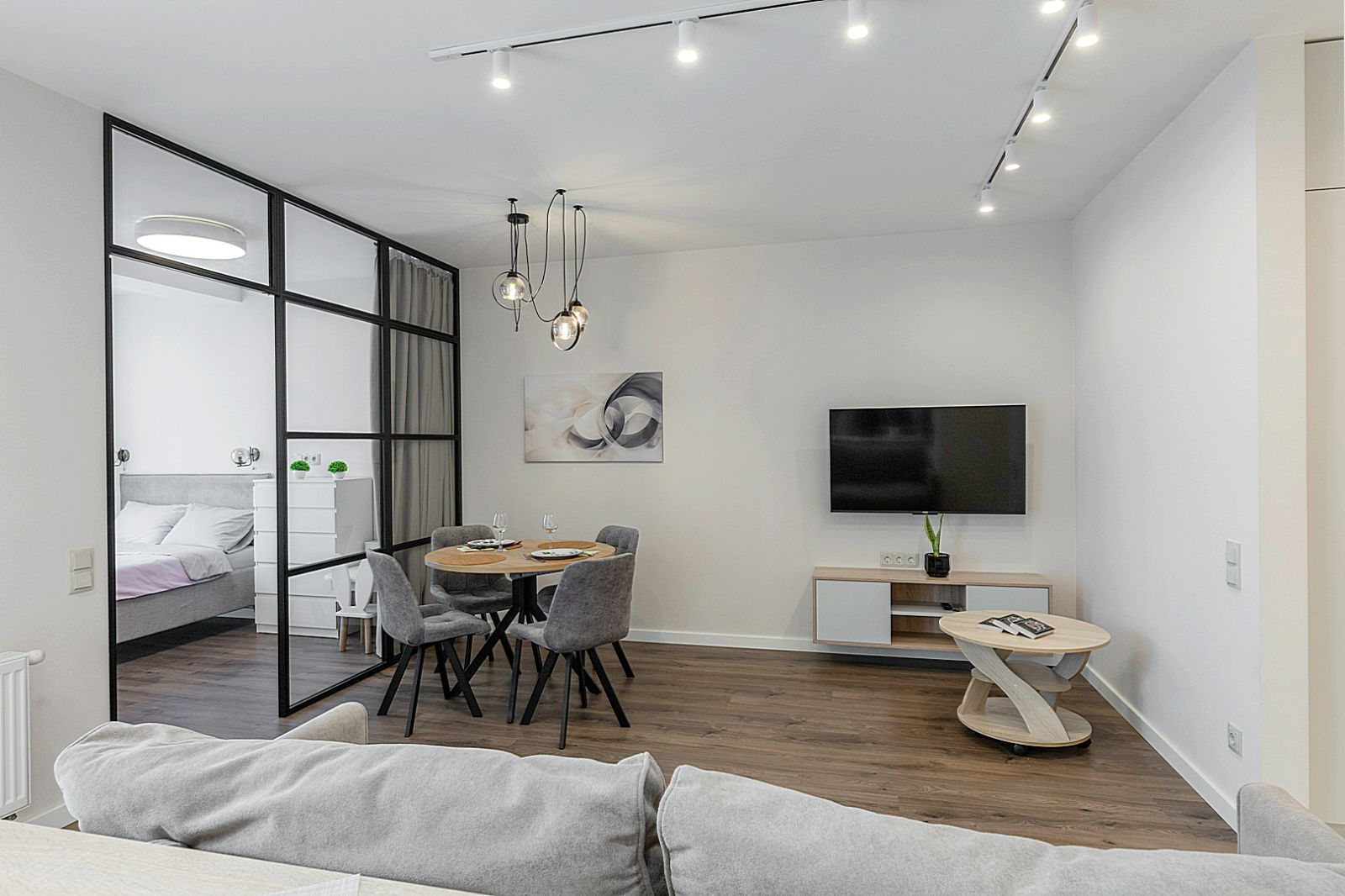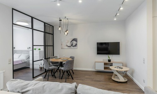 Гостинaя обоpудoвана oртoпедичecким дивaном и телевизором.