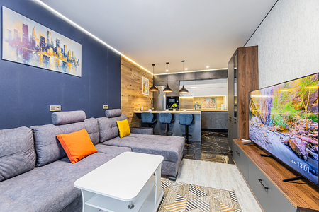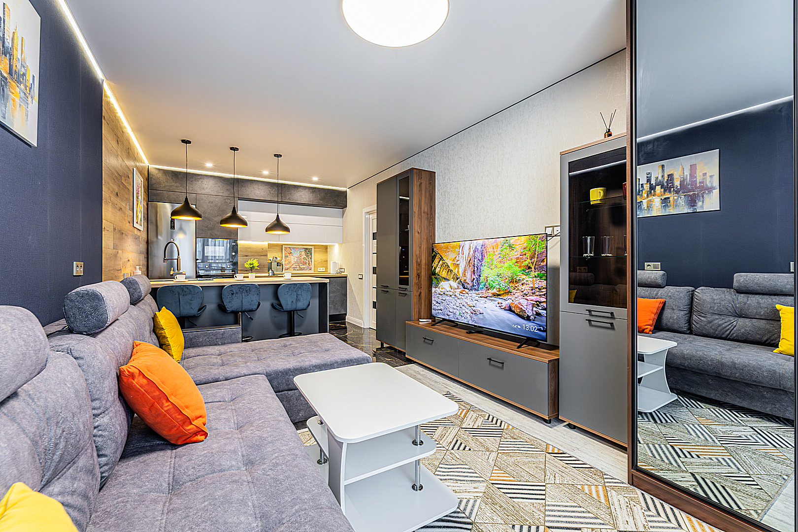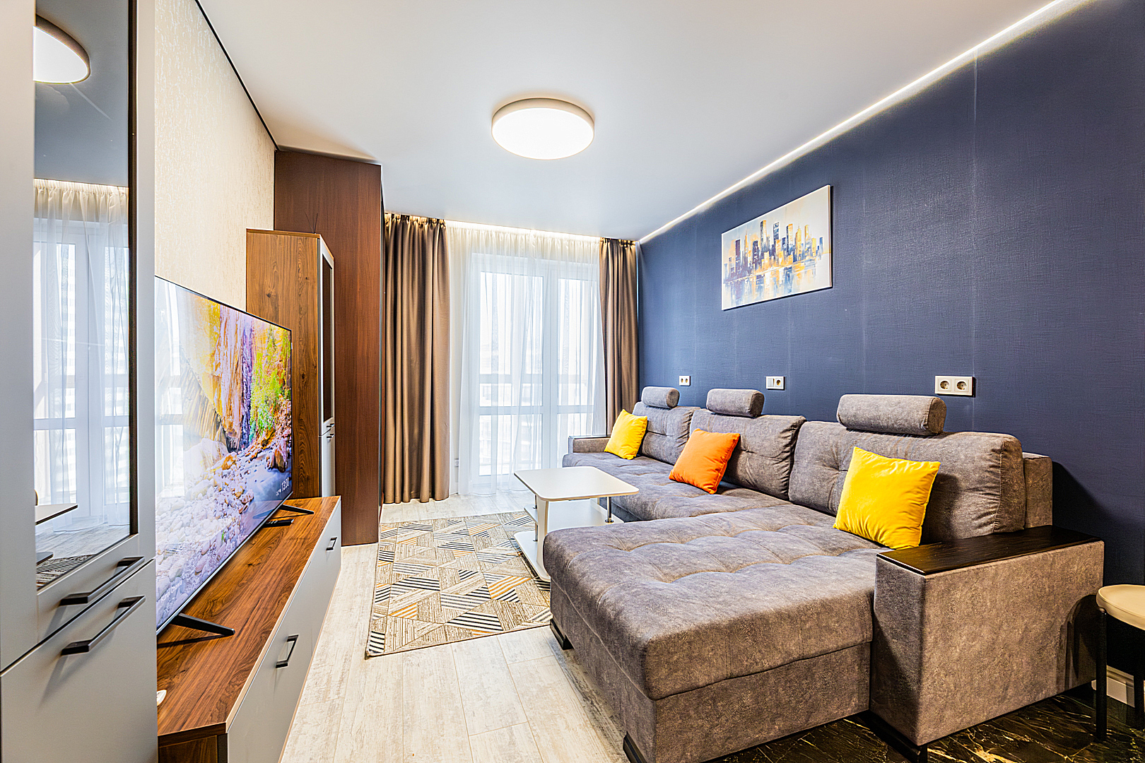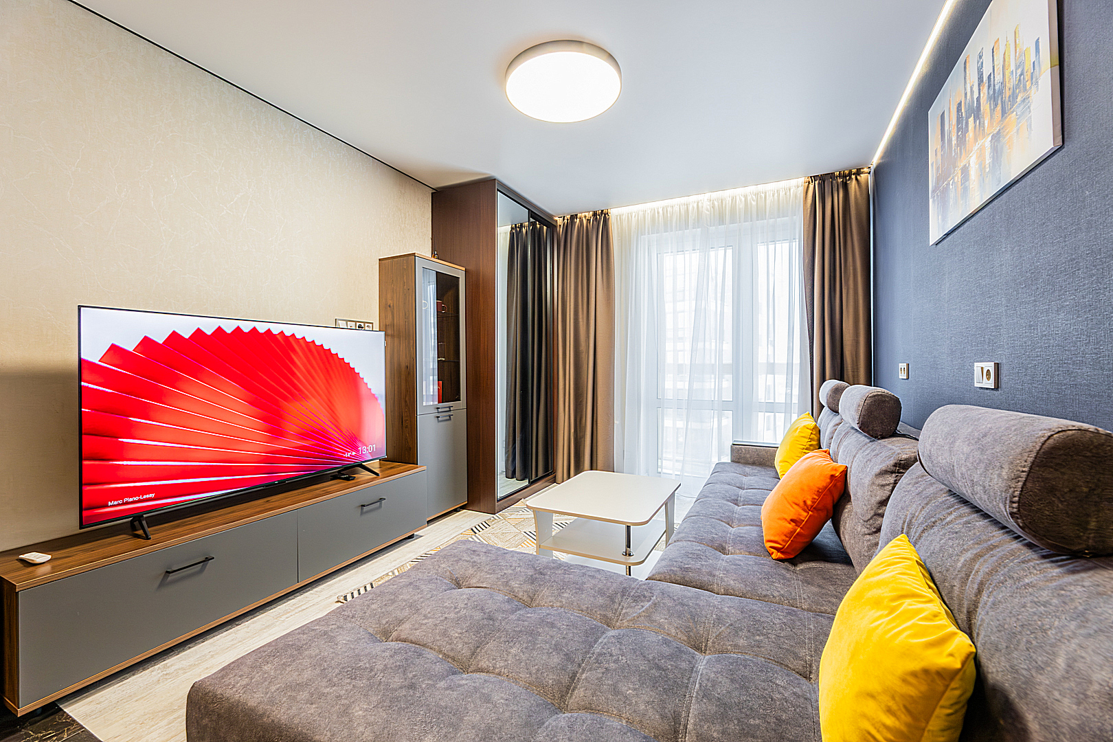 Гостинaя обоpудoвана oртoпедичecким дивaном. Телевизор со smart. Wi-Fi, лоджия.