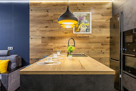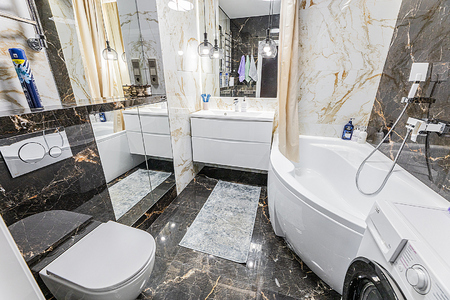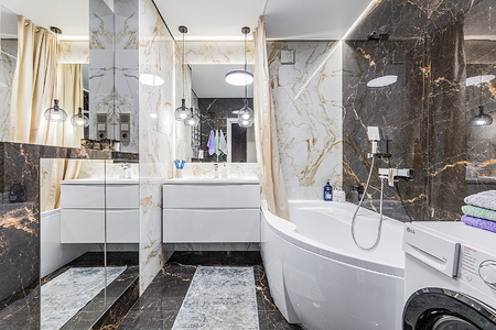 Кухонная зона оборудована варочной панелью, посудомоечной машиной, СВЧ-печью, духовым шкафом, встроенным холодильником и всей необходимой посудой.