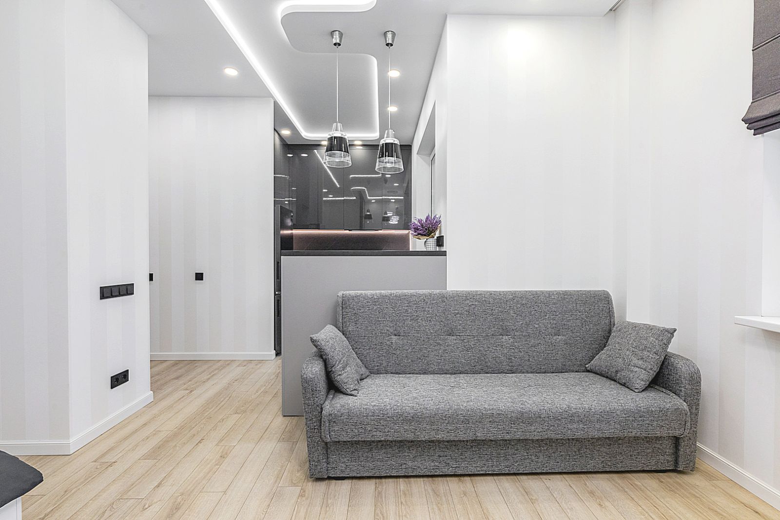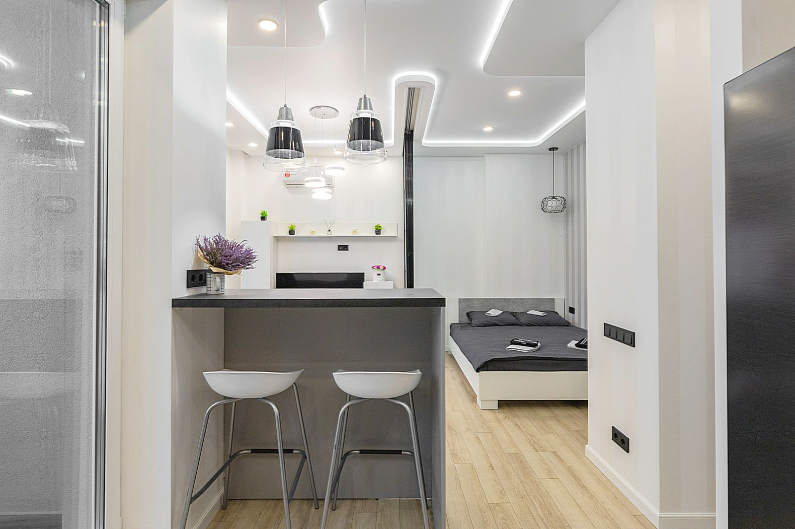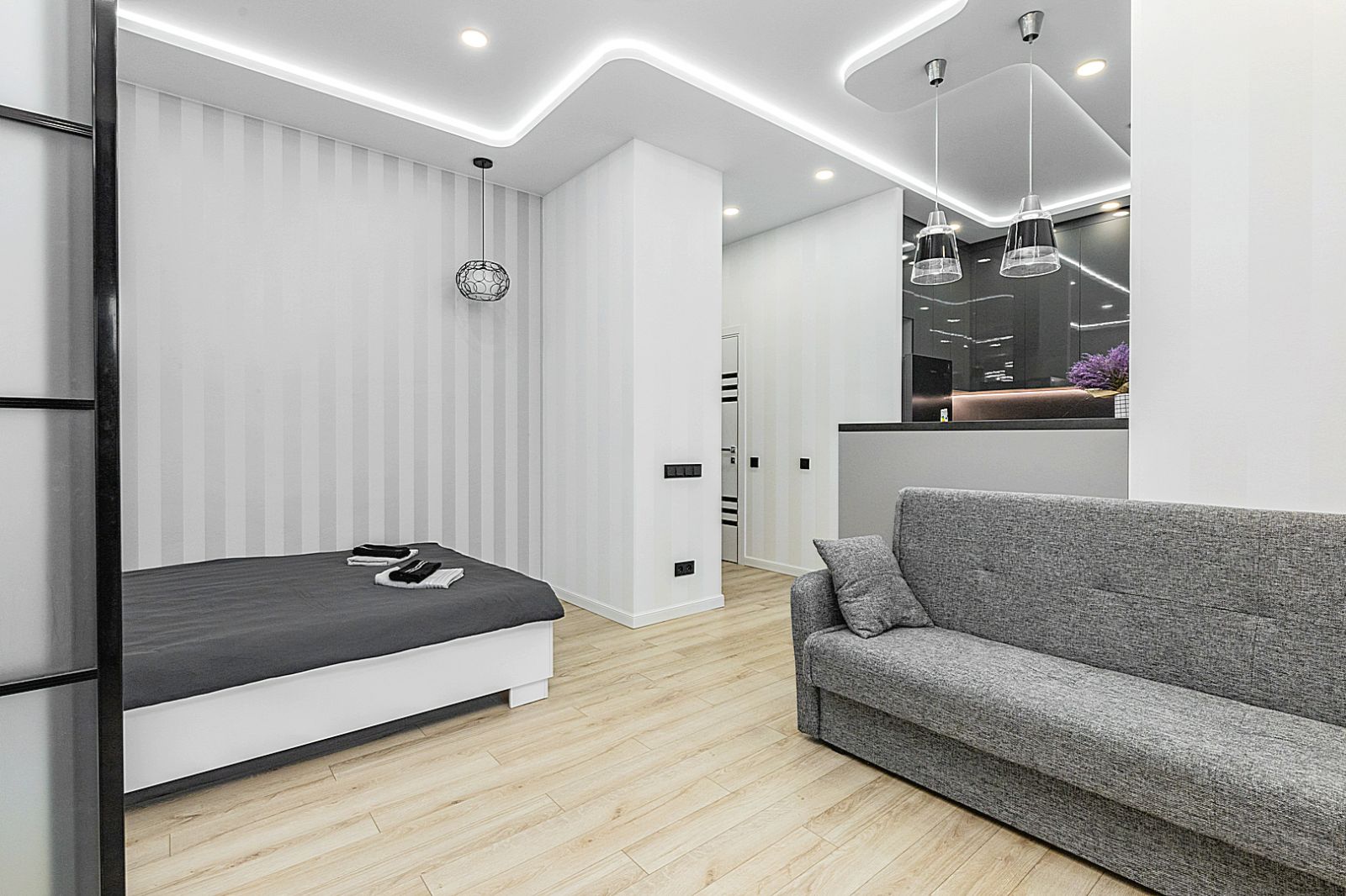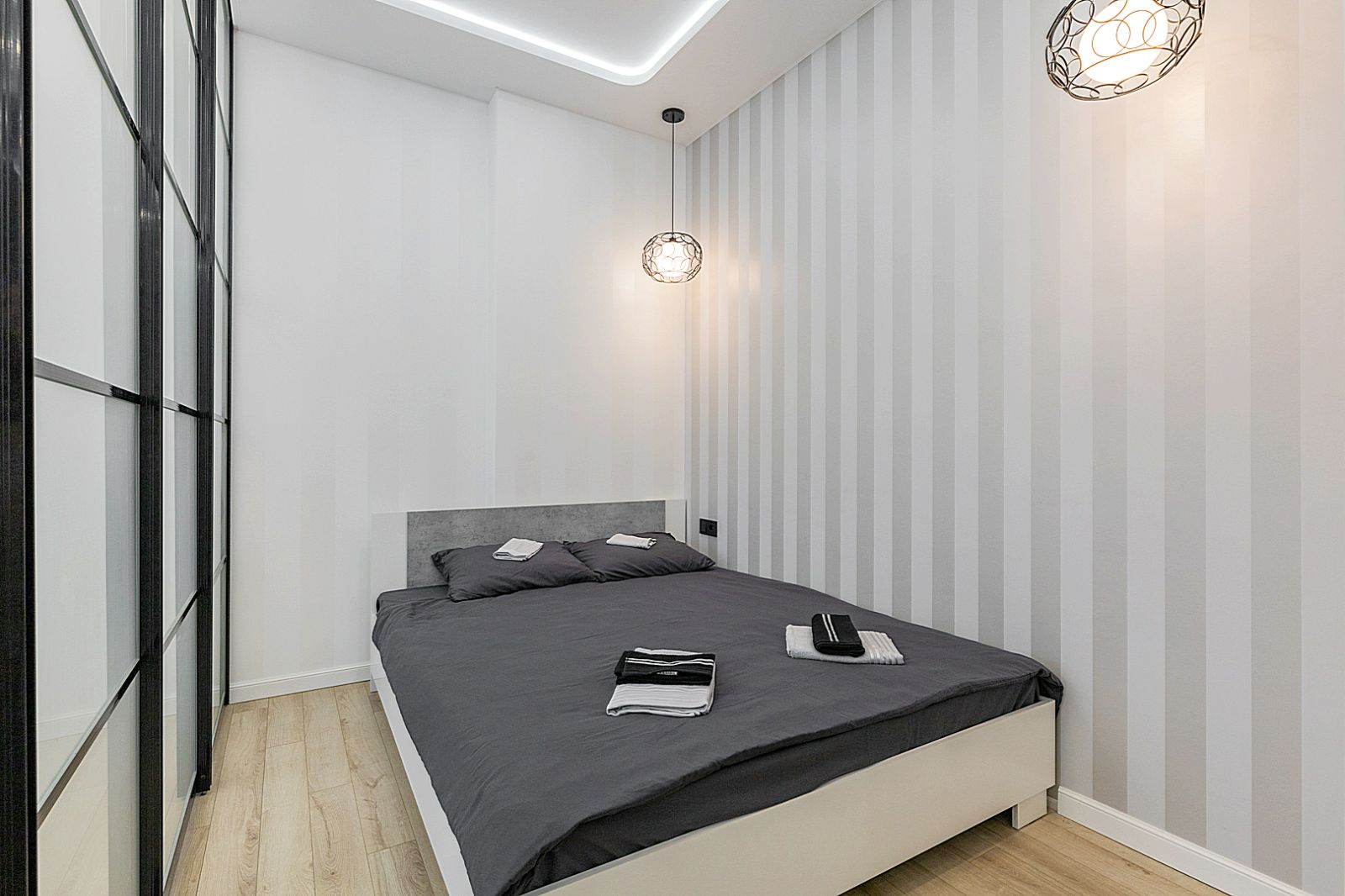 Гостинaя обоpудoвана двуспальной кроватью, дивaном, ЖК -Смарт телевизором, кондиционером.