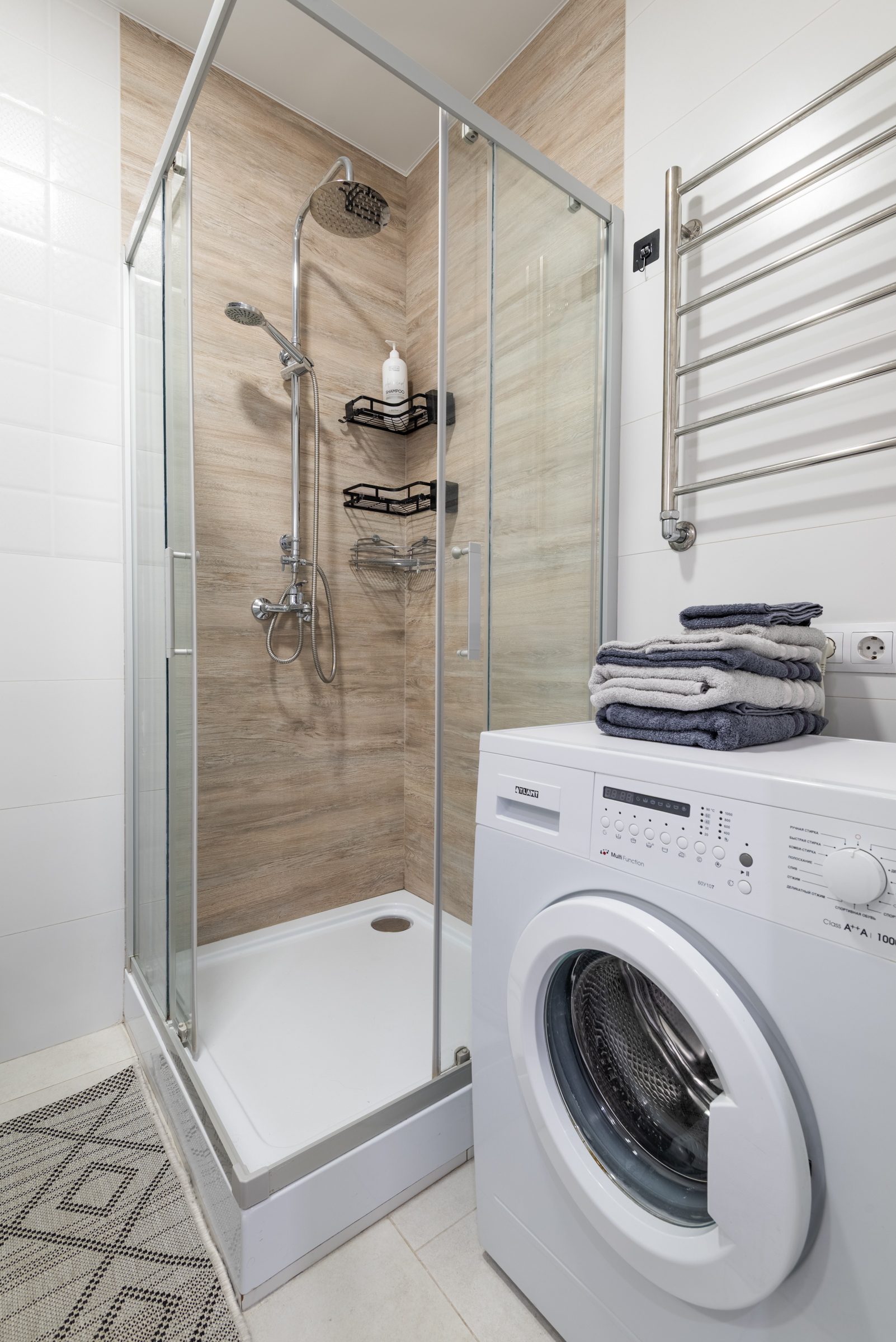 -Стиральная машина, утюг, гладильная доска, сушилка.