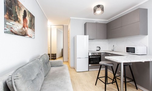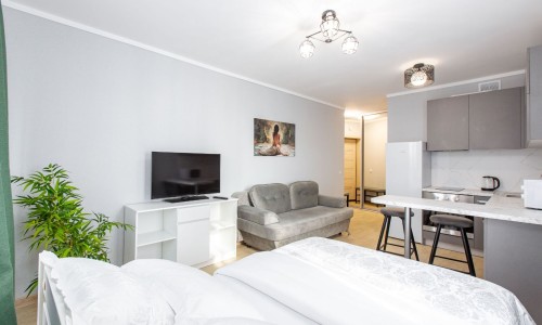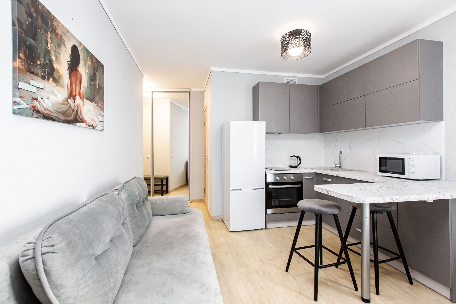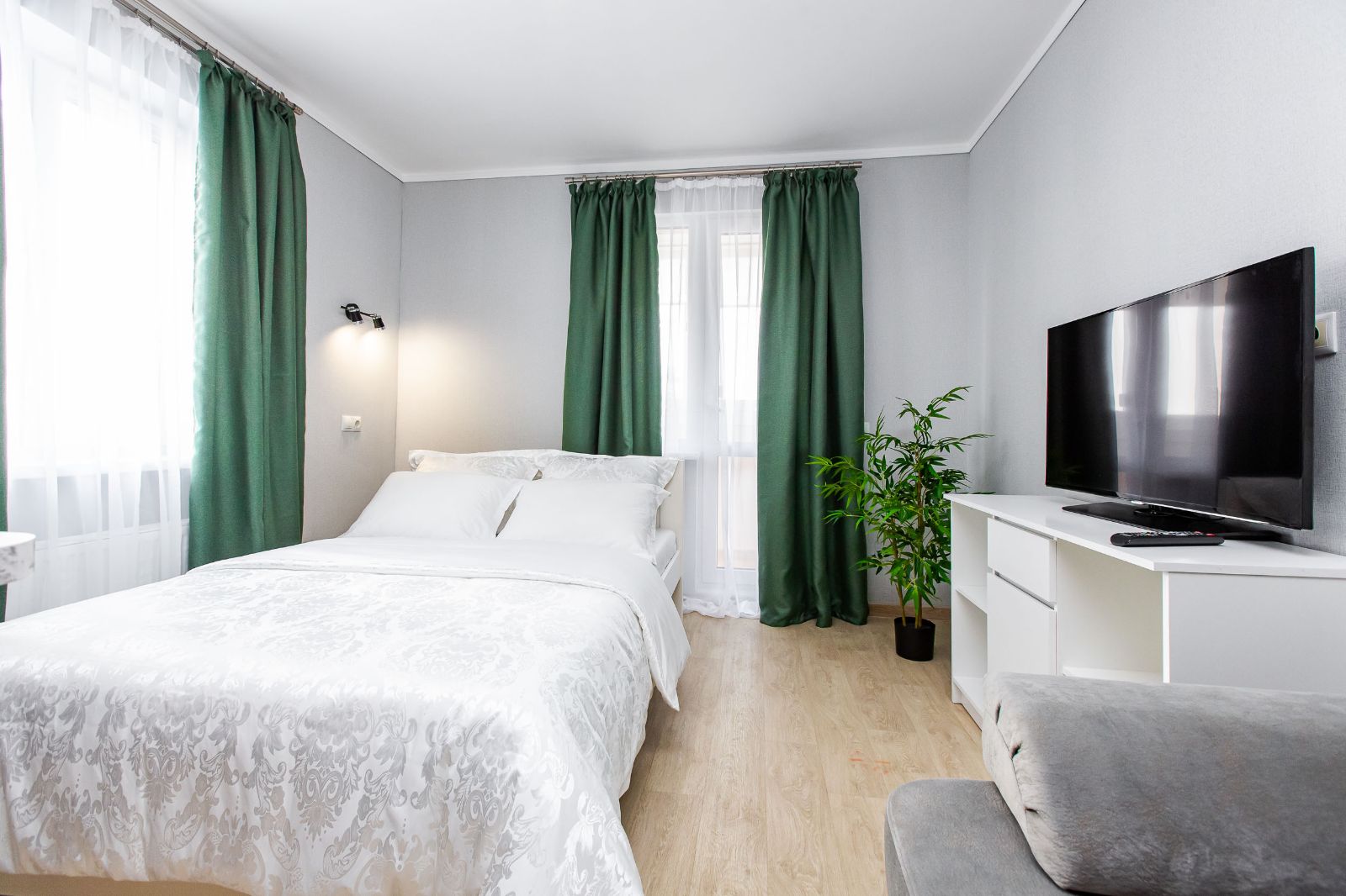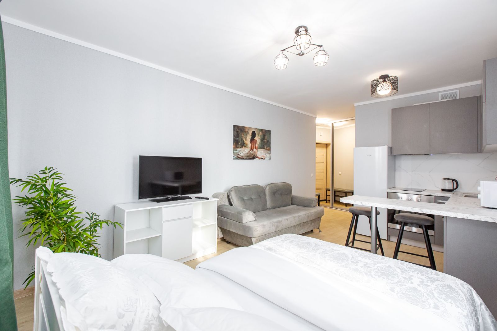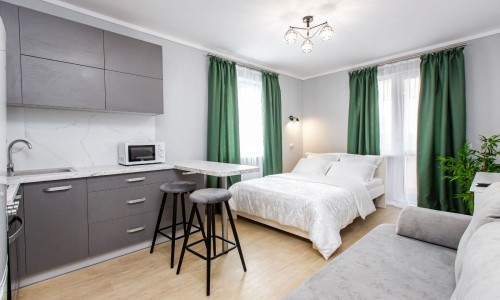 Уютная квартира-студия по адресу Грушевская, 21, расположенную на 14 этаже современного и нового дома. Это идеальное место для комфортного проживания в центре города. В вашем распоряжении большая двуспальная кровать, которая обеспечит вам крепкий сон и отдых, а также удобный диван для расслабления после насыщенного дня.