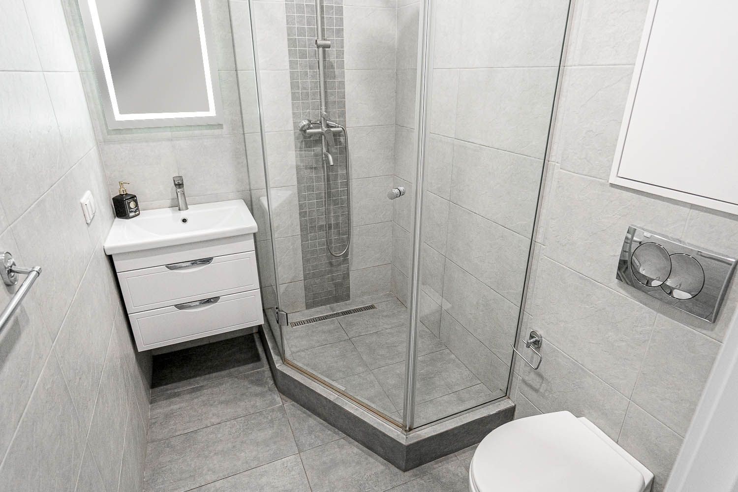 Особое внимание стоит уделить стильной ванной комнате, где есть все, что нужно для для комфортного расслабления! Каждый элемент интерьера был выбран с вкусом, чтобы сделать ваше пребывание максимально приятным.