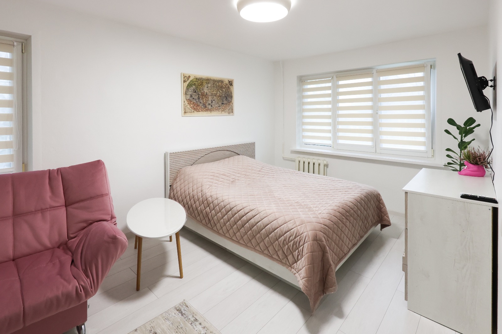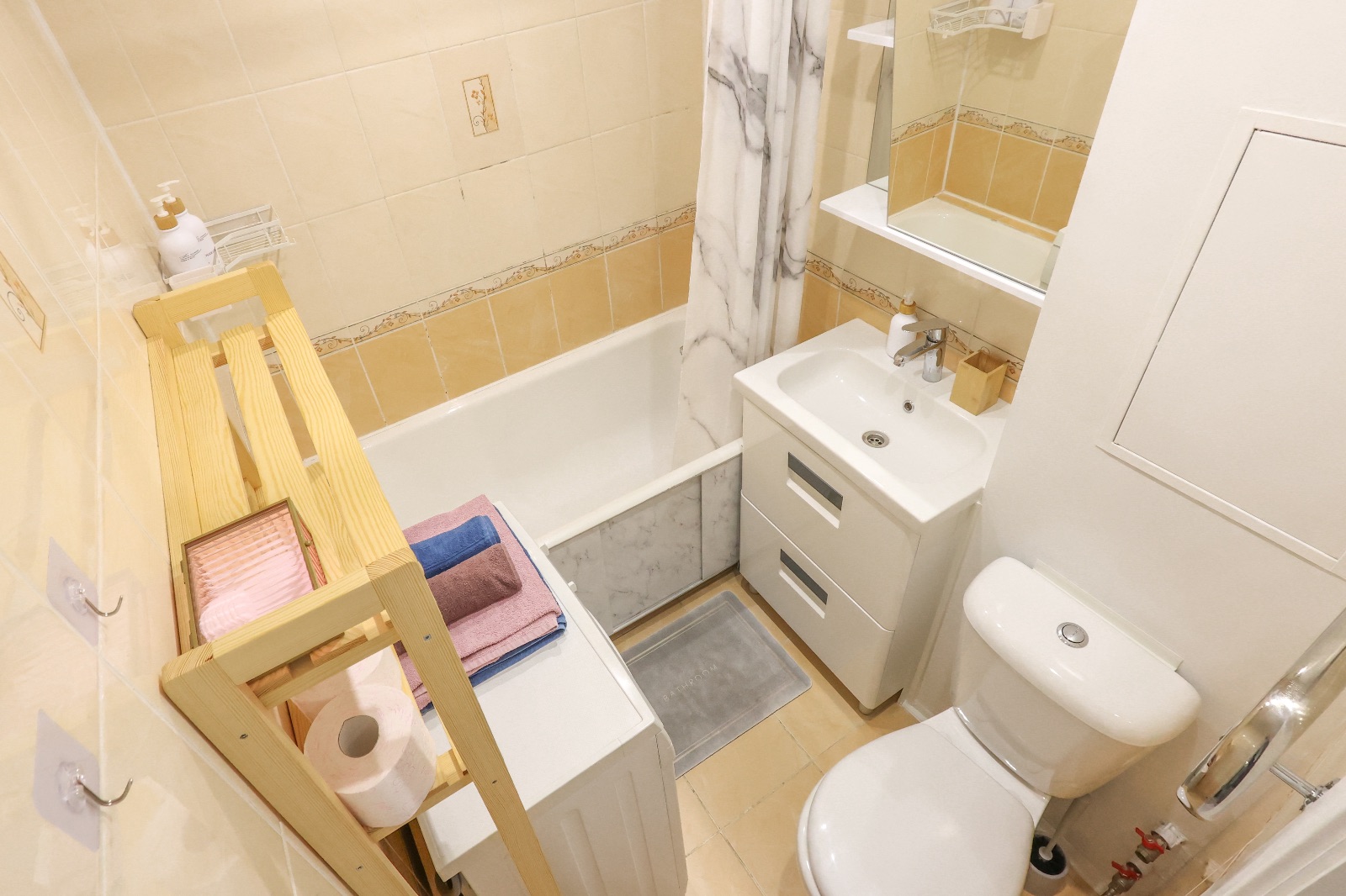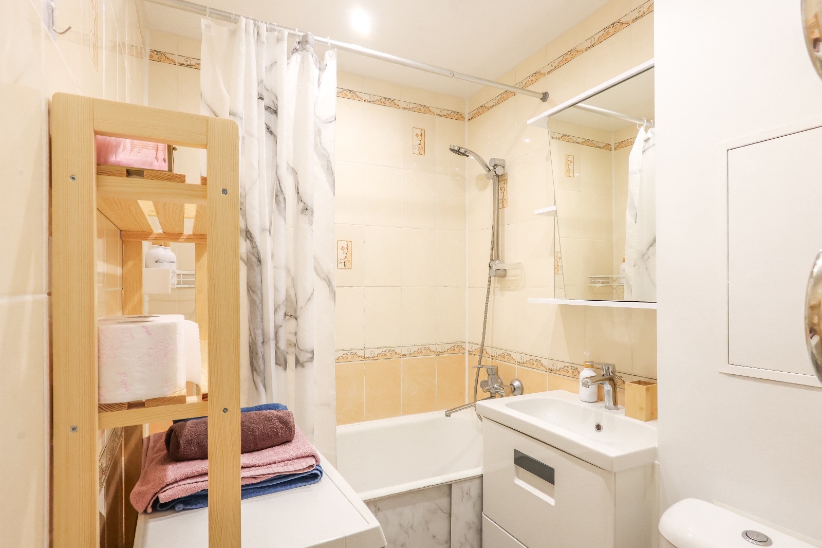 В квартире 2-х спальная кровать с ортопедическим матрасом,диван,телевизор,холодильник ,СВЧ, чай,кофе,стиральная машина,фен,гель для душа,отпариватель,сушилка для одежды,Wi-Fi.