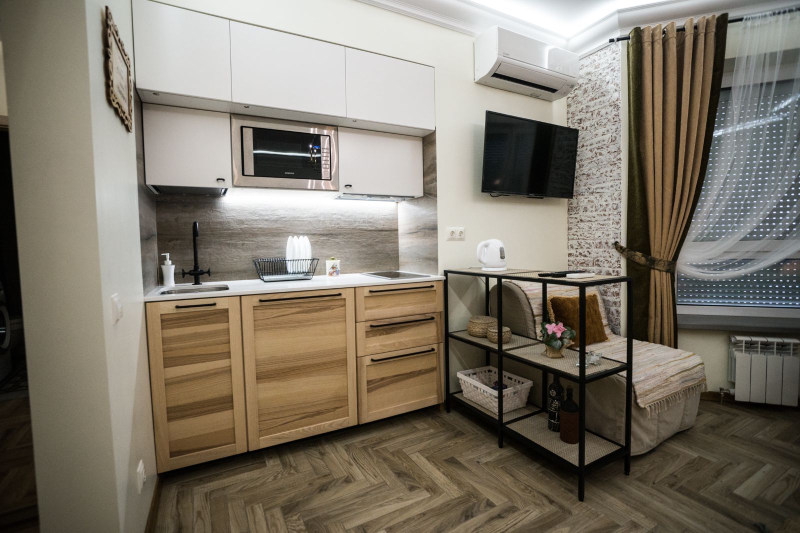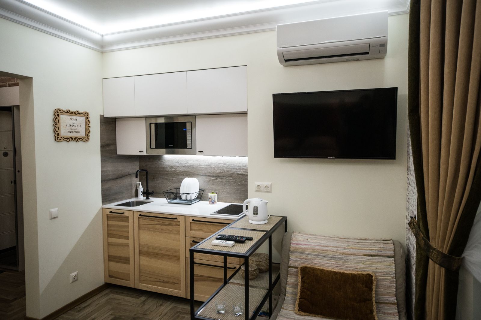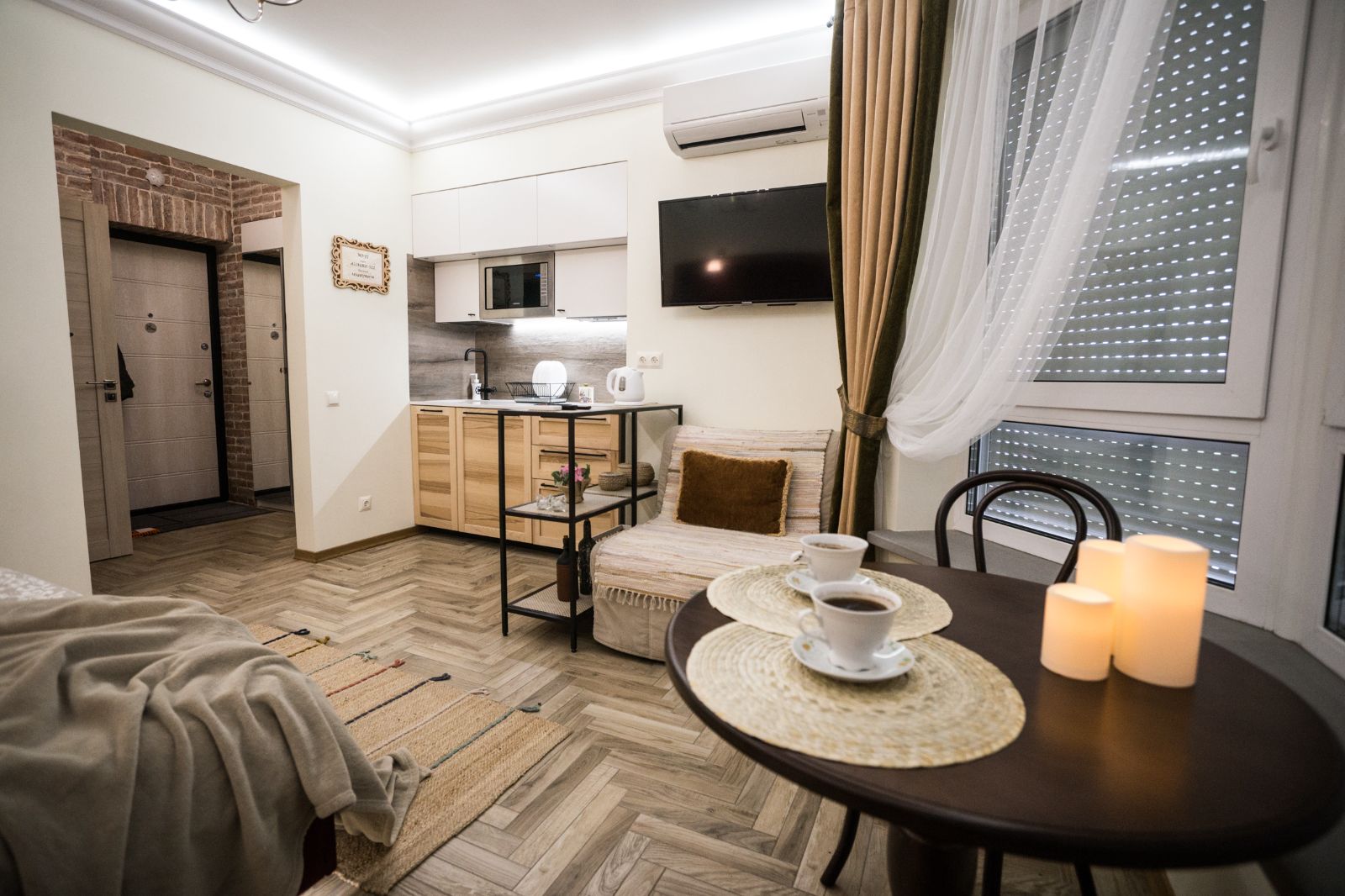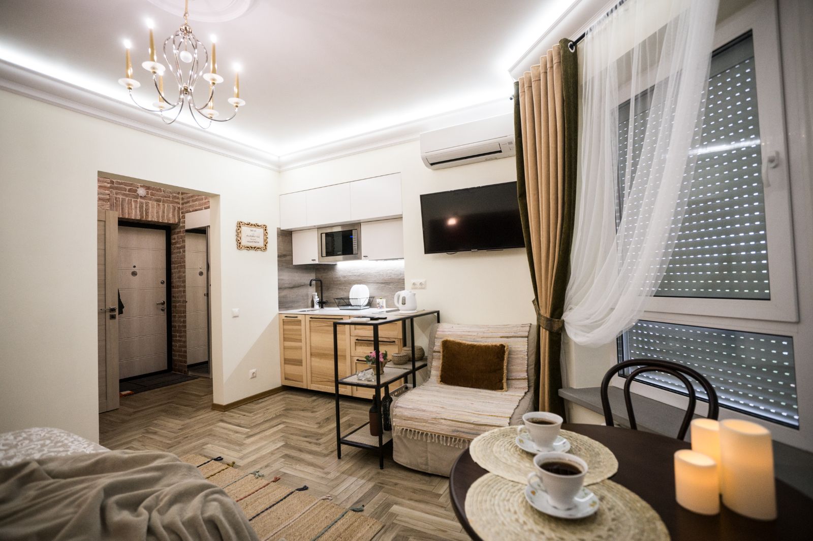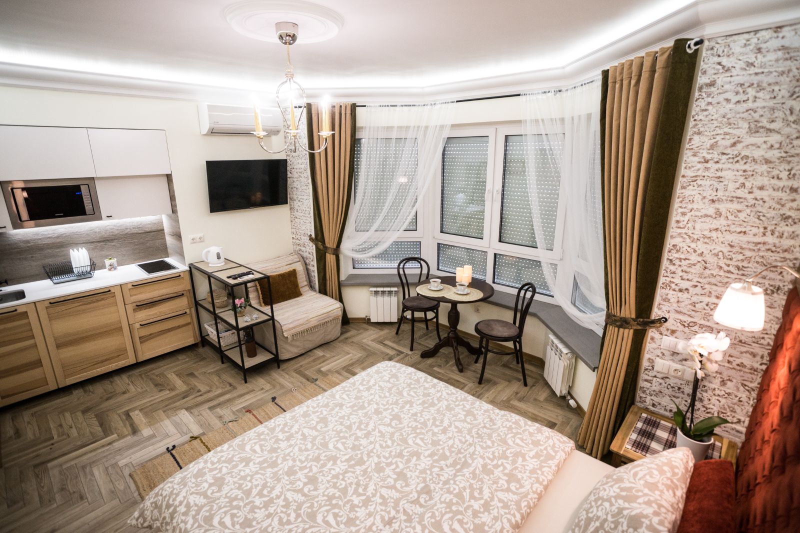 Мы создаем интерьеры с любовью и позаботились о максимальном комфорте для ВАС: продуманный дизайн, мебель натурального дерева, экологические материалы, электрические ставни на окнах (затемнение до 100%), кондиционер, смарт ТВ, тропический душ, просторная душевая и туалетная комната оборудована сантехникой премиум класса, кухня полностью укомплектована. Мы осуществляем профессиональную уборку перед каждым заселением. Чистое выглаженное бельё и пушистые полотенца.