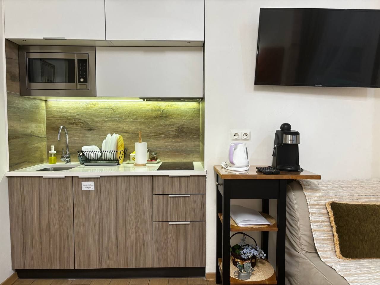 Мы создаем интерьеры с любовью и позаботились о максимальном комфорте для ВАС: продуманный дизайн, мебель натурального дерева, экологические материалы, электрические ставни на окнах (затемнение до 100%), кондиционер, смарт ТВ, тропический душ, просторная душевая и туалетная комната оборудована сантехникой премиум класса, кухня полностью укомплектована. Мы осуществляем профессиональную уборку перед каждым заселением. Чистое выглаженное бельё и пушистые полотенца.