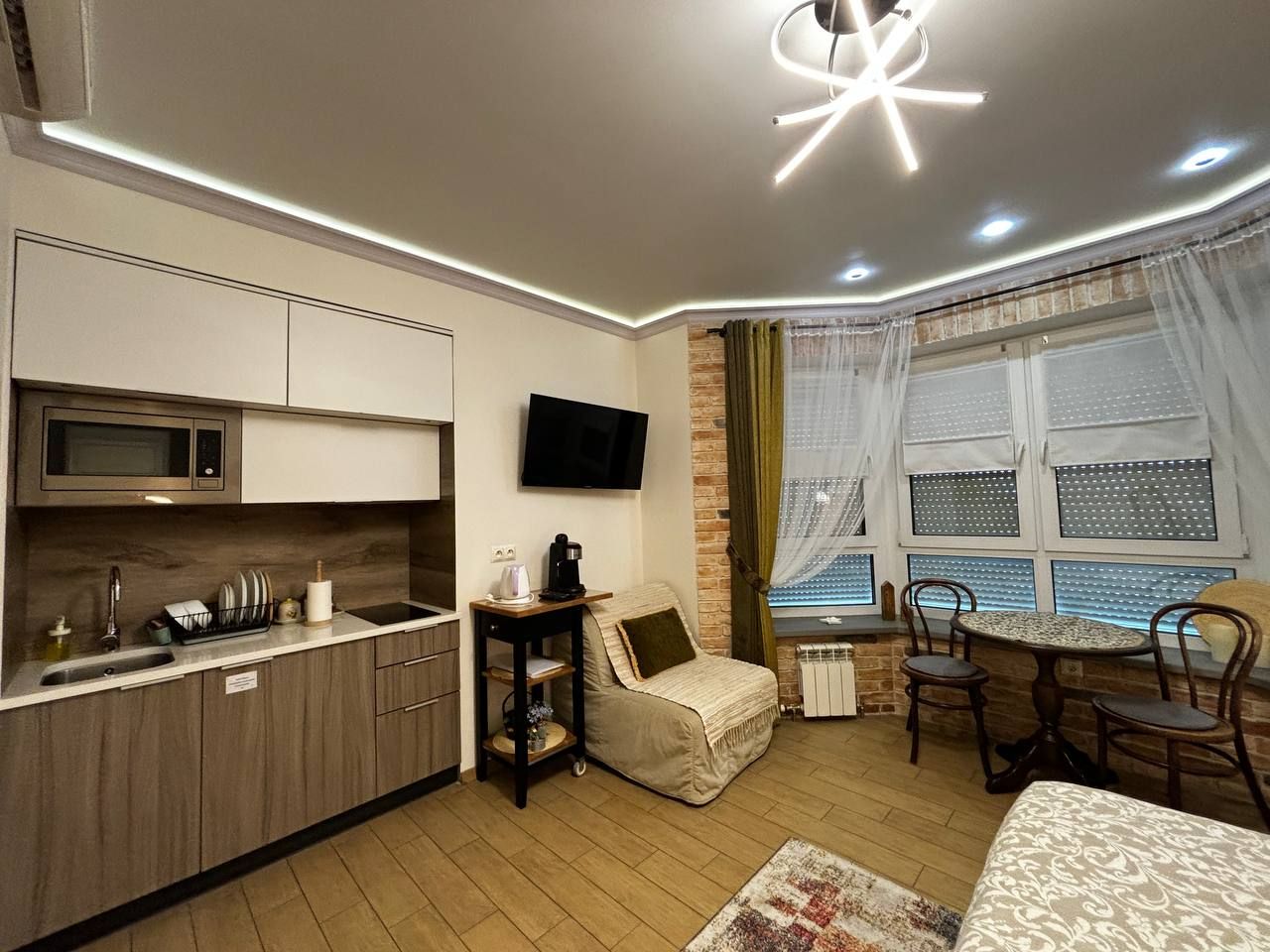 Студии рассчитаны для романтических встреч и путешествующих. Отлично для фотосессий. Квартира сдается на часы и сутки. Обратите пожалуйста внимание, для путешествующих двумя, тремя и даже четырьмя парами (можно с детьми), у нас есть аналогичные студии в этом же доме.