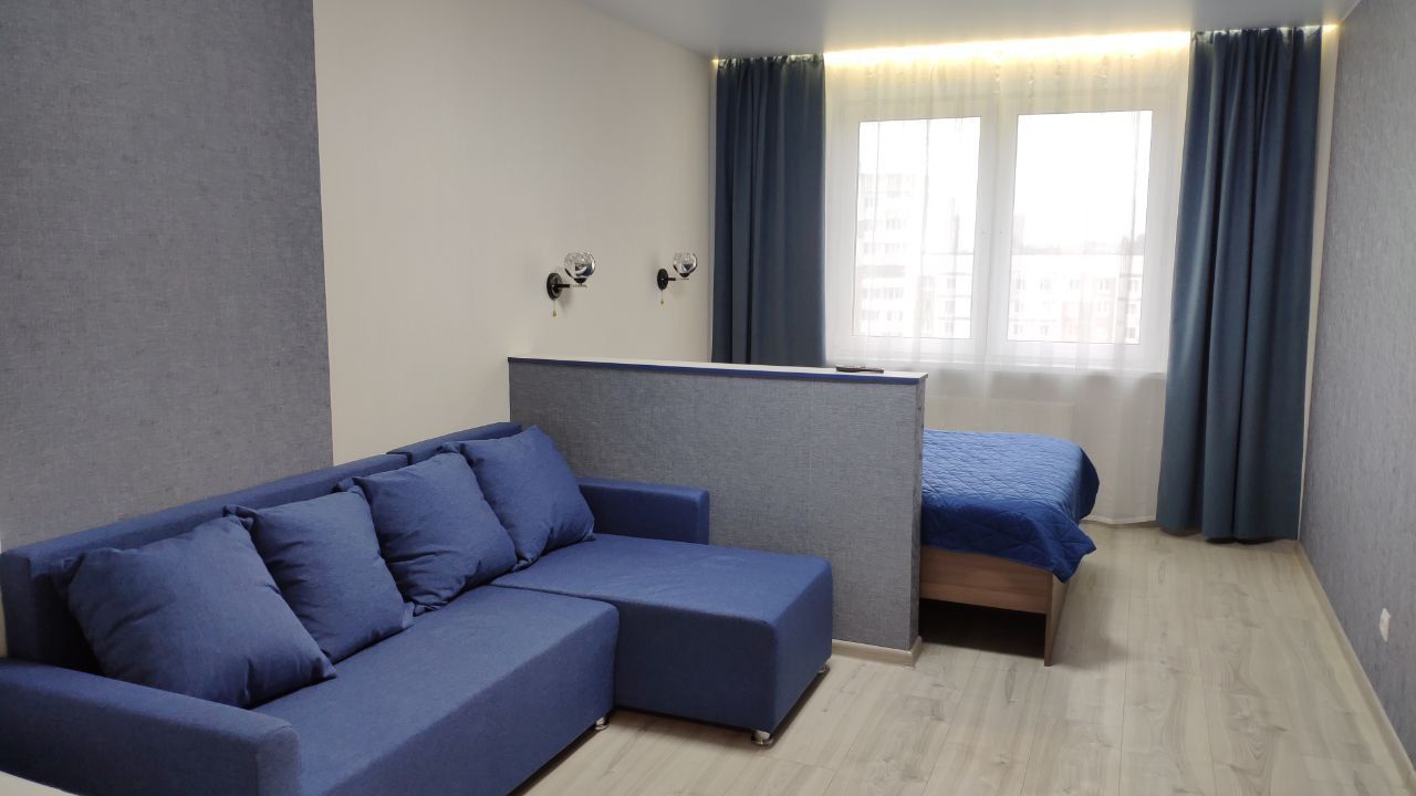 Квартира укомплектована необходимой мебелью и техникой. В комнате двуспальная кровать с прикроватной тумбой и удобным матрасом, уже застеленная к вашему приезду; угловой диван, при необходимости являющийся спальным местом для двоих; телевизор, письменный и журнальный столики, окно со шторами блэк-аут. Кухня оснащена обеденным столом, стульями, необходимой посудой, холодильником, микроволновой печью, варочной панелью, духовым шкафом, электрочайником. В ванной комнате есть предметы личной гигиены: полотенце для рук, большие полотенца по количеству гостей, полотенце для ног, мыло, гель для душа, шампунь, а также фен, стиральная машина и сушилка для белья. В прихожей есть большой шкаф с платиновым отделом и отдел с полками, утюг, гладильная доска и пылесос. Также в квартире предоставляется бесплатный Wi-Fi.