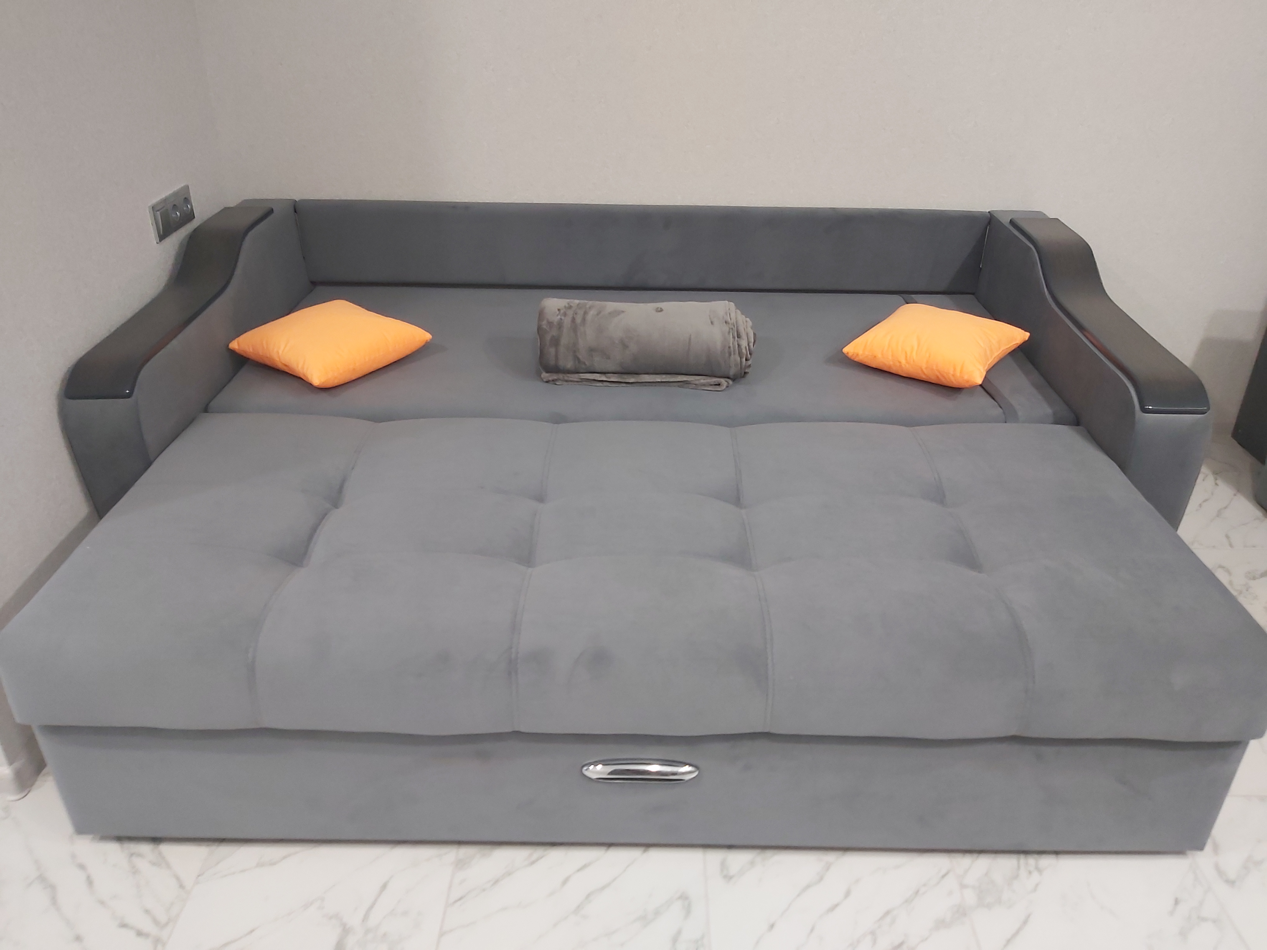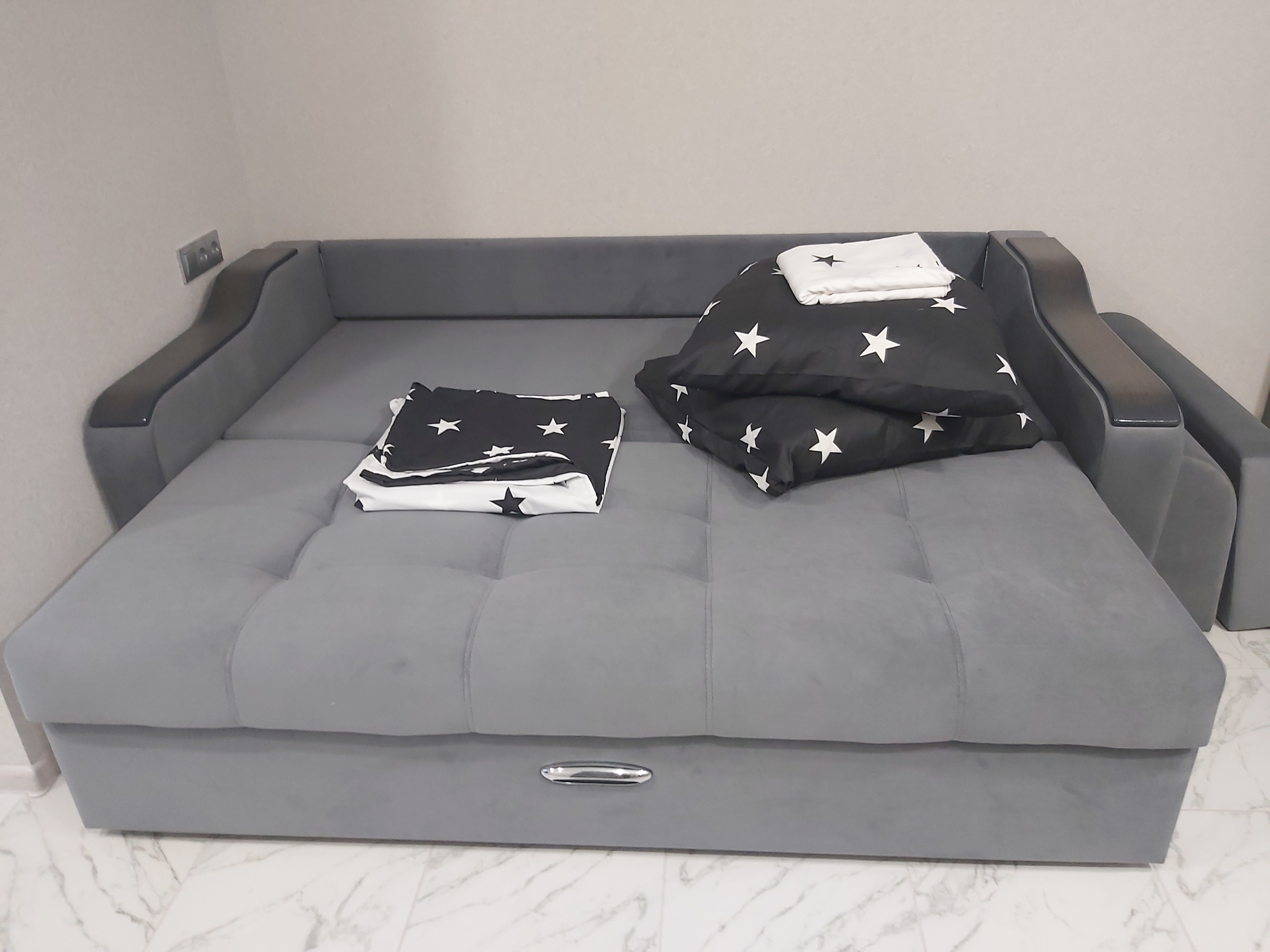 4. Прекрасный новый диван с чистым постельным бельем для крепкого сна;