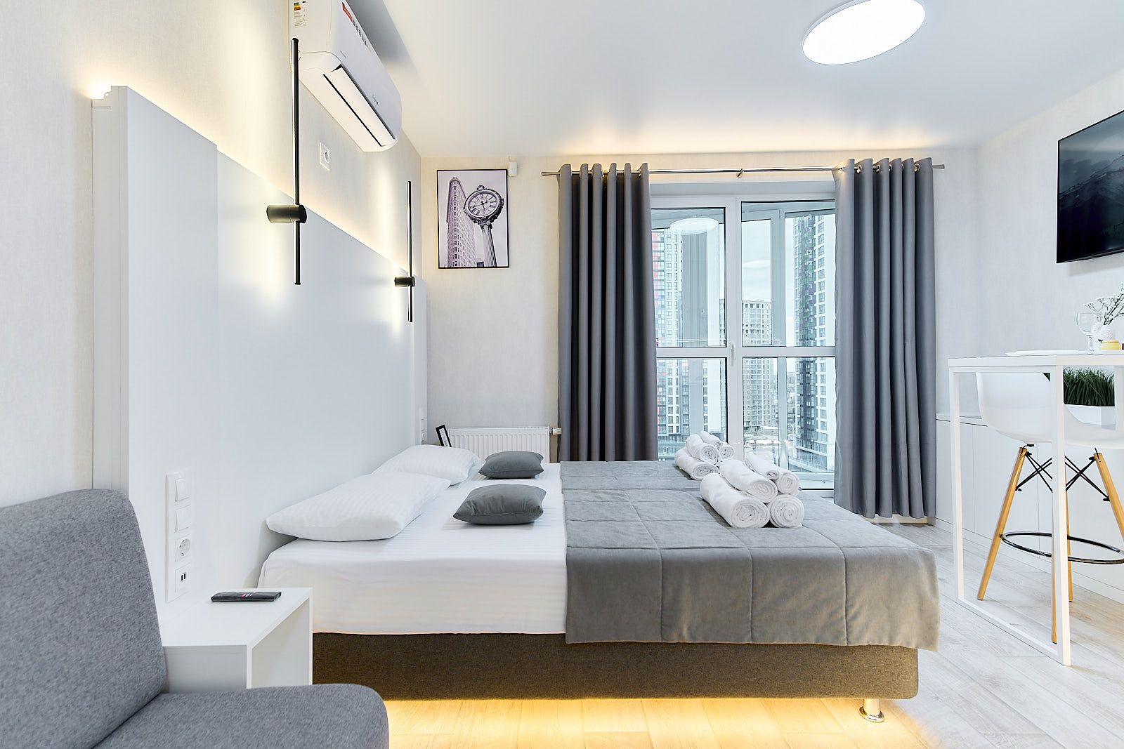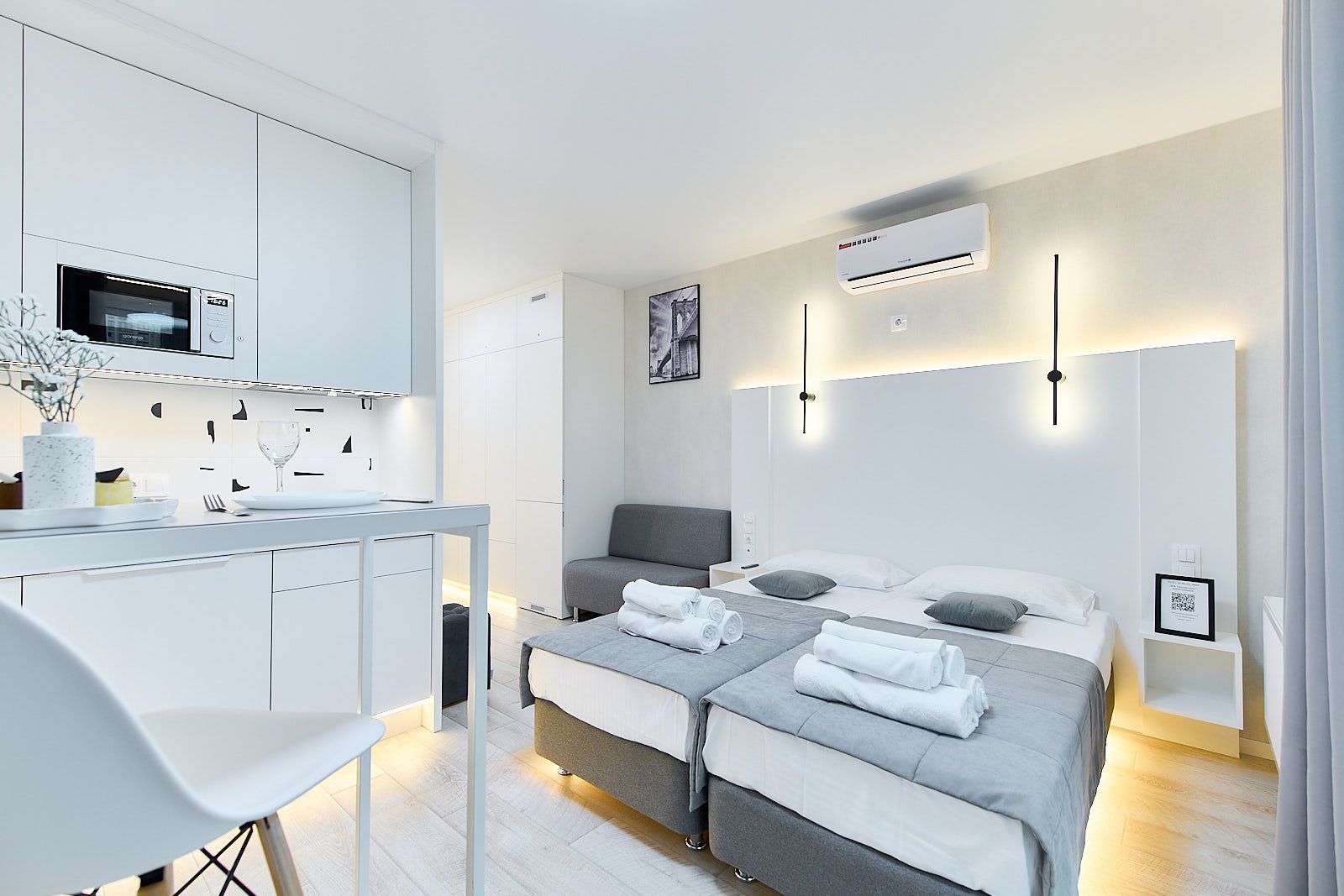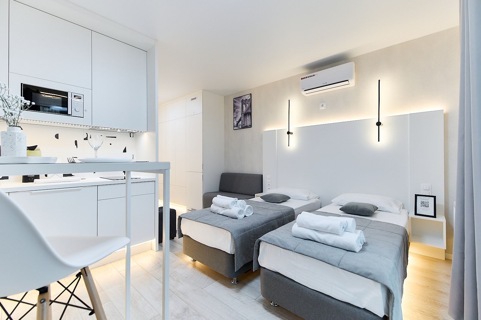Вы сможете всегда пользоваться индивидуальной системой фильтрации воды, кондиционером, который работает как на охлаждение, так и на обогрев, USB и Type-C-розетками для зарядки мобильных устройств и многим другими удобствами. Здесь вы найдете все необходимое для комфортного и приятного проживания.