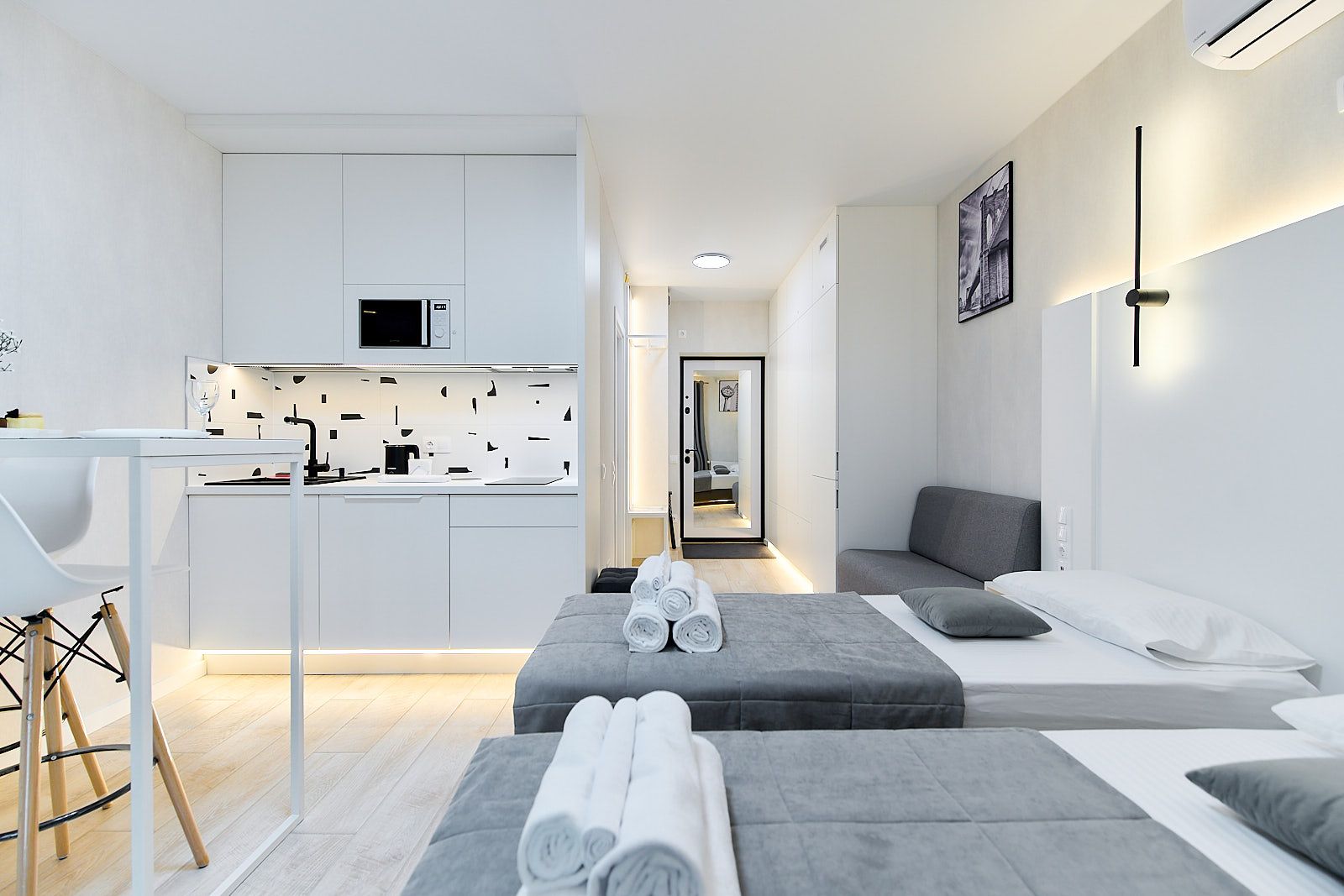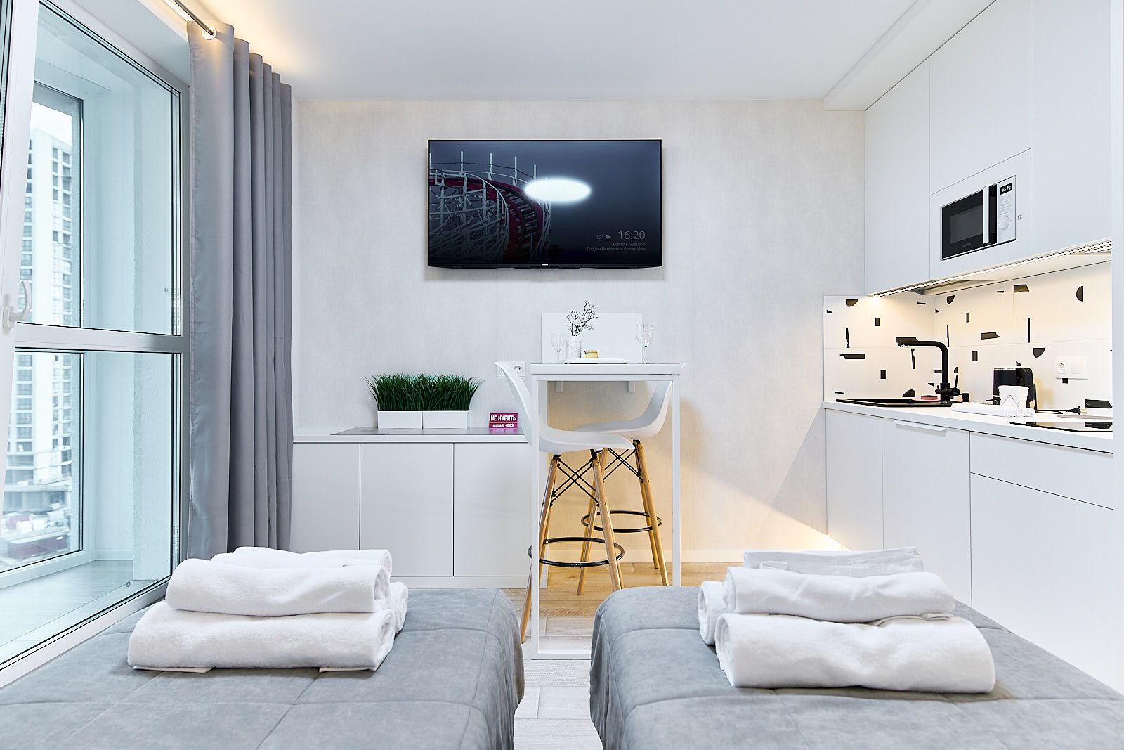 Прекрасная новая студия ждет своих гостей в г. Минске. Квартира расположена в новом доме жилого комплекса Minsk World и отвечает самым высоким стандартам комфорта и безопасности.
