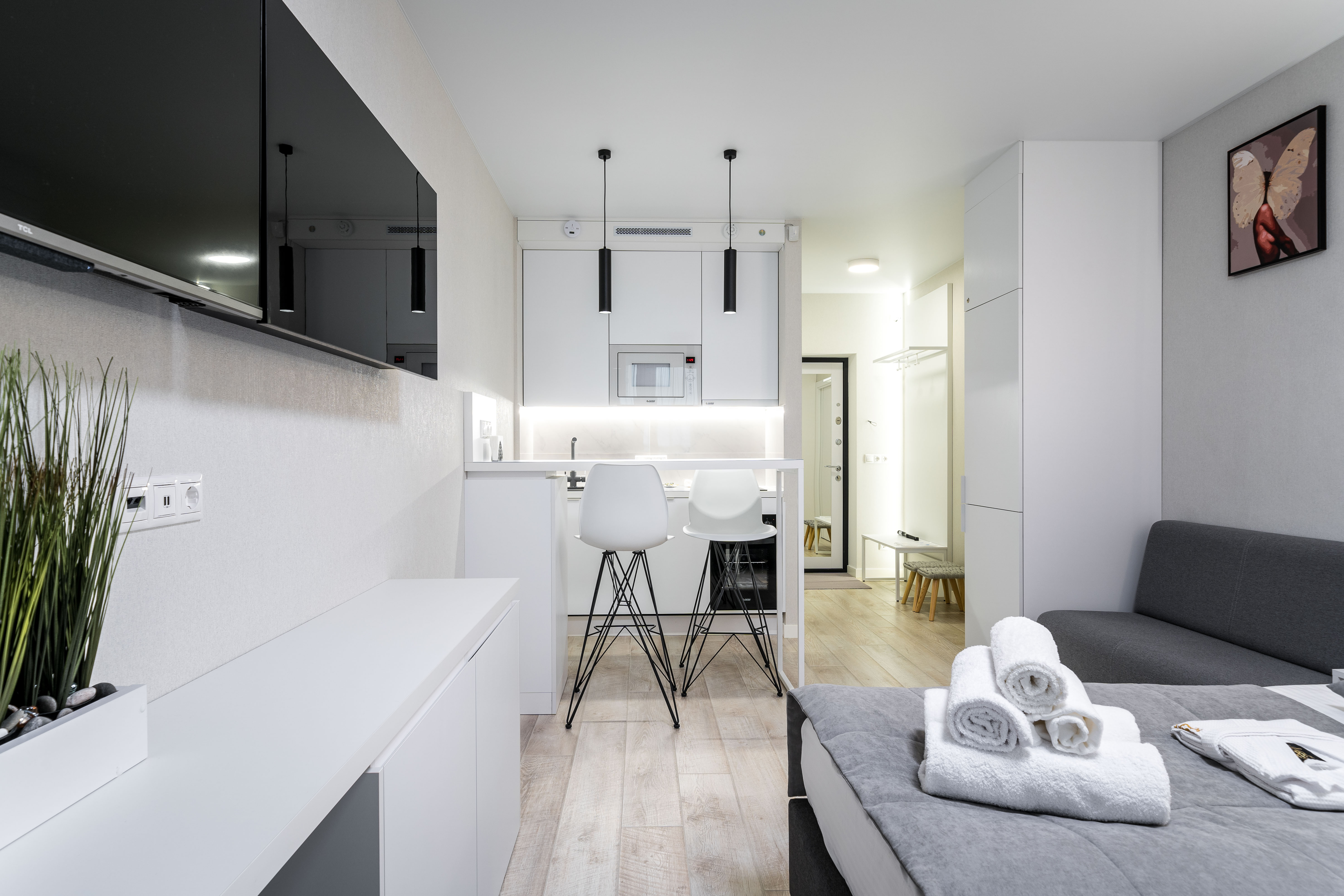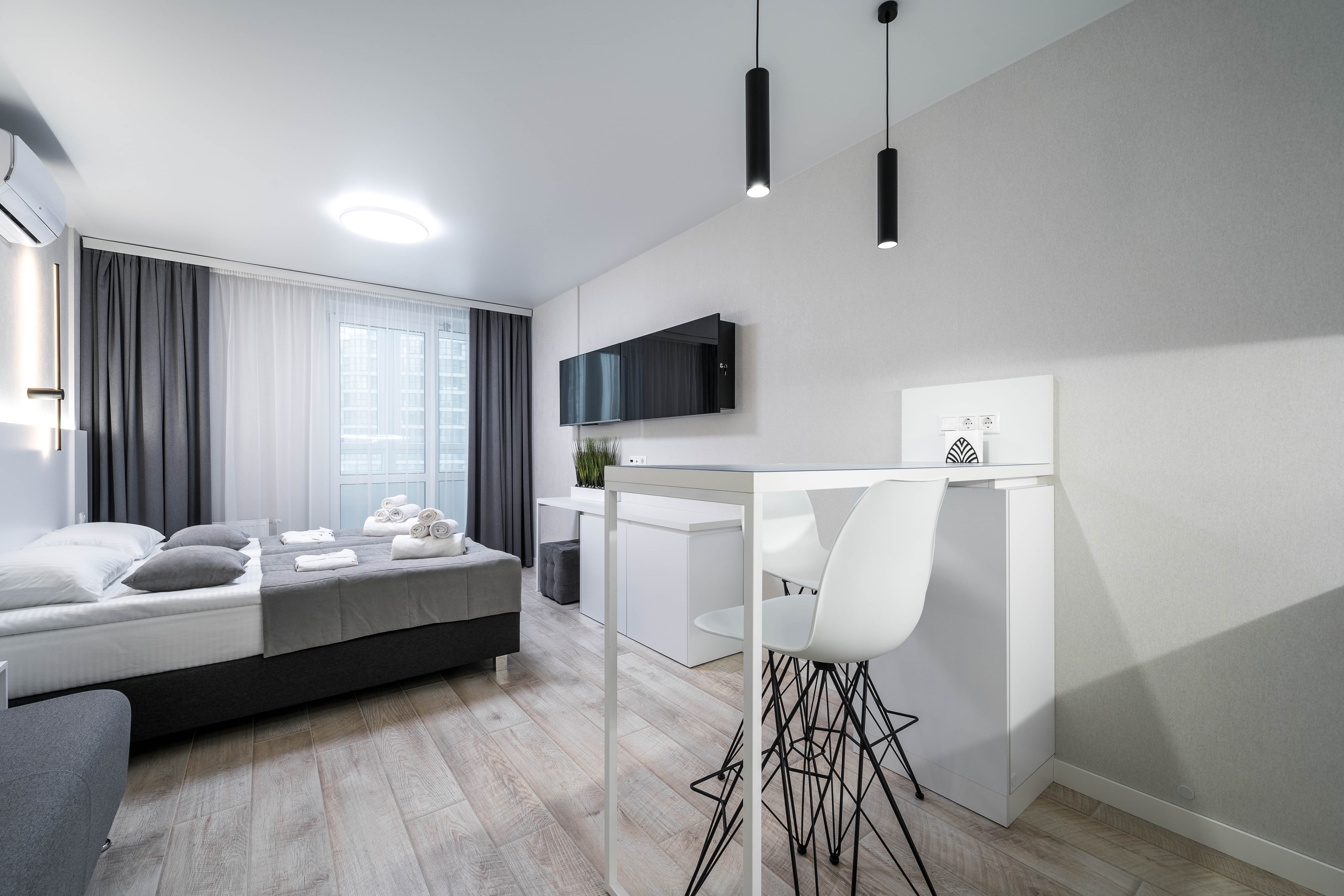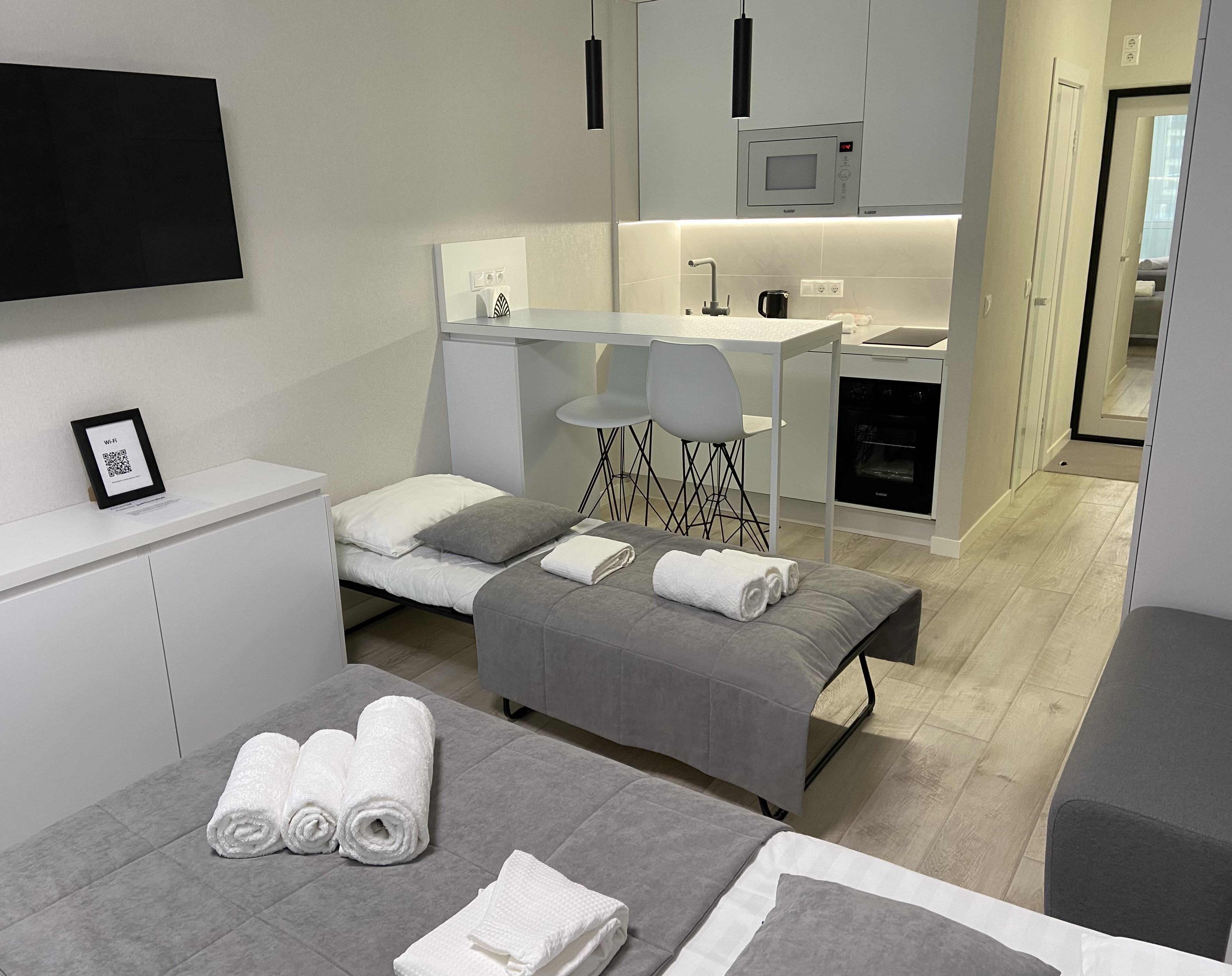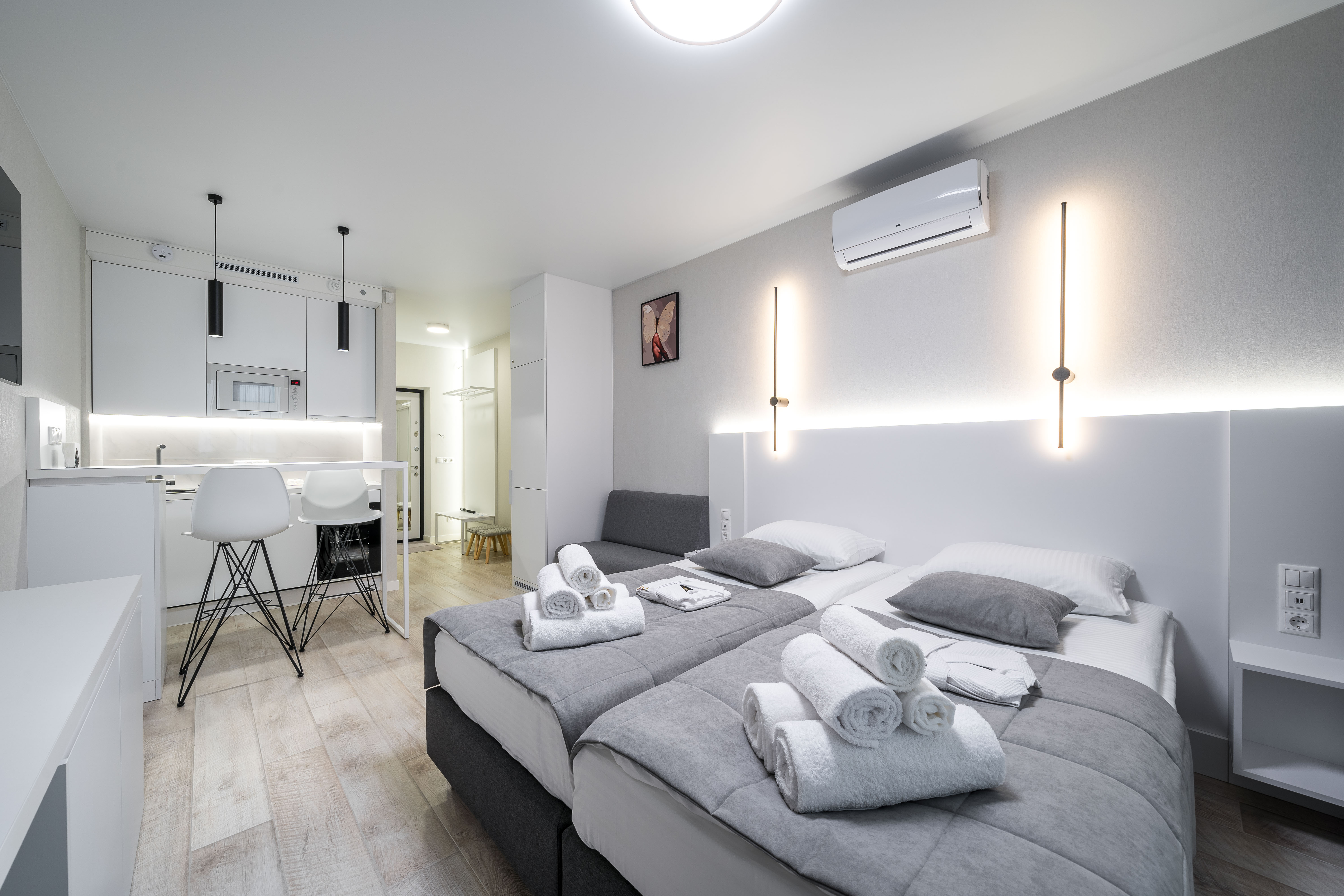 Апартаменты, в которых будет комфортно эстетам. Прекрасная студия ждет своих гостей в г. Минске. Квартира расположена в новом доме жилого комплекса Minsk World и отвечает самым высоким стандартам комфорта и безопасности.