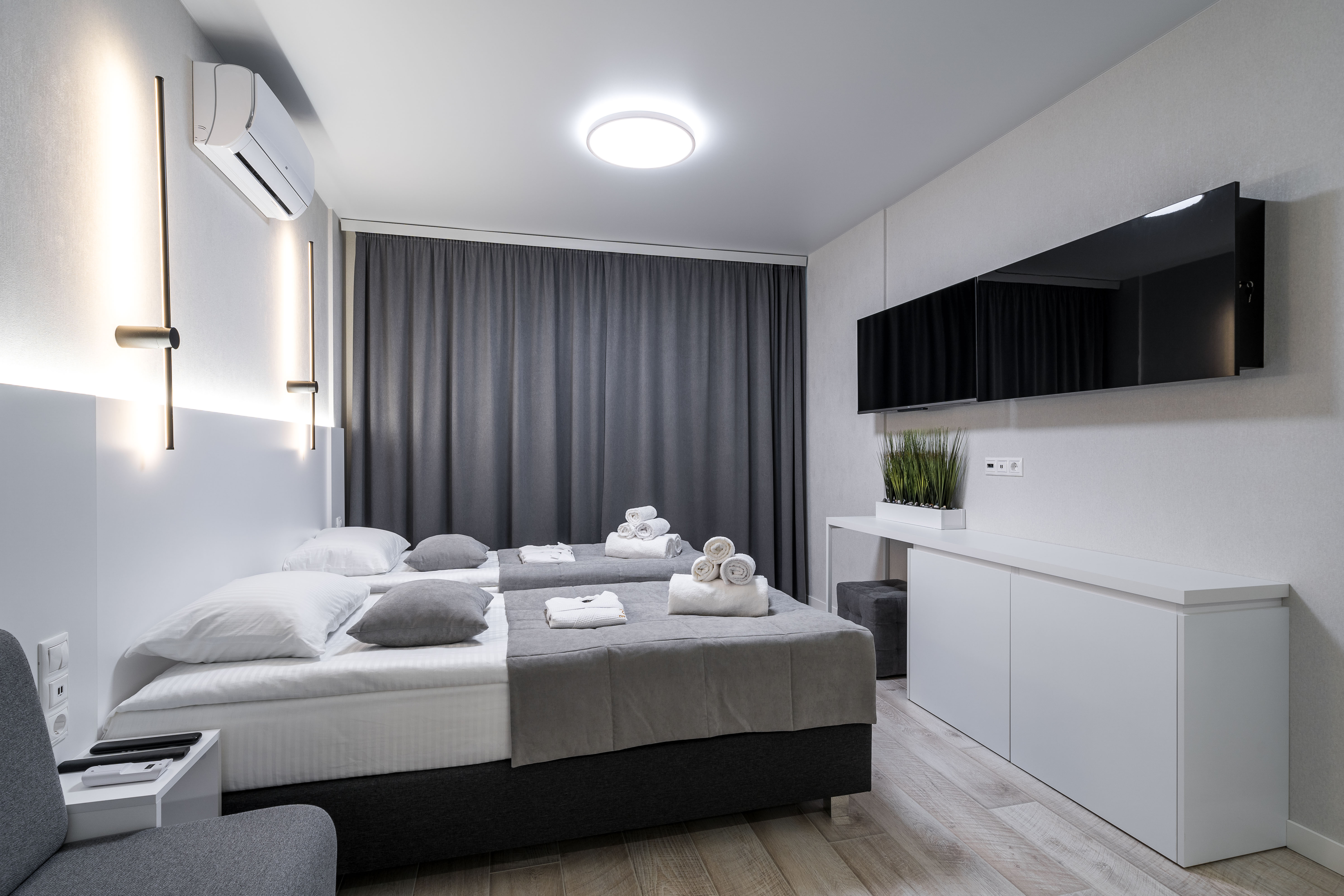 Вы сможете всегда пользоваться индивидуальной системой фильтрации воды, кондиционером, который работает как на охлаждение, так и на обогрев, мини-сейфом, usb-розетками для зарядки мобильных устройств и многим другими удобствами. Здесь вы найдете все необходимое для комфортного и приятного проживания.