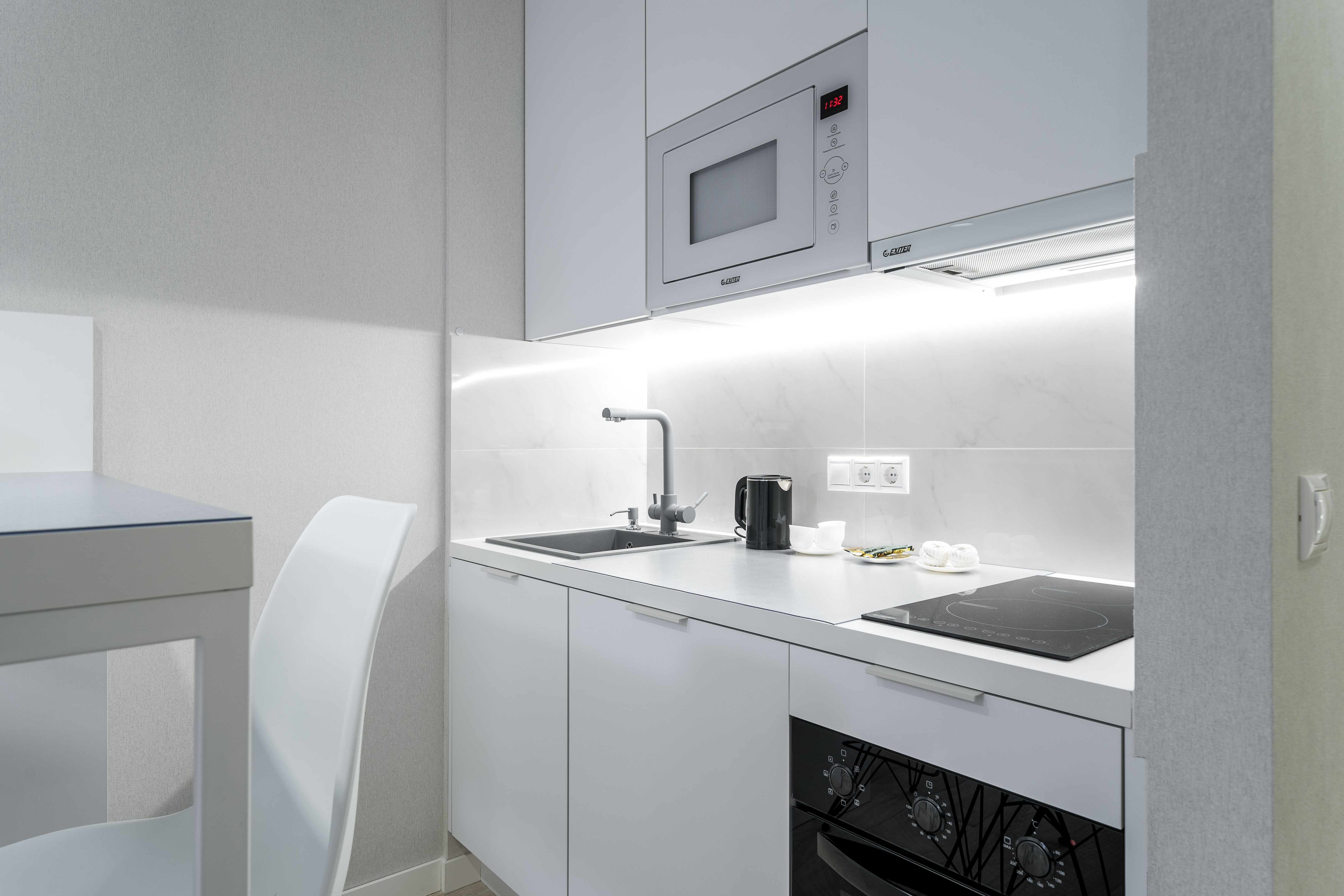 У вас будет квартира площадью 31 м2, которая готова принять двух человек и гарантировать им приятный и комфортный отдых. Здесь вы найдете все, что нужно для отличного проживания: большой телевизор с выходом в интернет и с предоплаченными подписками: Яндекс Плюс, Кинопоиск, Zala. Шторы блэкаут, фен, халаты, полотенца, тапочки. Кофемашина, электрочайник, необходимую столовую и кухонную посуду, большой холодильник, духовой шкаф, мультиварку, посудомоечную машину, микроволновую печь, утюг, гладильную доску, стиральную машину, сушилку для белья и даже гигиенические принадлежности в дозаторах.
