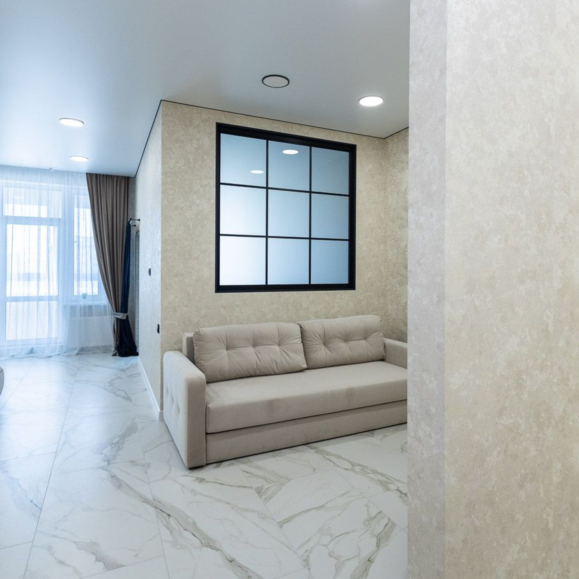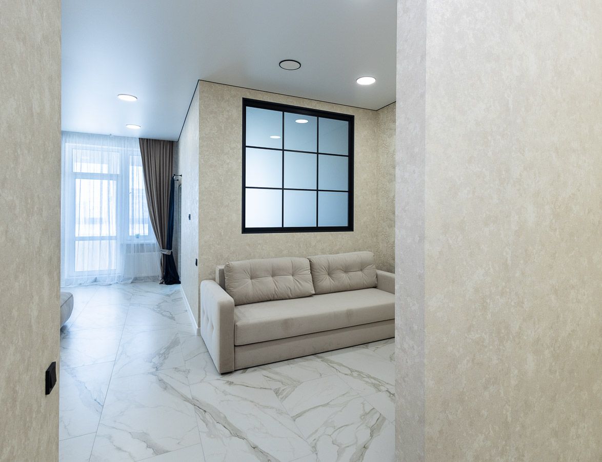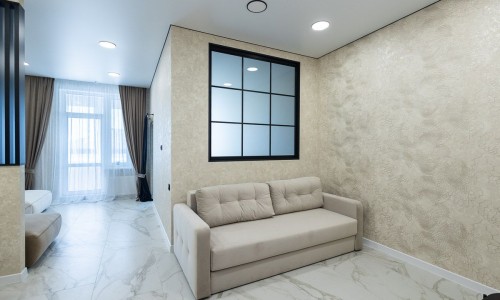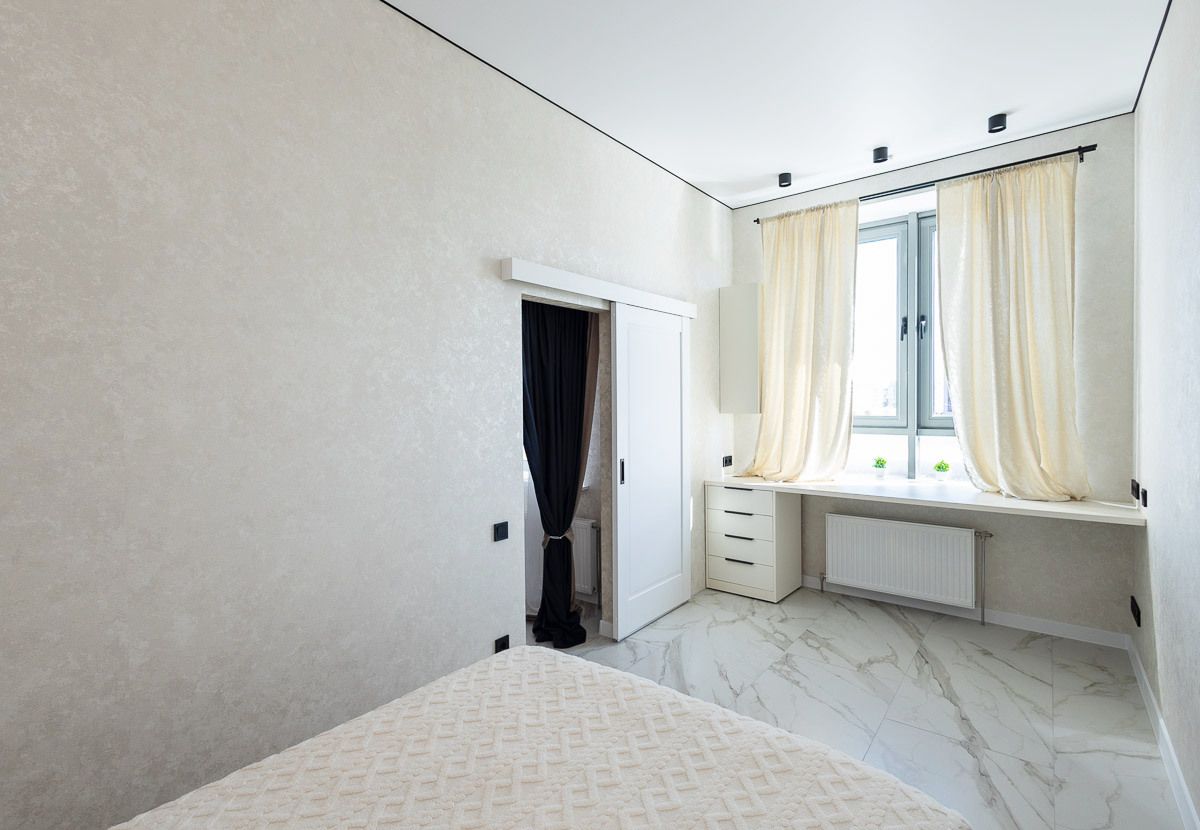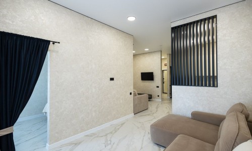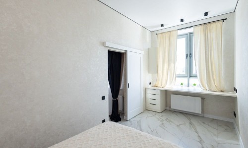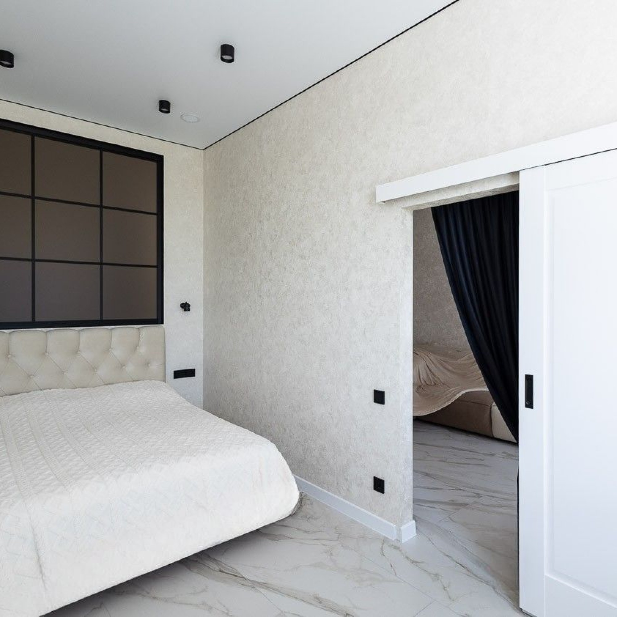Комфортная спальня с двуспальной кроватью и гостиная с зоной отдыха
