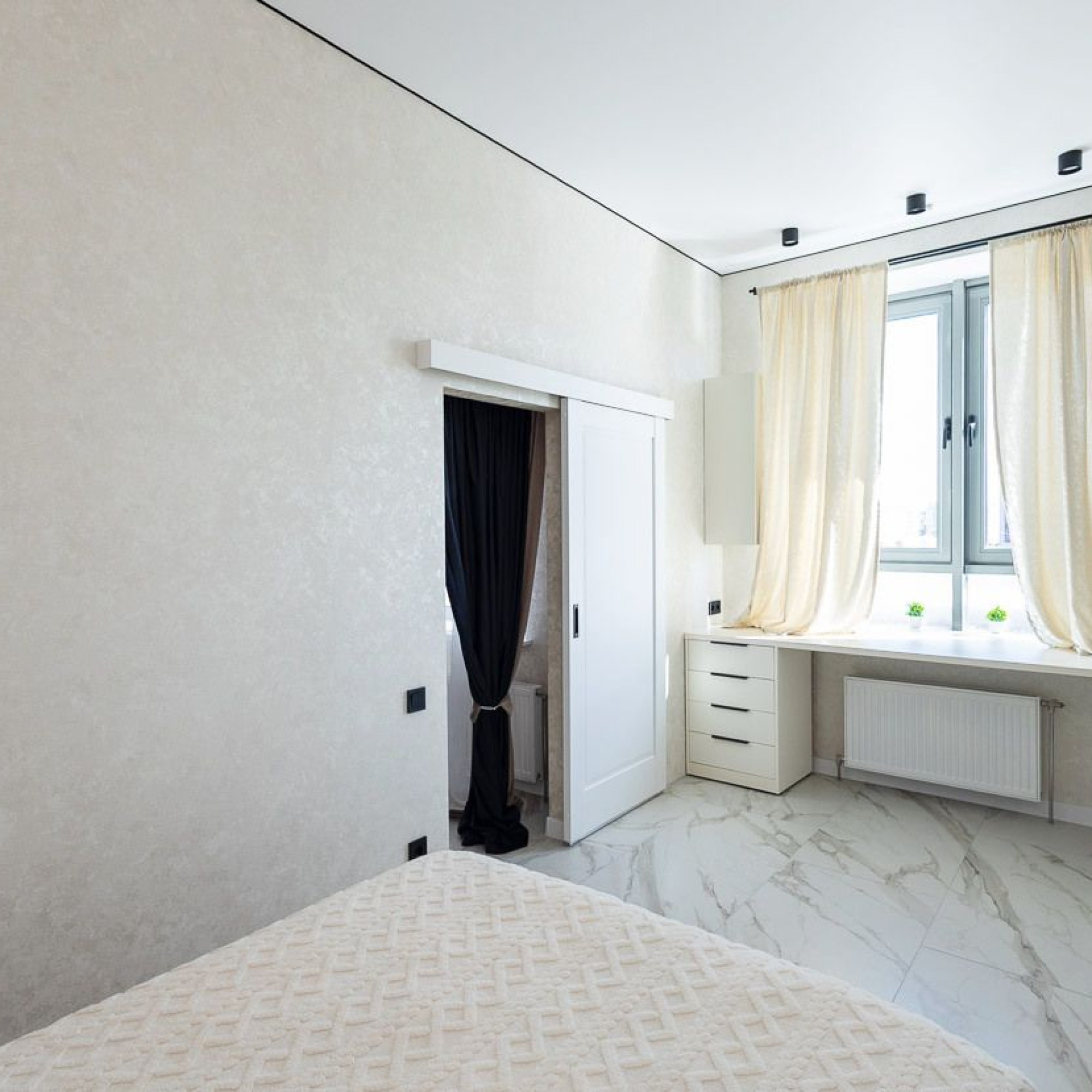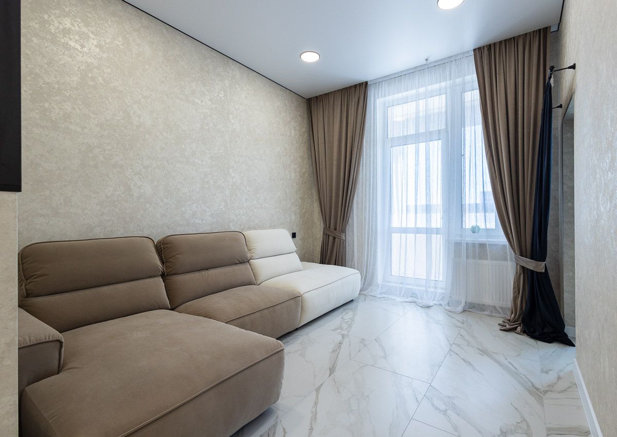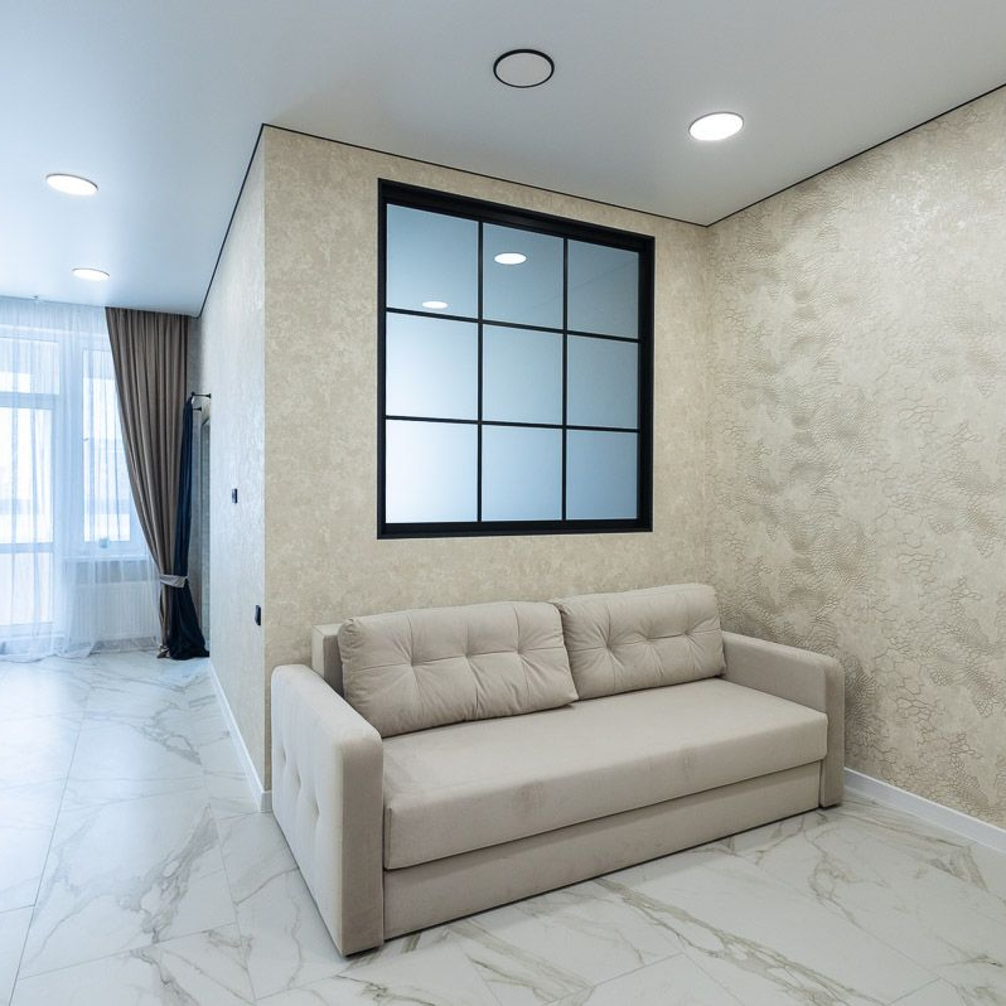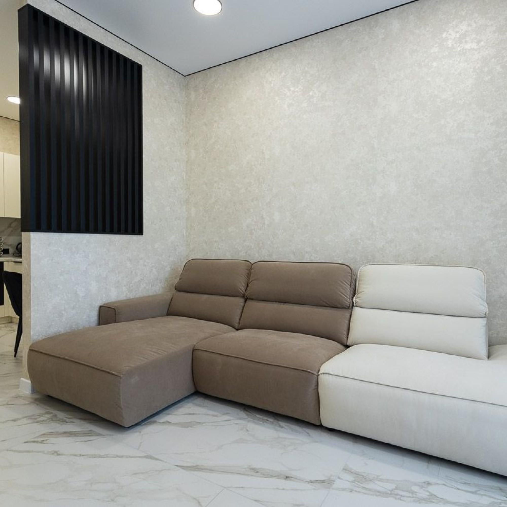 Комфортная спальня с двуспальной кроватью и гостиная с зоной отдыха