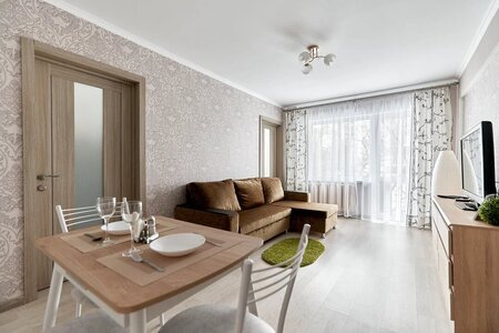 В квартире может разместиться 5-6 человек. Шестое спальное место это современная раскладушка на ламелях, 90 см шириной, как односпальная кровать. Квартира расположена в отличной локации, до центра 10 минут на авто, 15 на метро. Шикарная транспортная развязка, дом у метро, рядом Аквапарк, торговые центры, развлекательные центры, кинотеатр, овощной рынок, аптеки, обменный пункт в соседнем доме, центр "Мать и дитя".
