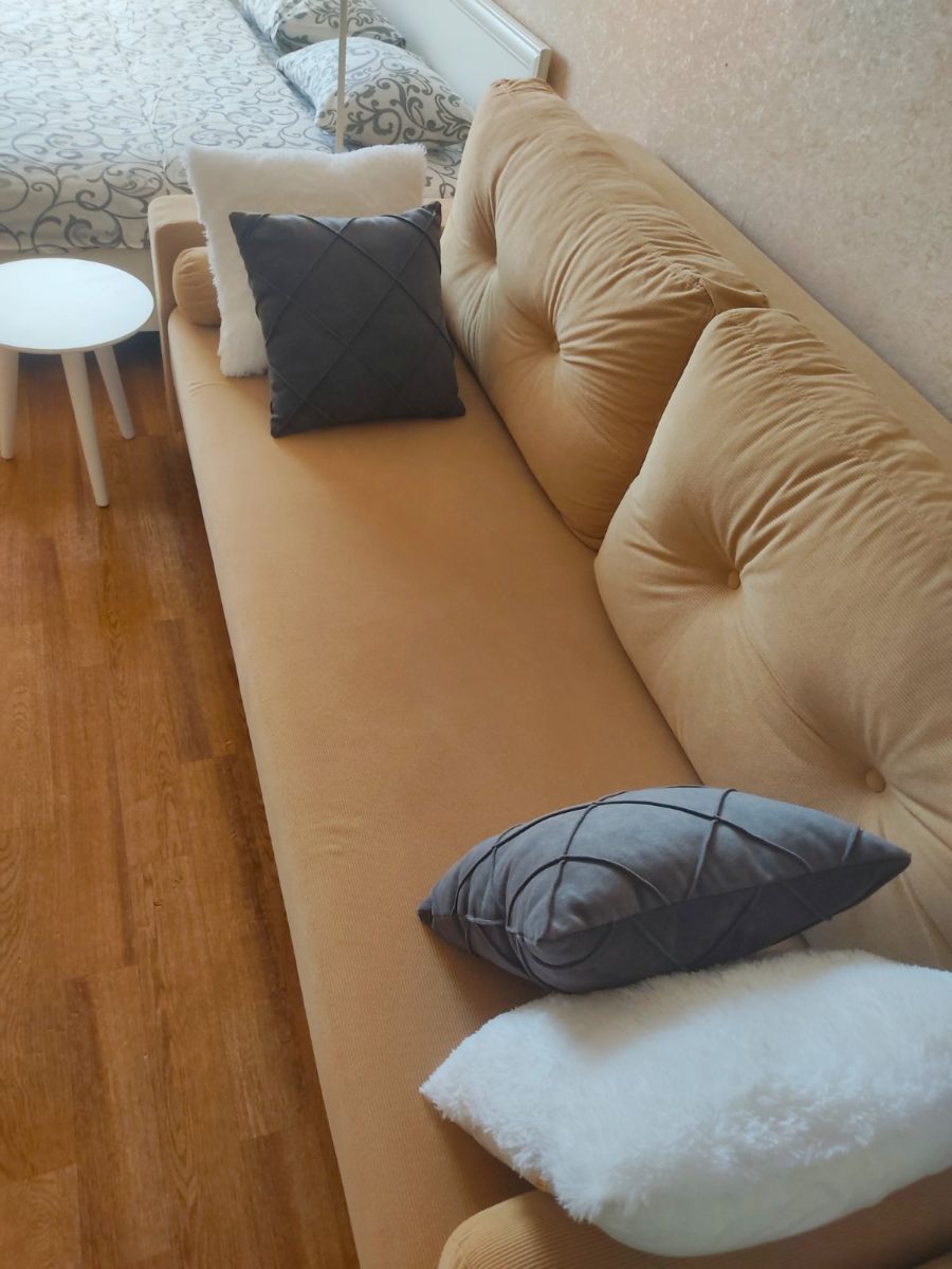 В Вашем распоряжении новая двуспальная кровать с матрасом, новый стильный диван на двоих гостей, телевизор, Wi-Fi, микроволновая печь, плита, холодильник, стиральная машина, фен, вся необходимая посуда для жилья, полотенца, постельные принадлежности, чай, кофе, сахар, соль.